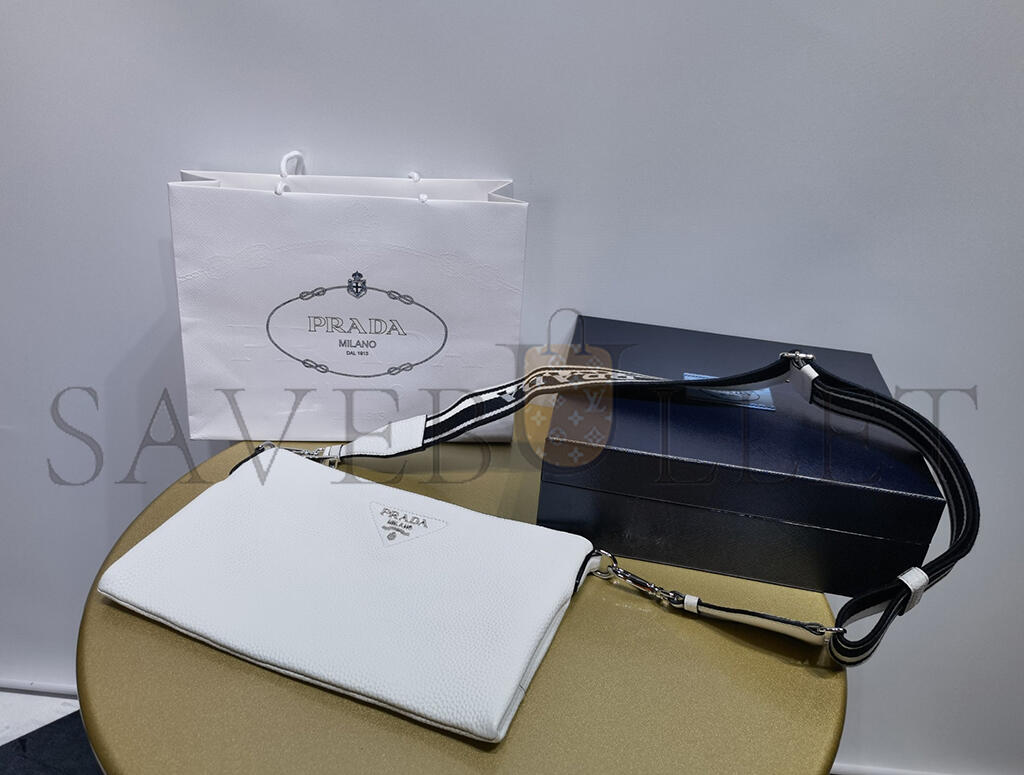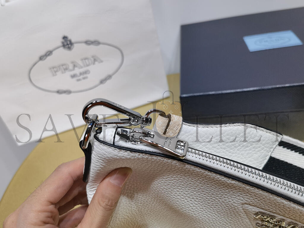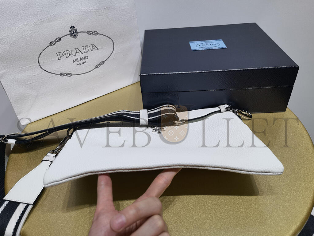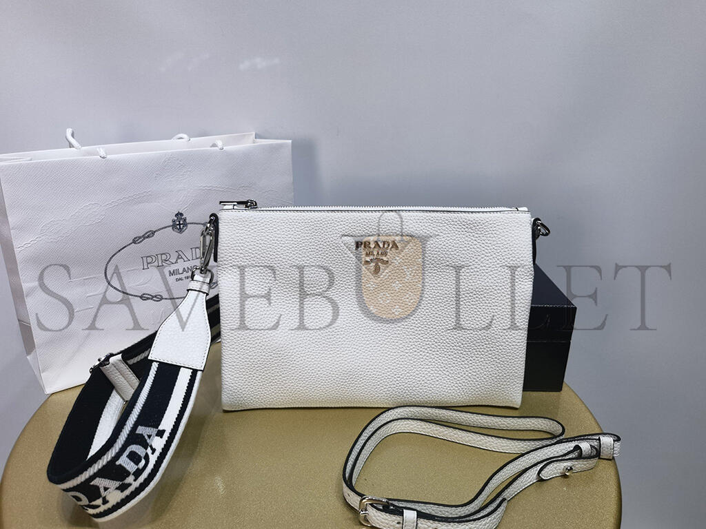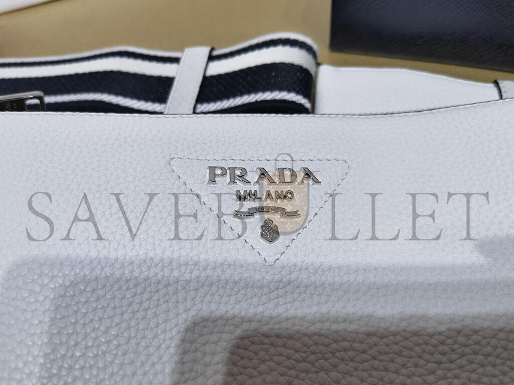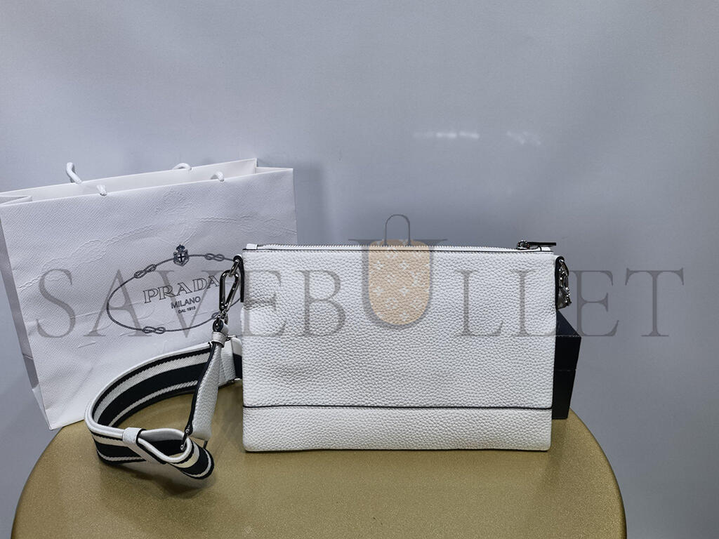 PRADA MONOCHROME LOGO ZIP CLOSURE LEATHER CROSSBODY SHOULDER BAG 1BH050 (30*19.5cm)