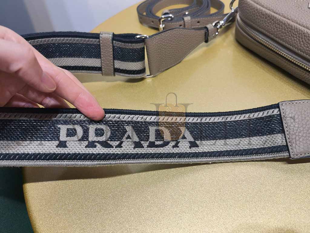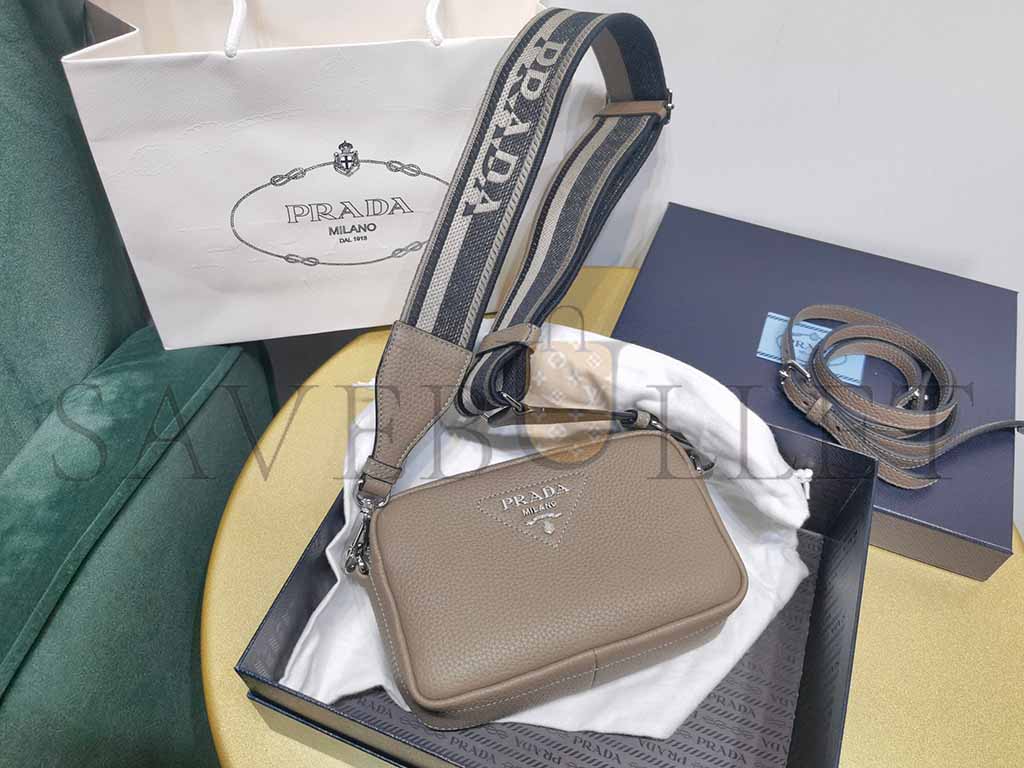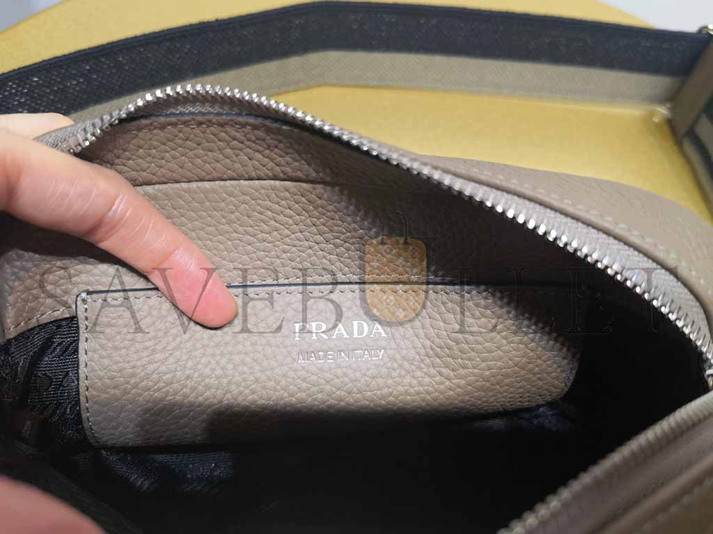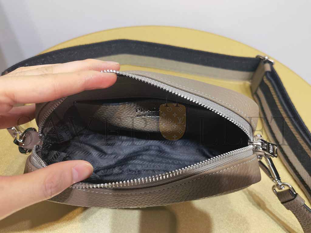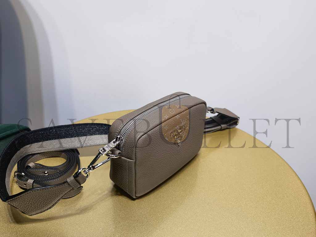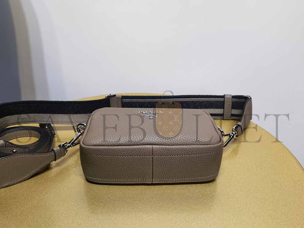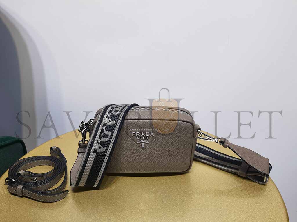 PRADA LEATHER CAMERA BAG SHOULDER BAG CROSSBODY BAG WOMEN'S LIGHT GRAY 1BH192 (19*12*6cm)