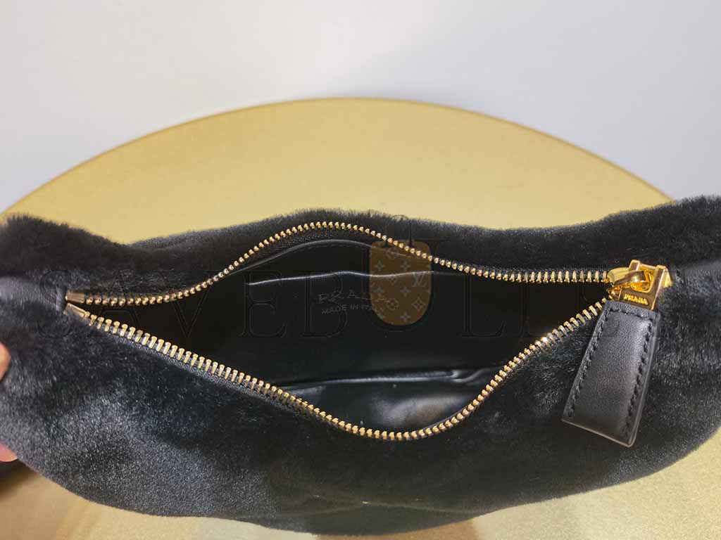 PRADA SHEARLING AND LEATHER ARQU SATCHEL 1BC194 (22.5*18.5*6.5cm)