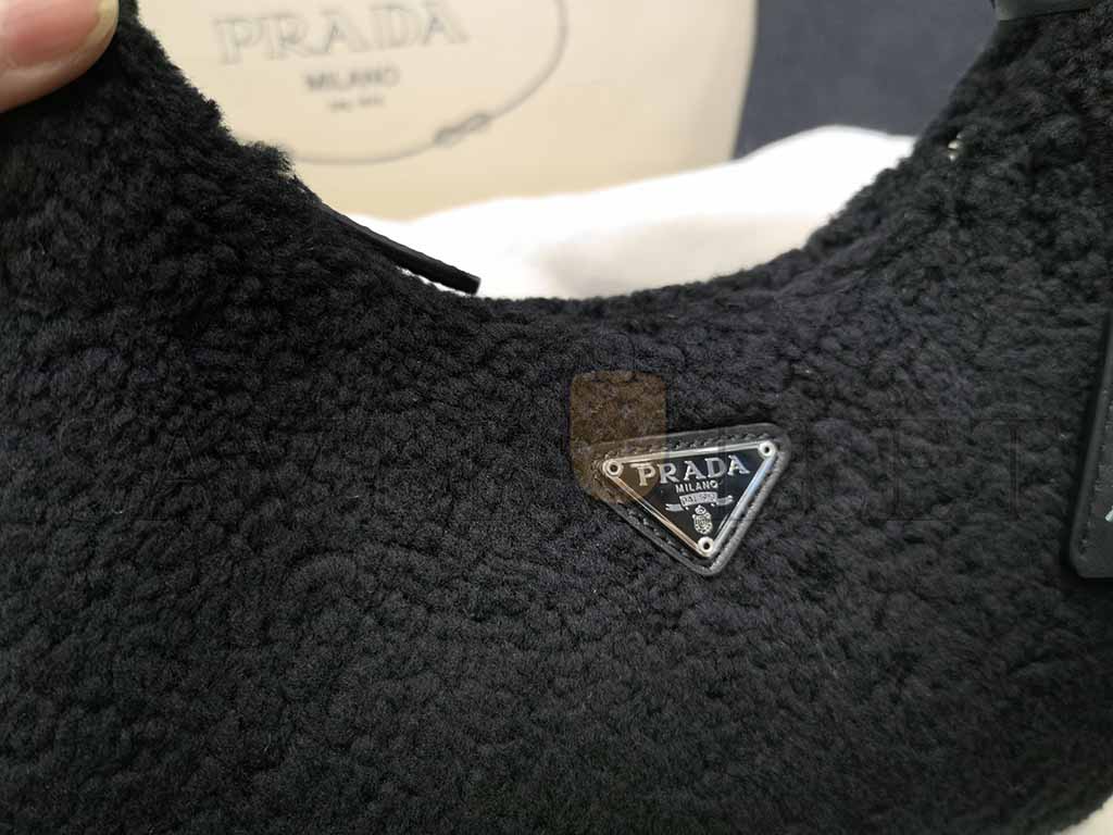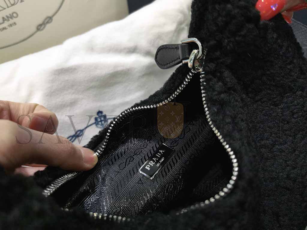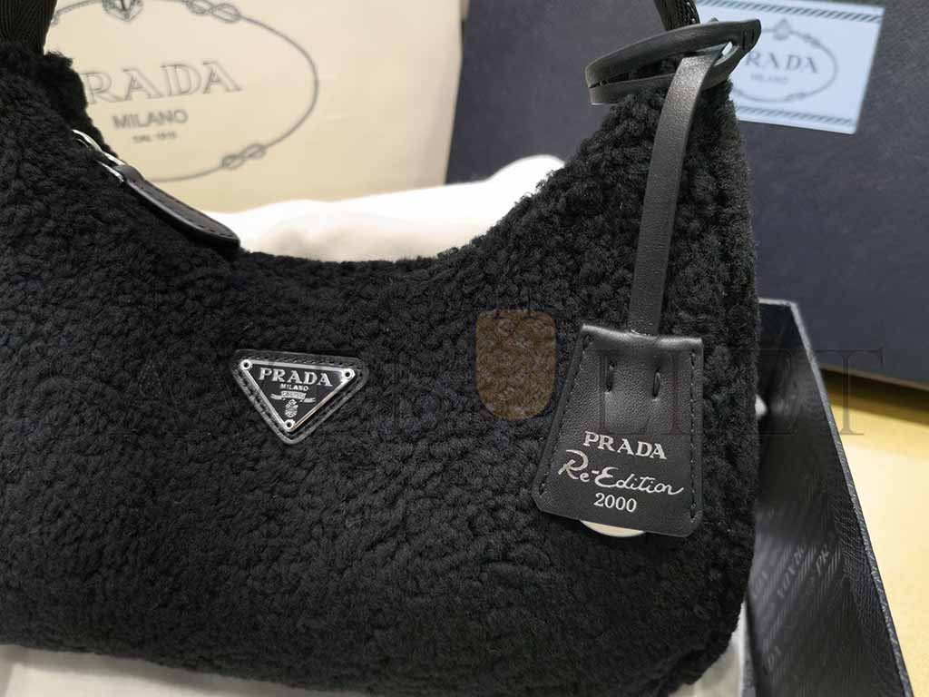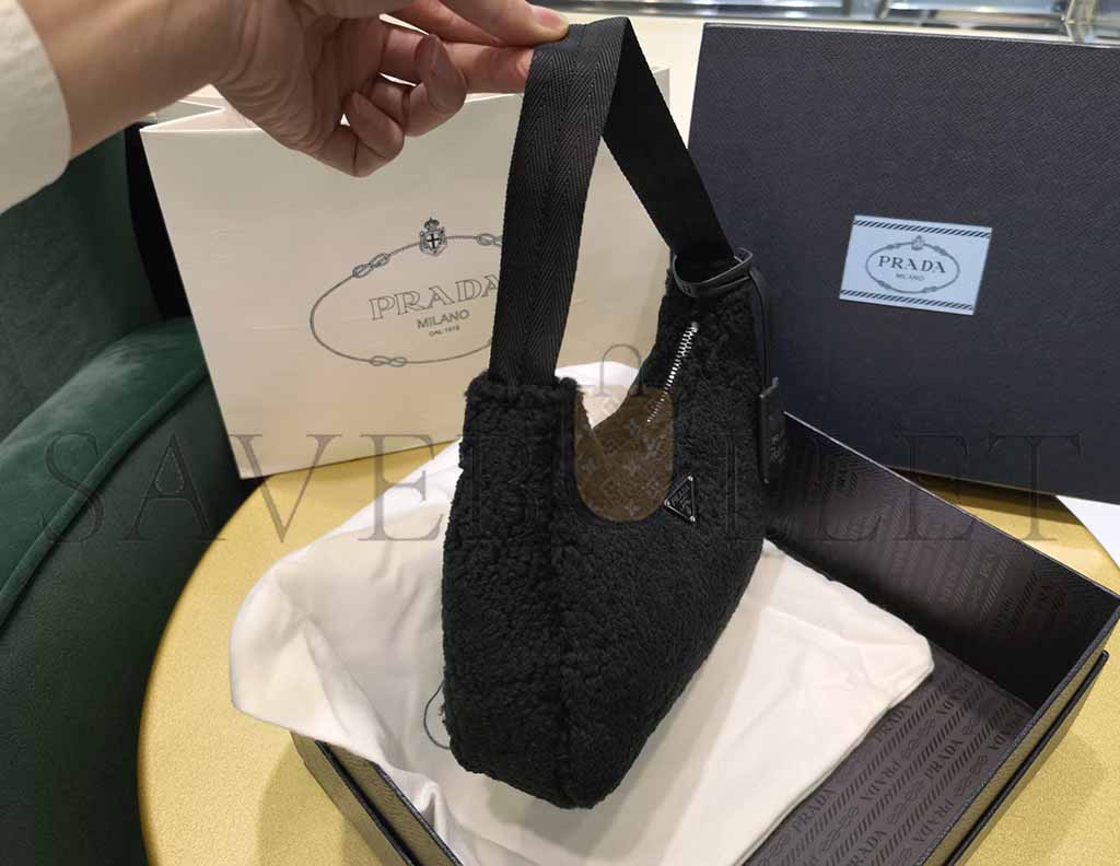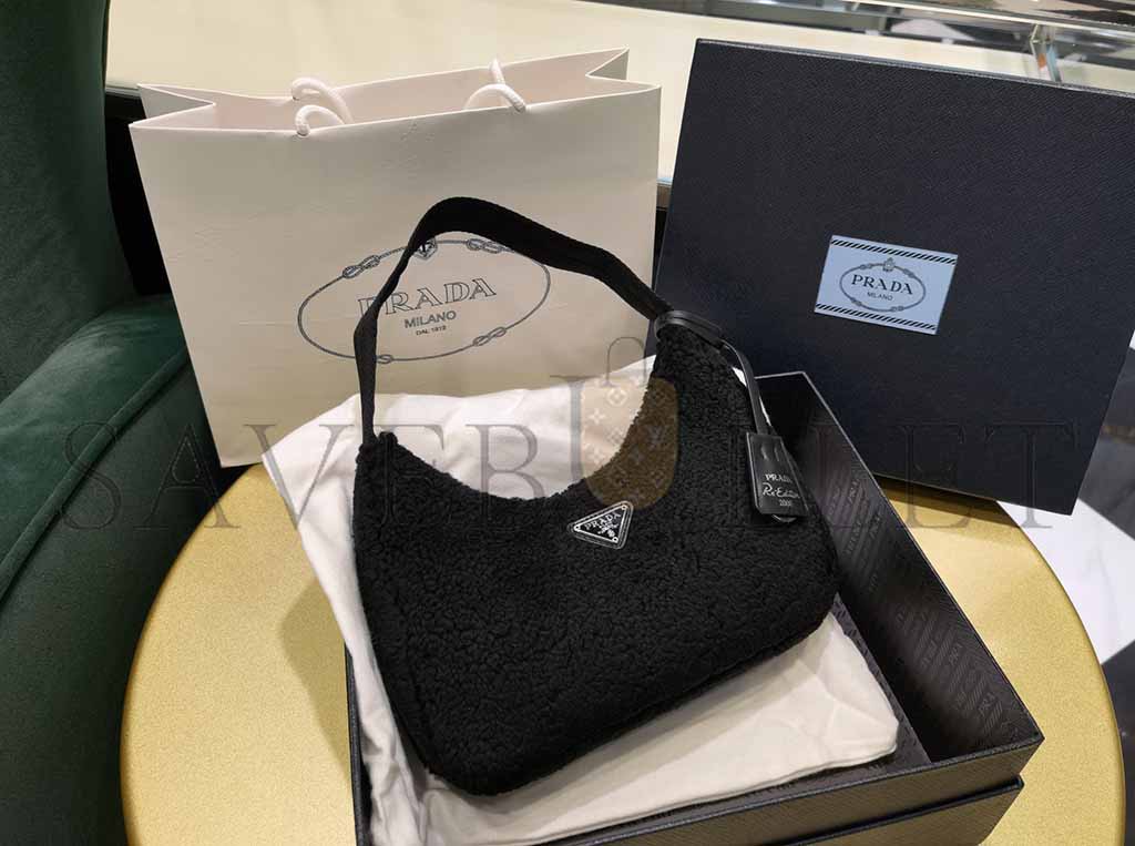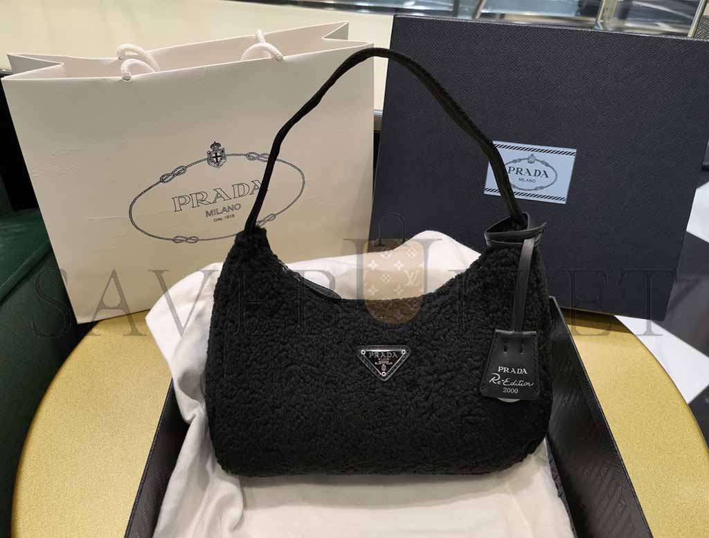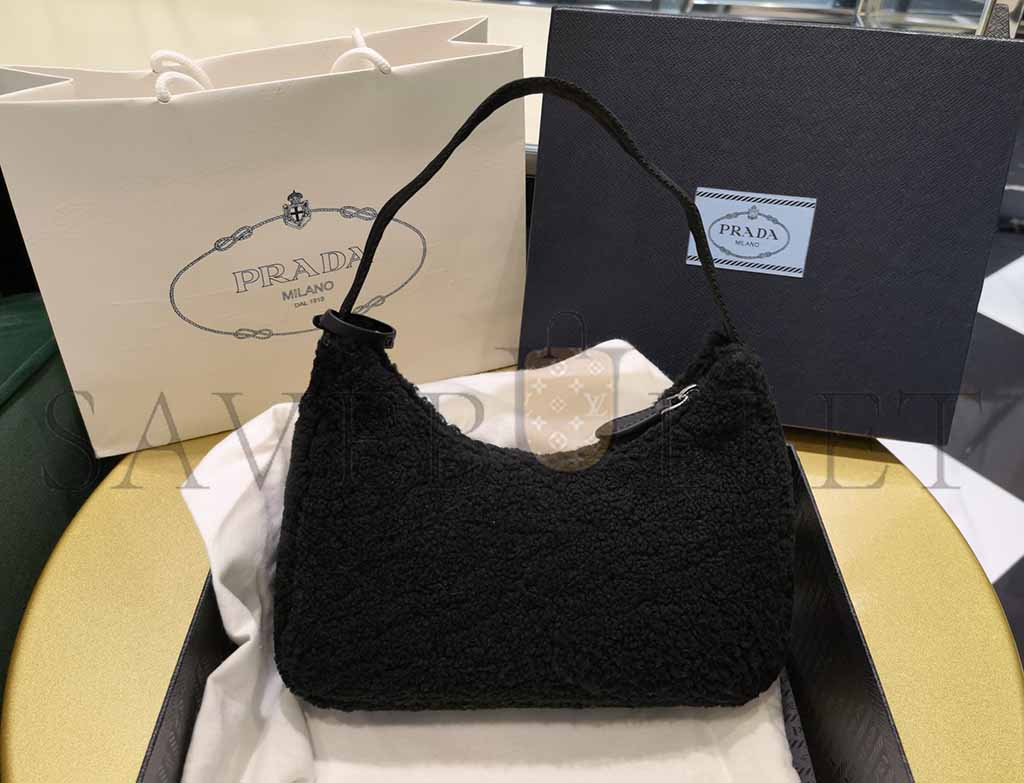 PRADA RE-EDITION 2000 SHEARLING SHOULDER BAG IN BLACK 1NE515 (23*14*5cm)