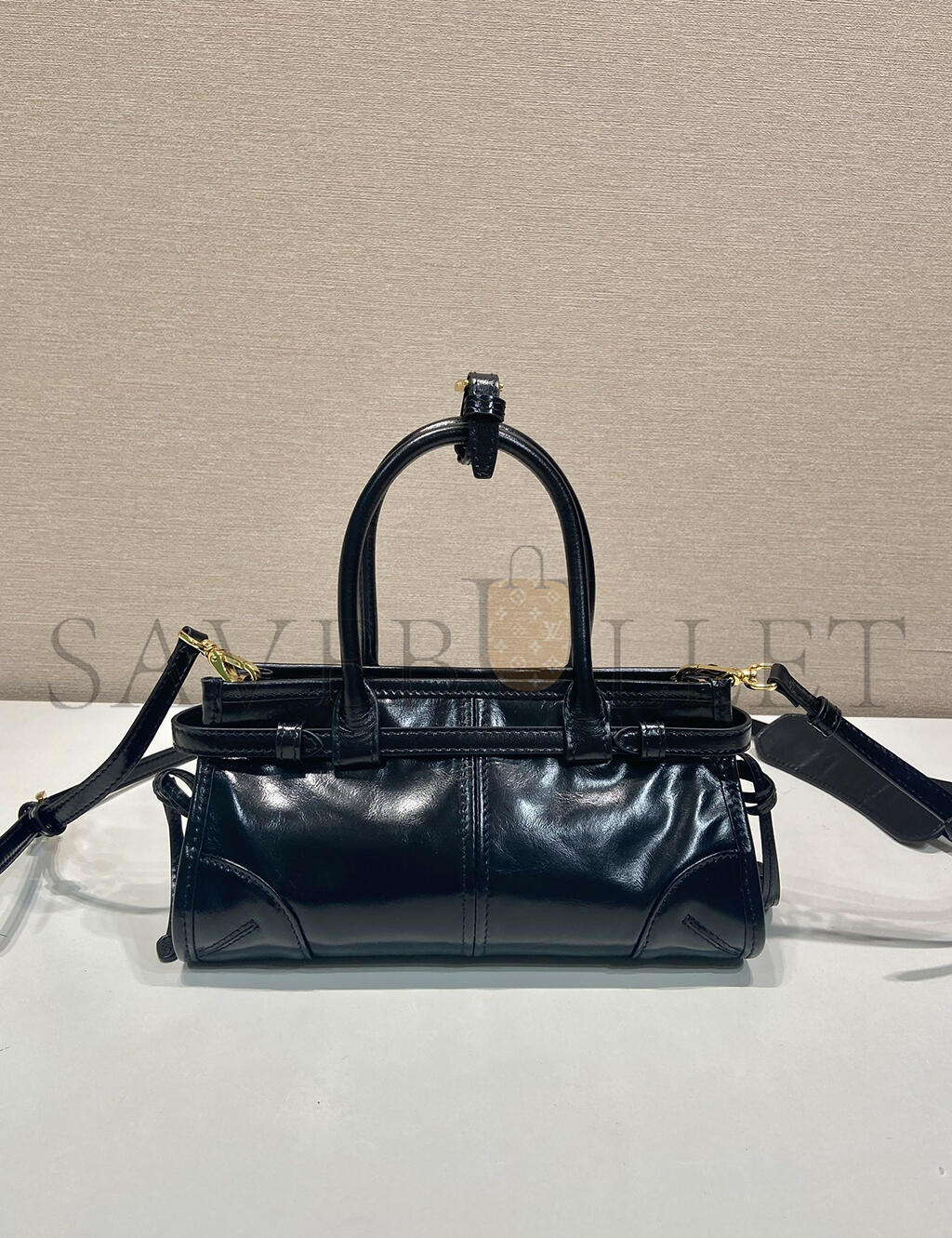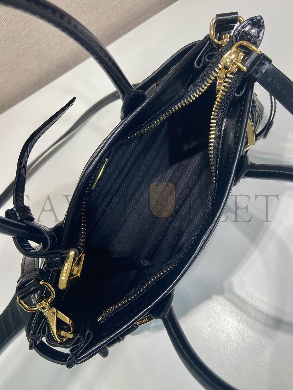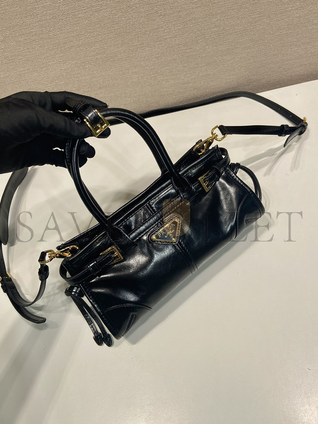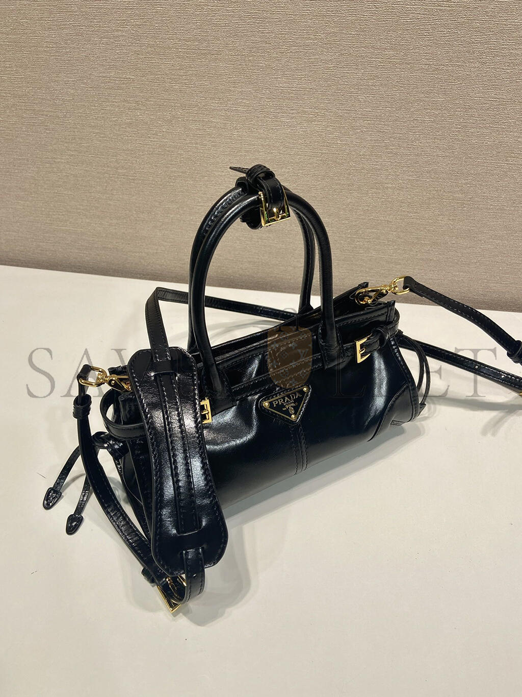 PRADA BLACK MINI LEATHER BONNIE TOP-HANDLE BAG 1BA486 (23.5*12*9cm)