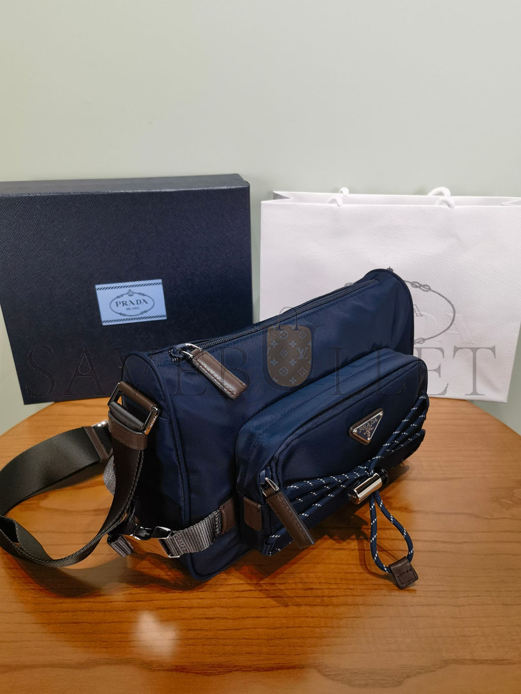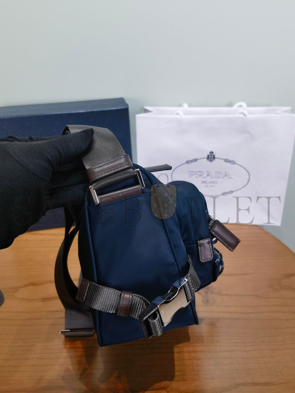 PRADA SPEEDROCK RE-NYLON AND LEATHER SHOULDER BAG 2VH192 (28*17.5*10cm)