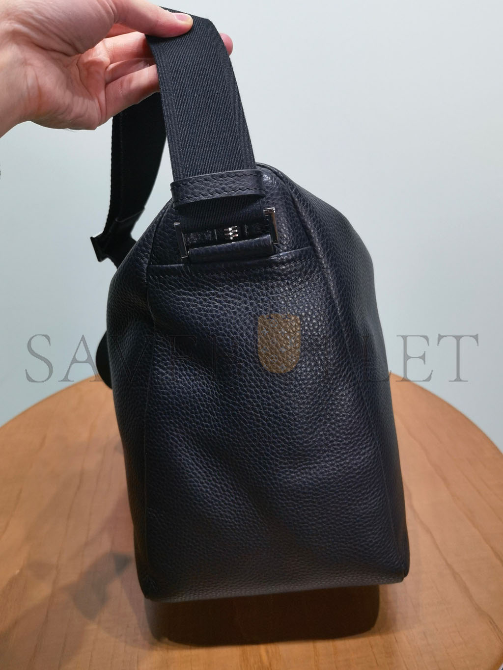 16.1 x 11.4 x 5.5 inches(Length x Height x Width)EncreCalf leatherCalf-leather trimCalf-leather liningPalladium-toned hardwareS-lock closureInside zip..