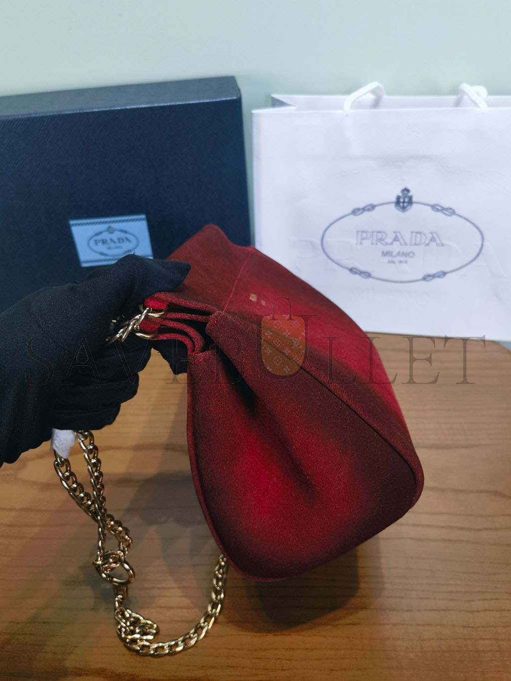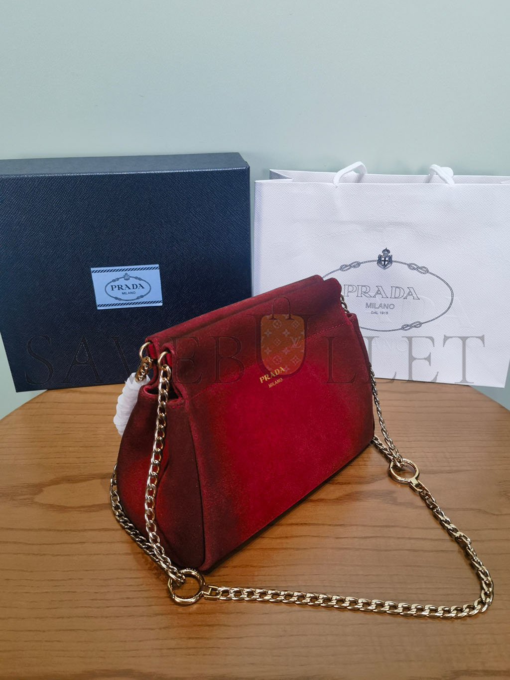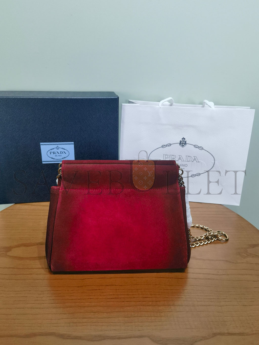 PRADA ENCHAÎNÉ MINI SUEDE BAG 1BC263 (22*18*11.5cm)