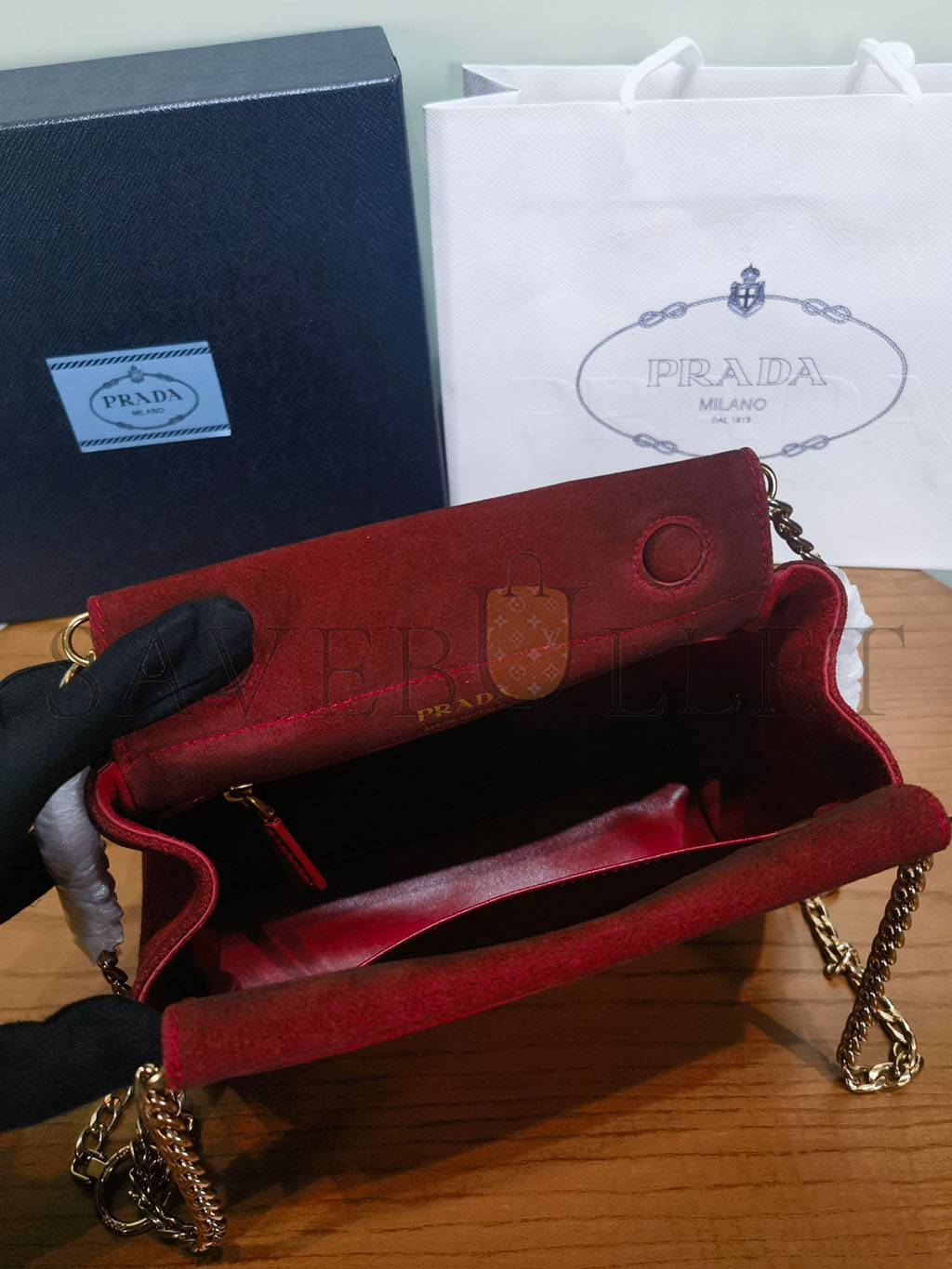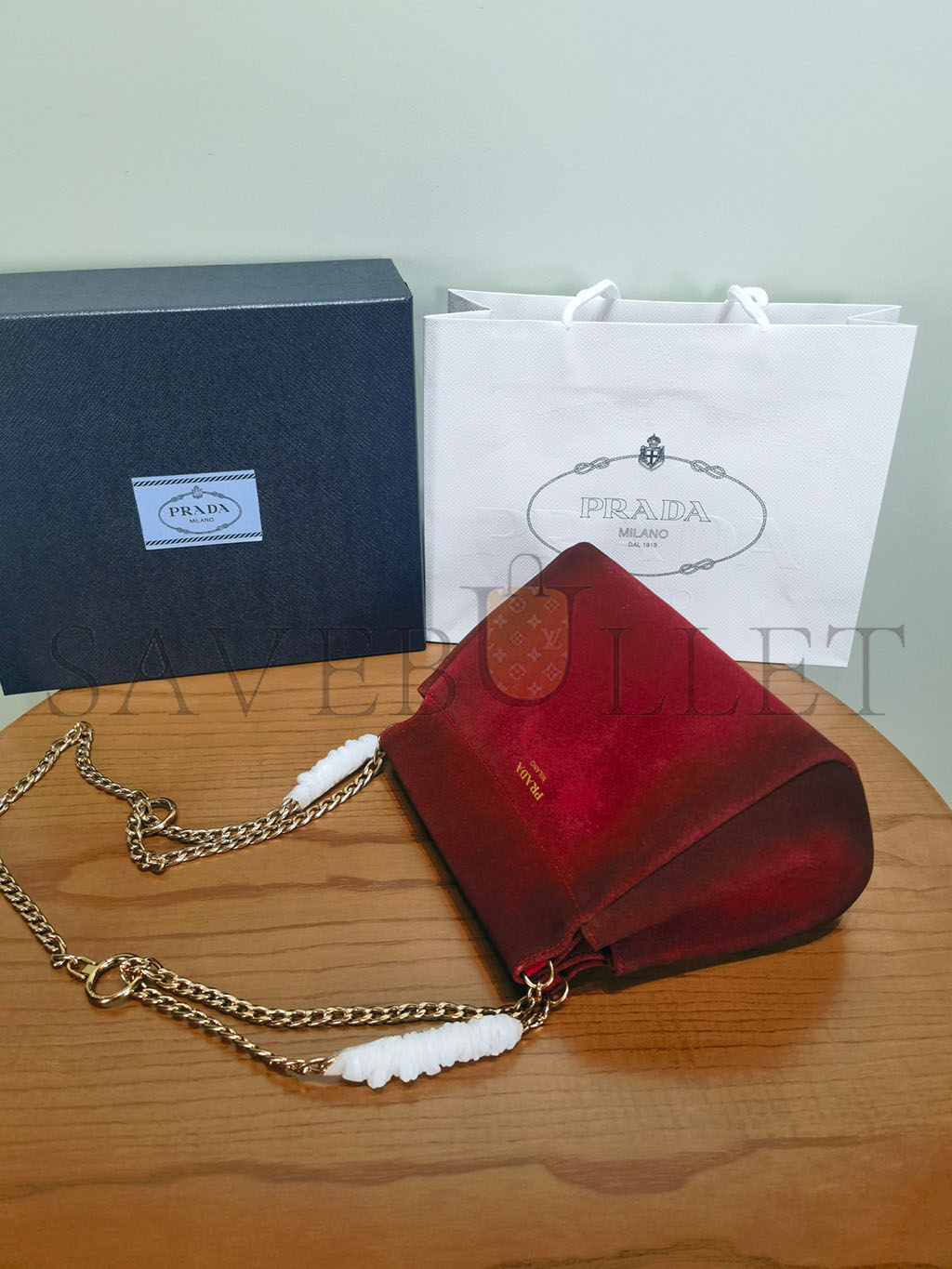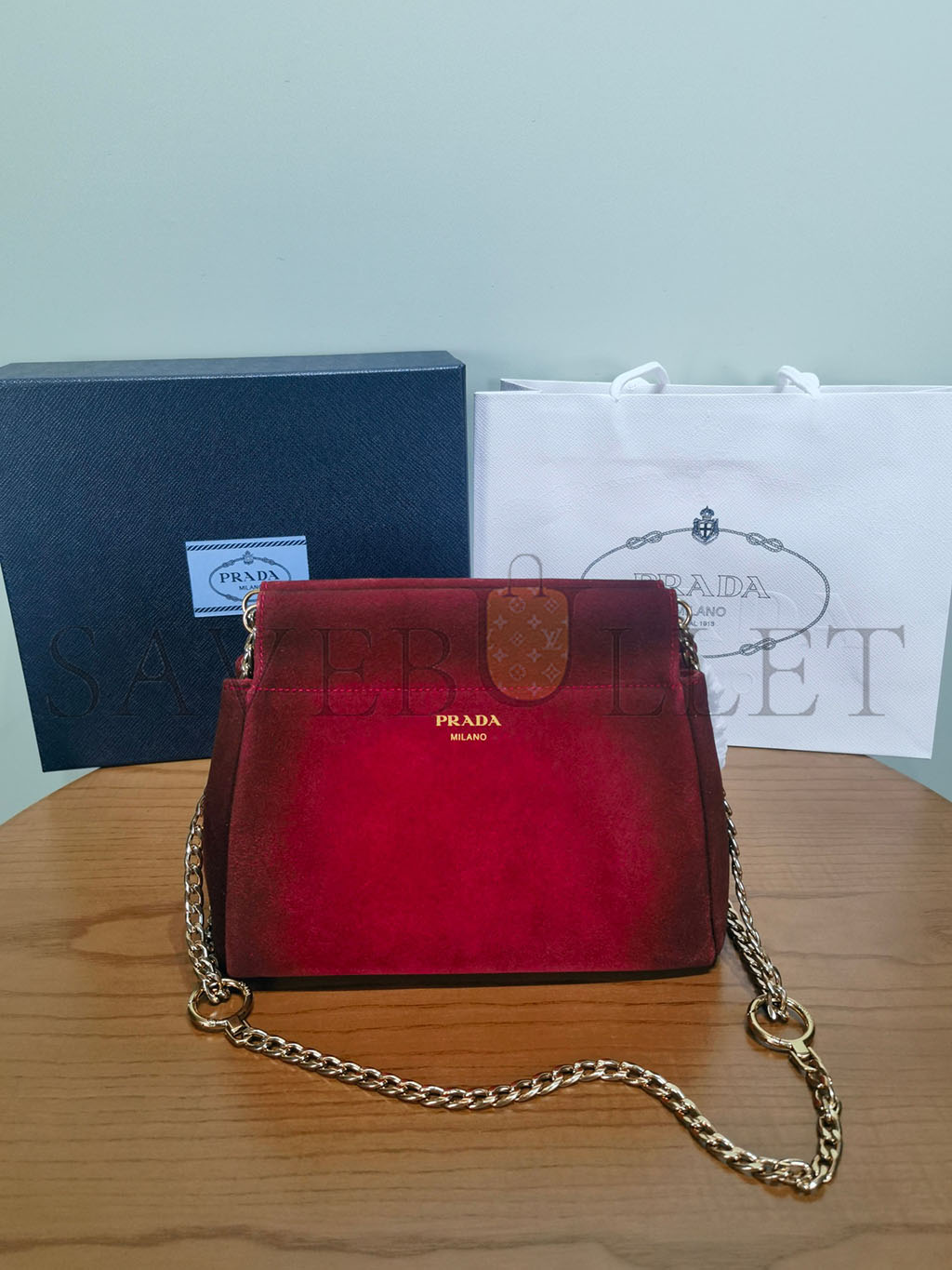 PRADA ENCHAÎNÉ MINI SUEDE BAG 1BC263 (22*18*11.5cm)