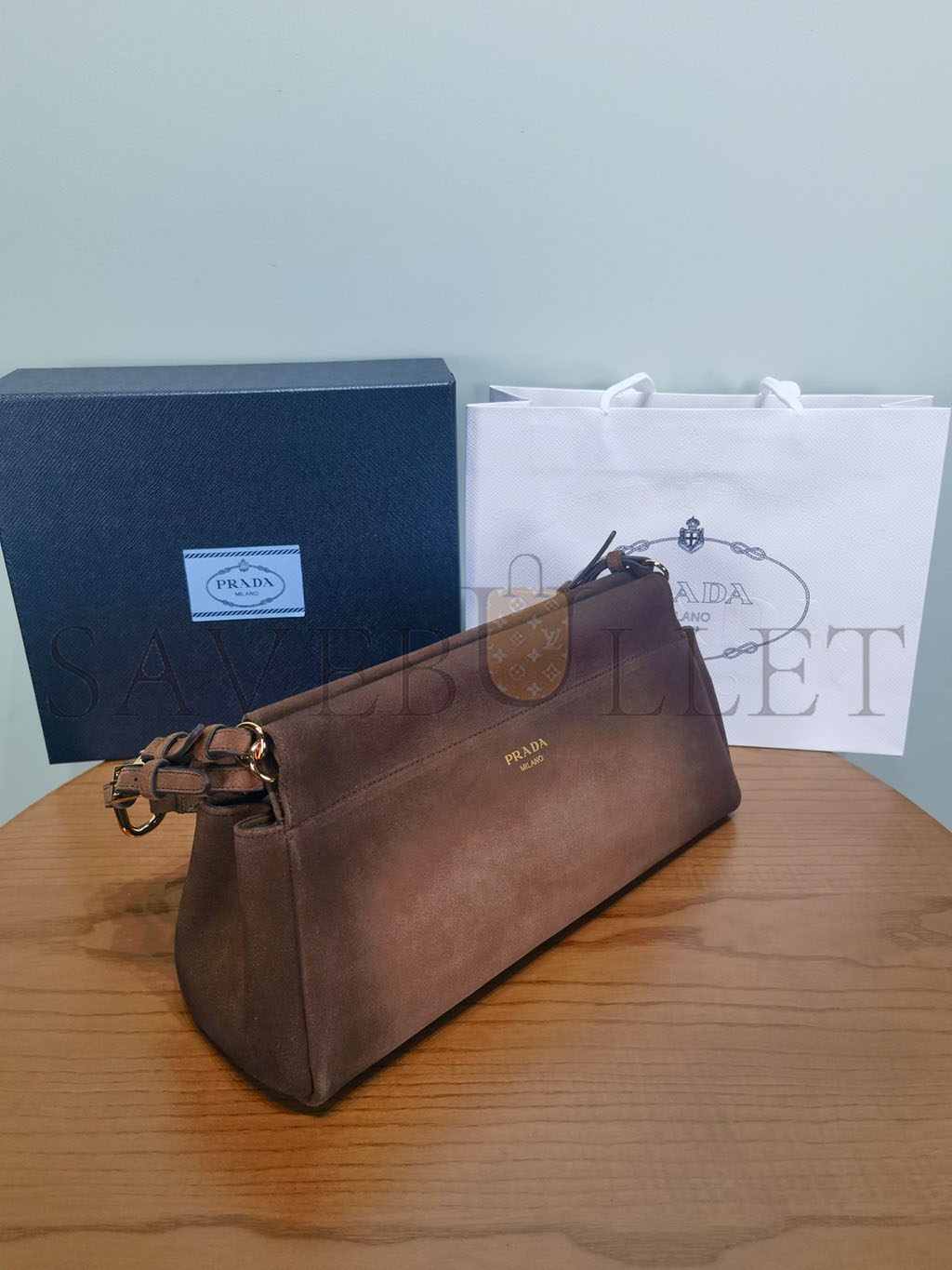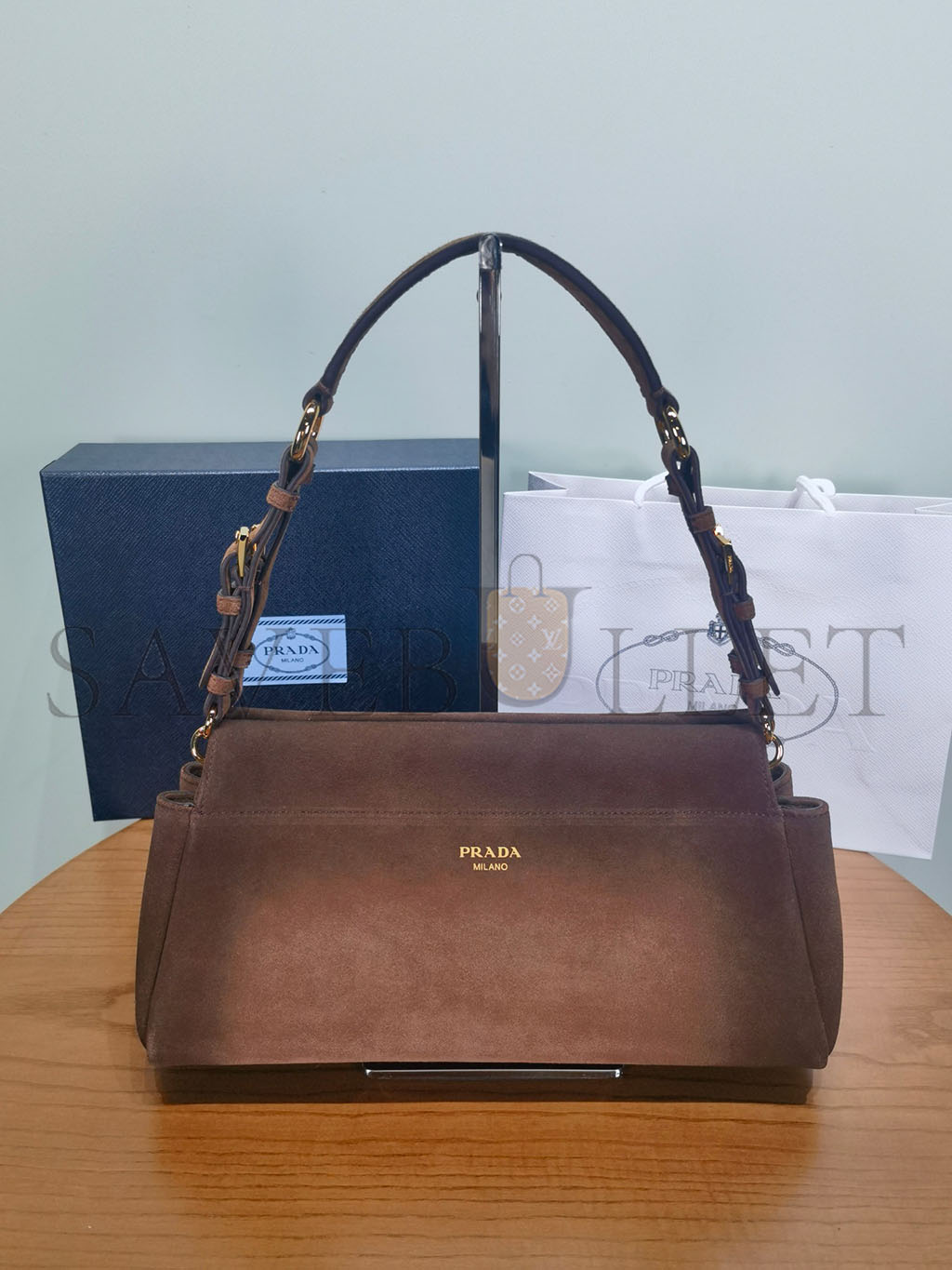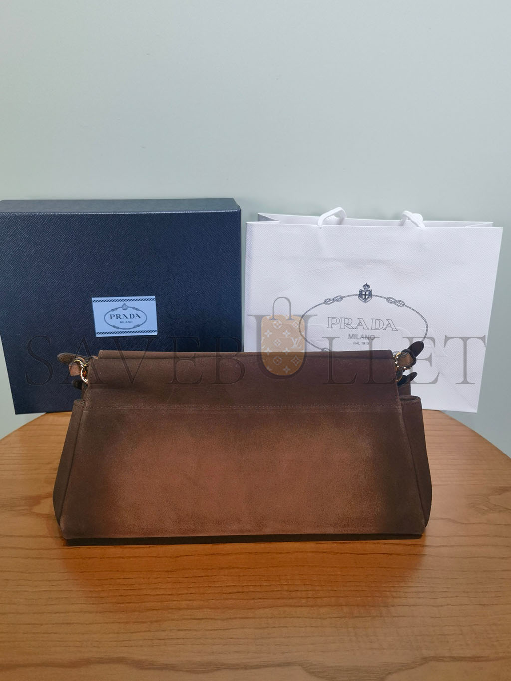PRADA BOX CALFSKIN SHOULDER BAG MILITAIRE (27*18*5cm)