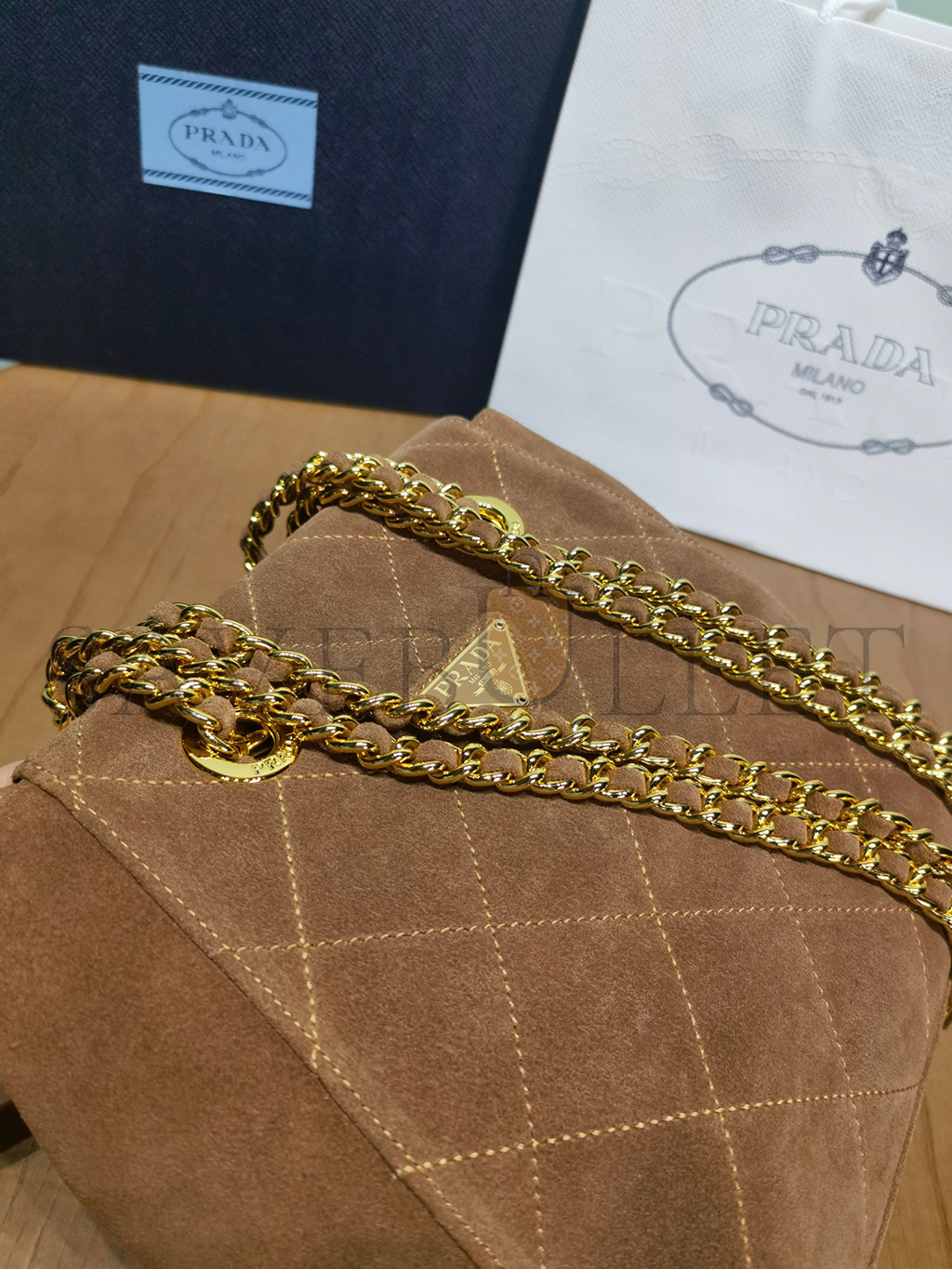 PRADA QUILTED BROWN SUEDE CHAIN SHOULDER BAG 1BD602 (27*24*6cm)