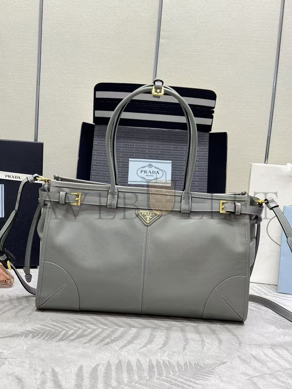 PRADA BONNIE LARGE LEATHER HANDBAG 1BA433 (38*24*12cm)