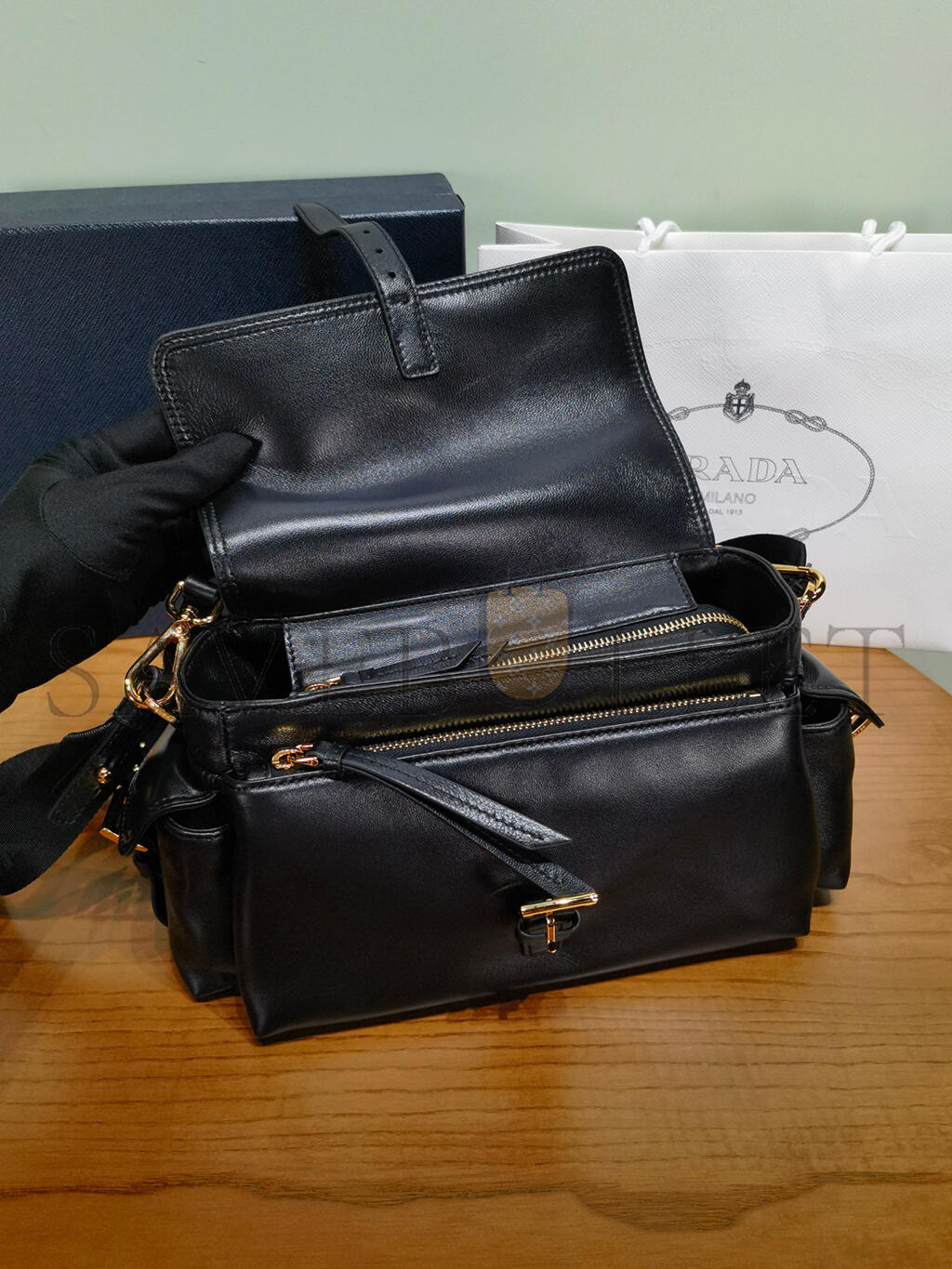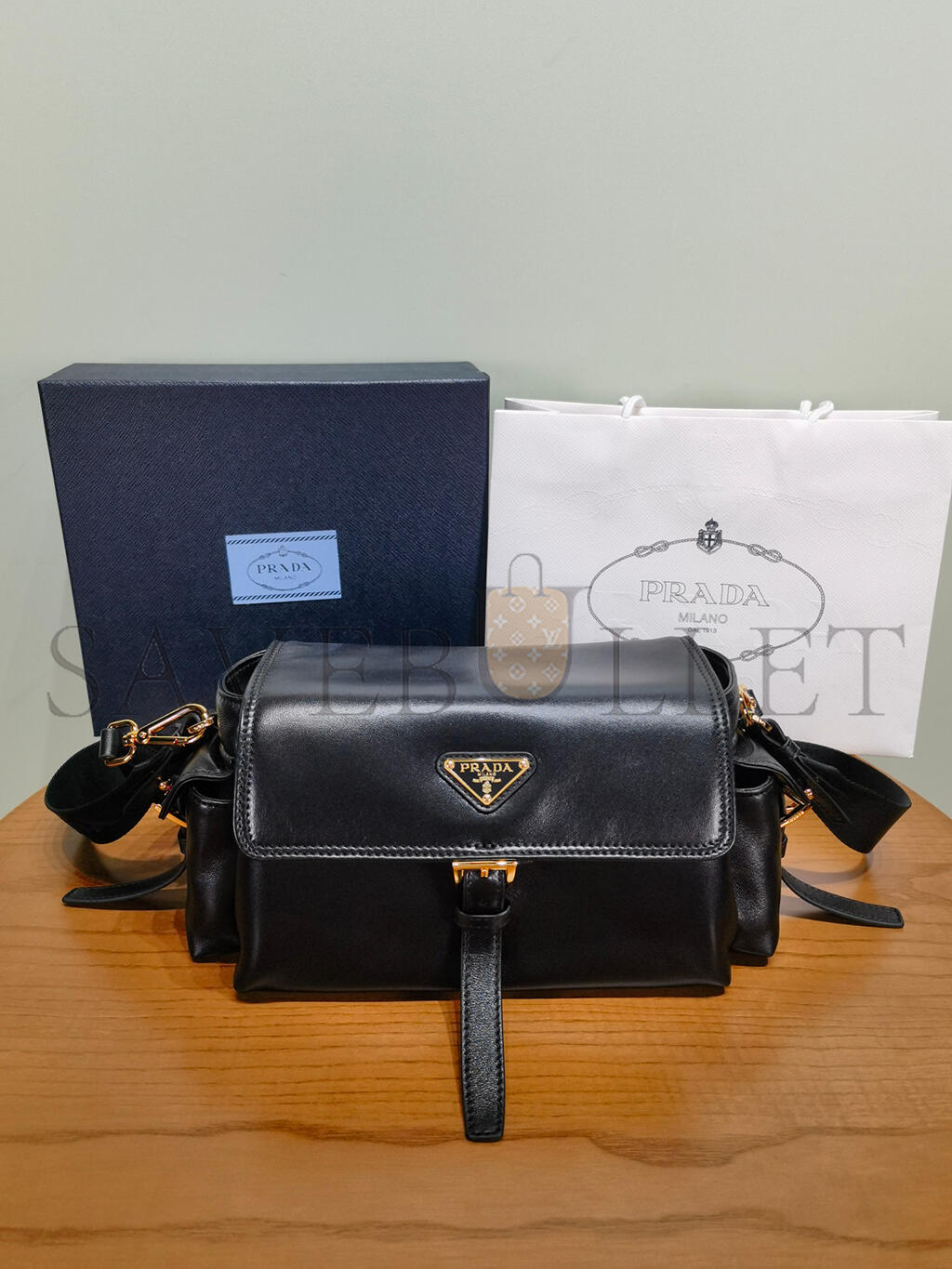 PRADA EXPLORE MEDIUM NAPPA LEATHER SHOULDER BAG WITH FLAP 1BD394 (30*14*10cm)