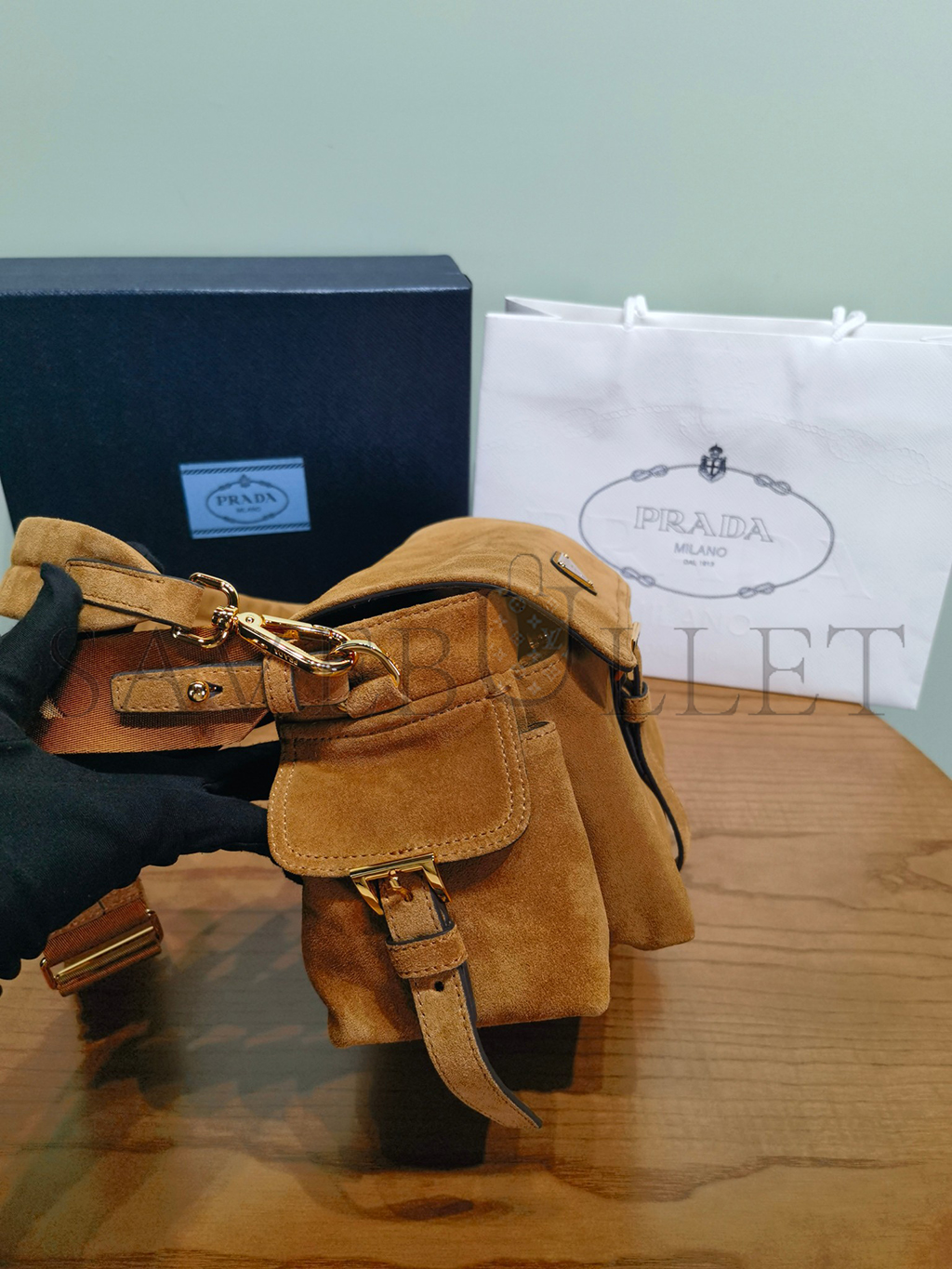 PRADA EXPLORE MEDIUM SUEDE LEATHER SHOULDER BAG 1BD394 (30*14*10cm)