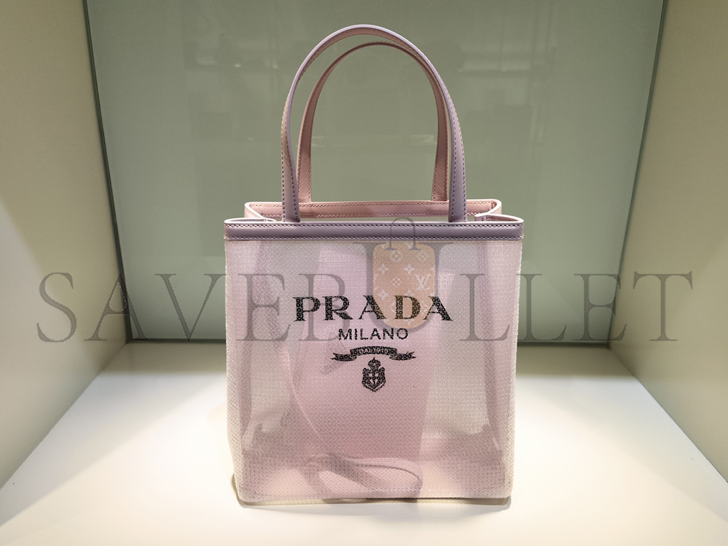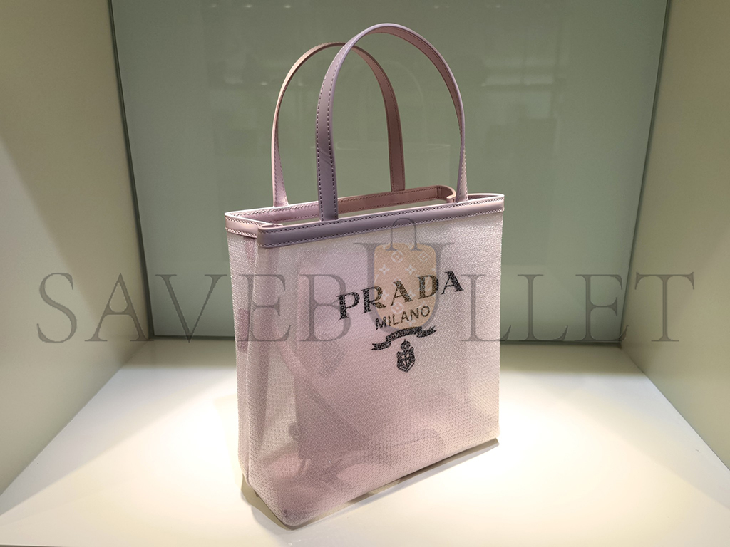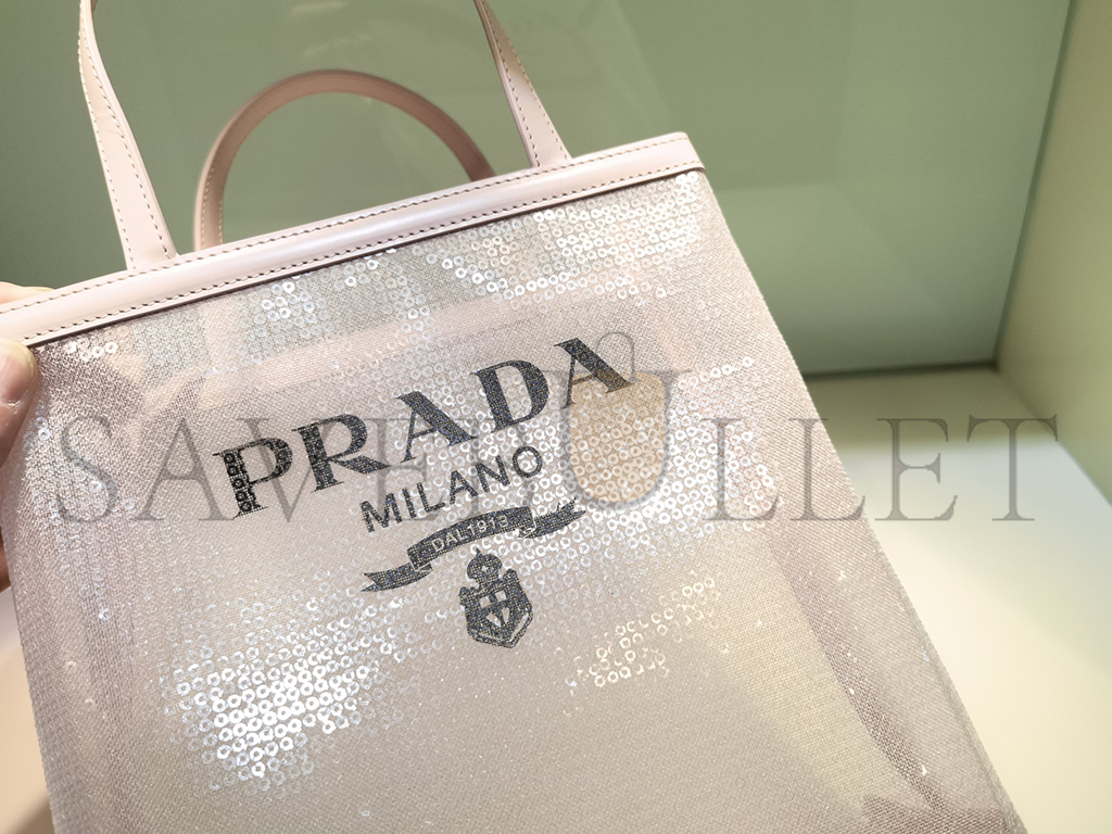 PRADA SMALL SEQUINED MESH TOTE BAG IN ALABASTER PINK 1BG417 (22*20*8cm)