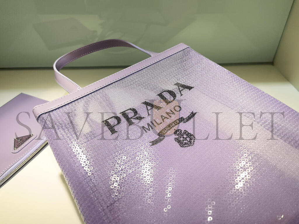 PRADA SMALL SEQUINED MESH TOTE BAG IN ALABASTER 1BG417 (22*20*8cm)
