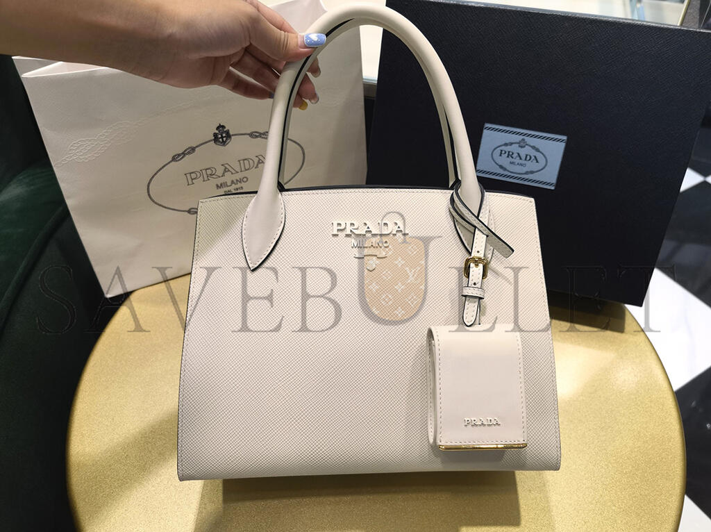 PRADA SAFFIANO CUIR LEATHER SMALL MONOCHROME TOTE 1BA156 (26*20*13.5cm)