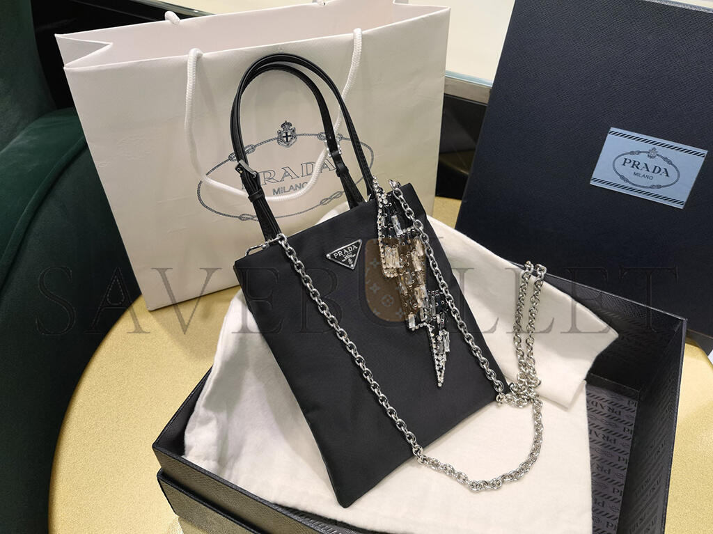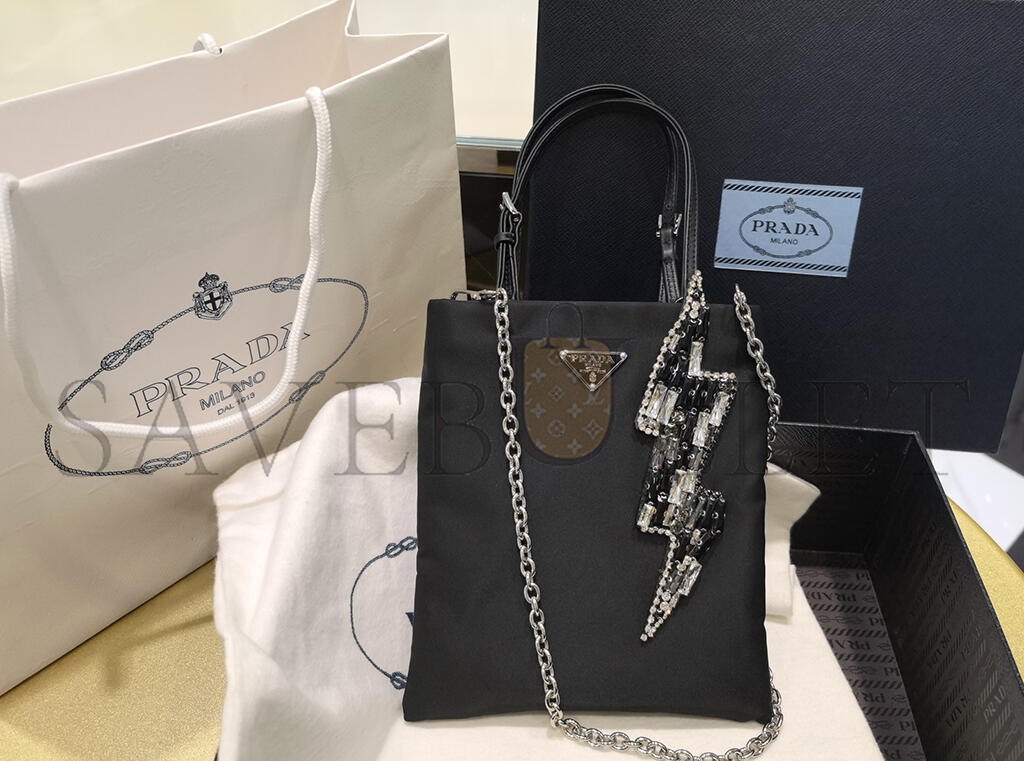PRADA LIGHTNING BOLT EMBELLISHED NYLON BAG (18.5*17cm)