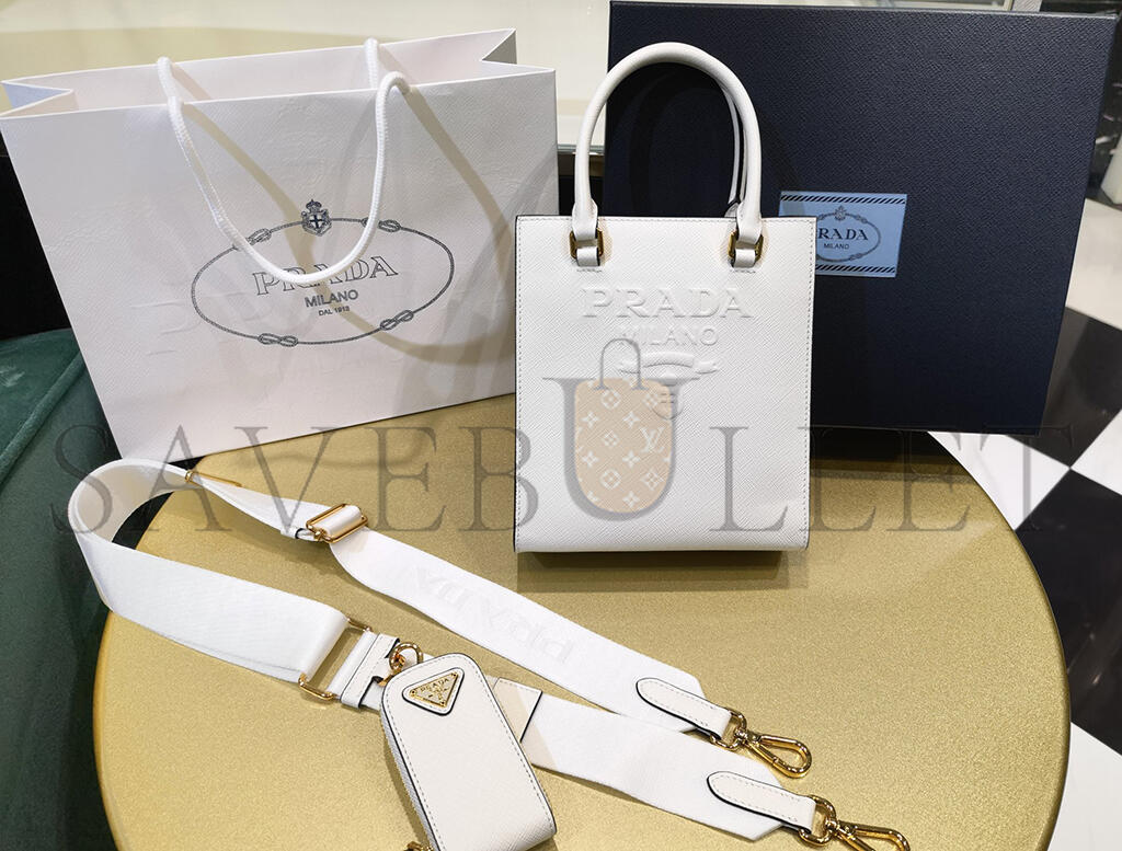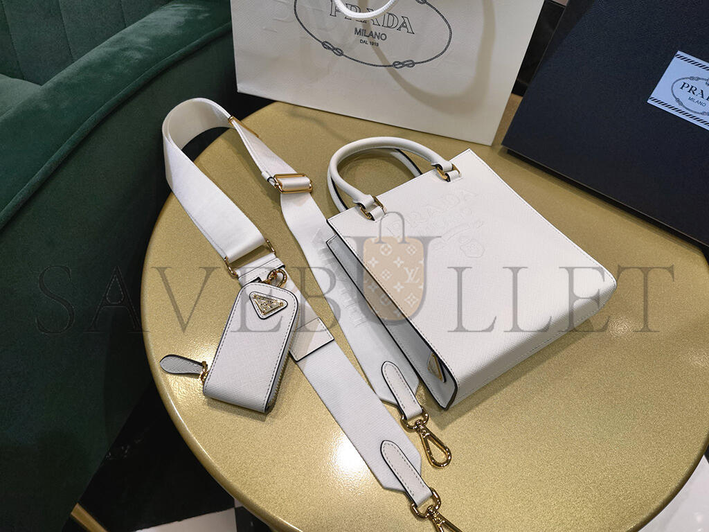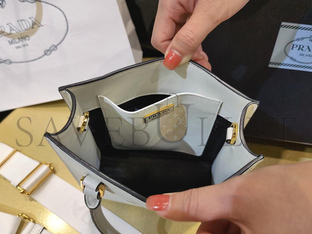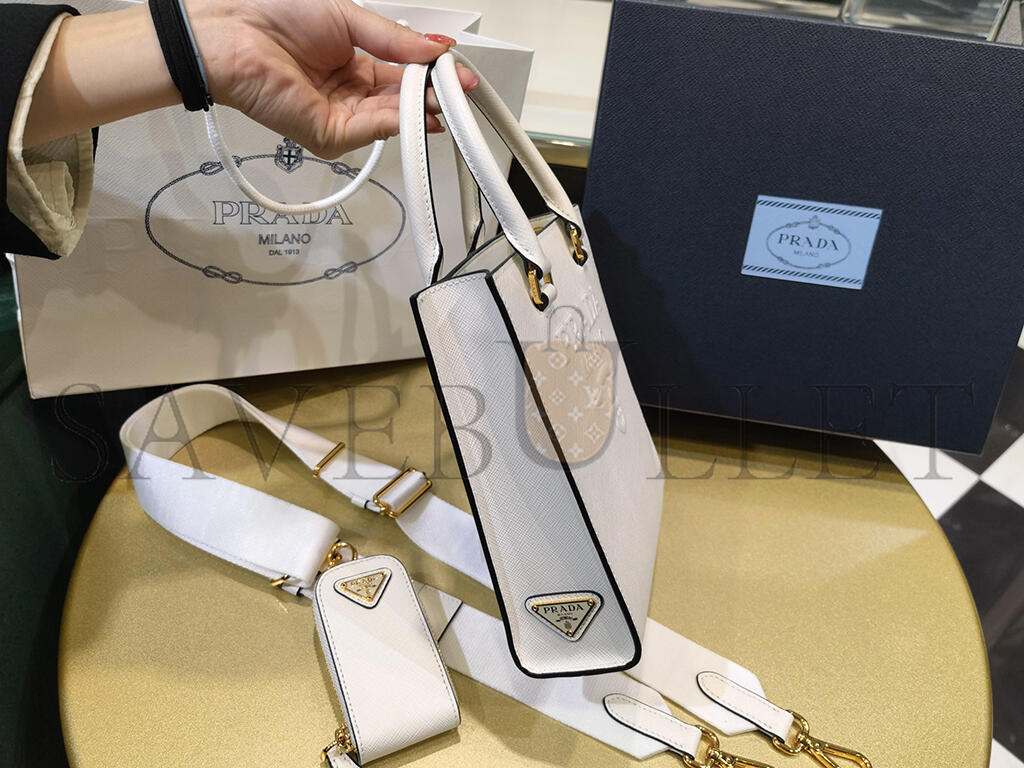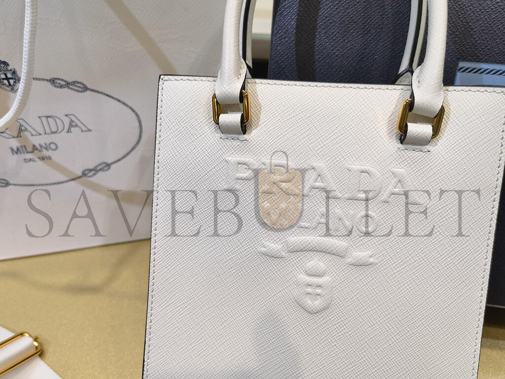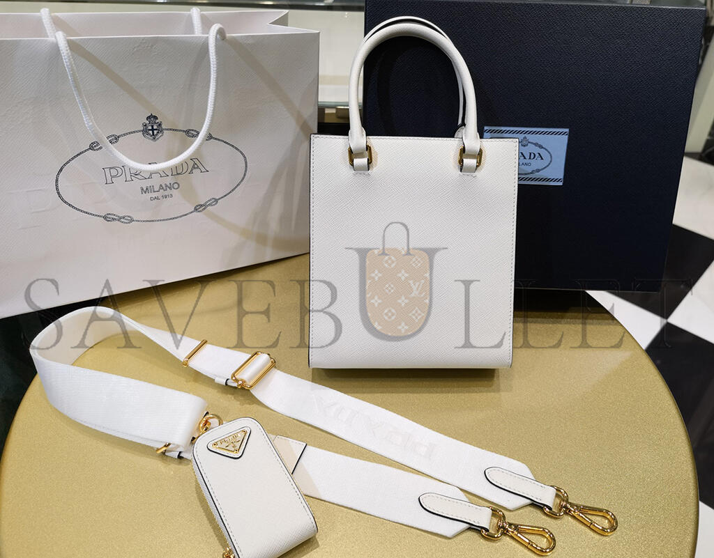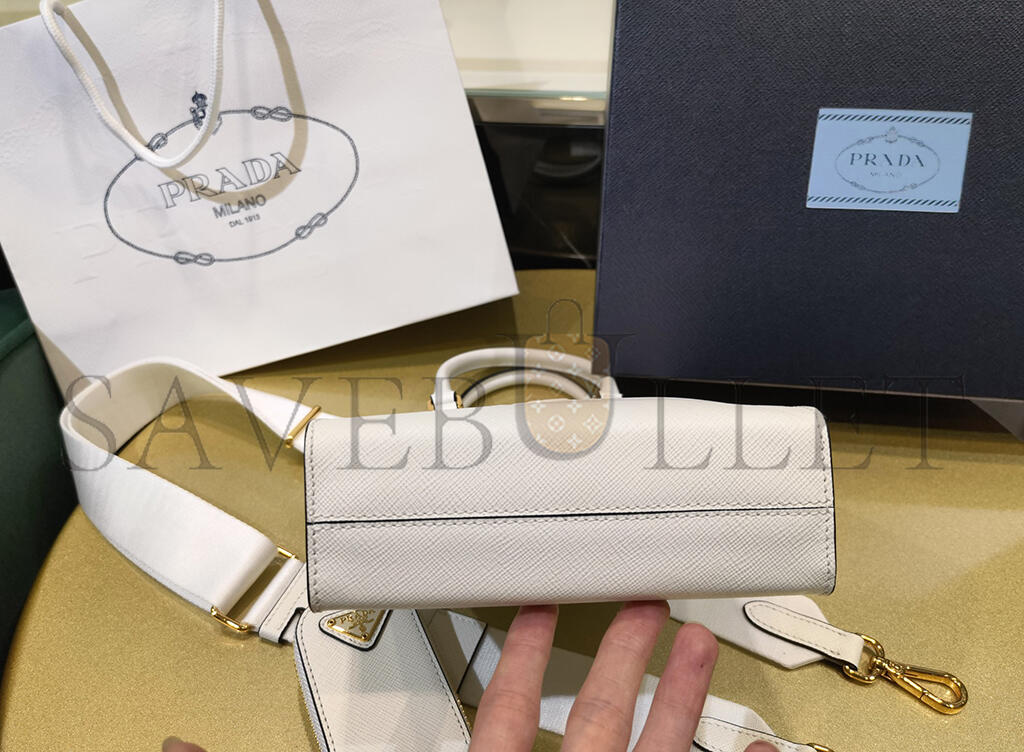 PRADA WHITE SMALL SAFFIANO LEATHER SATCHEL 1BA333 (19*17*6cm)