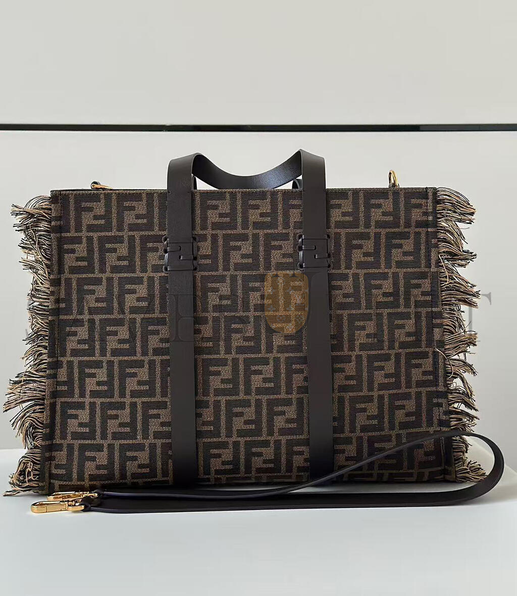 FENDI SUMMER TOTE BROWN FF JACQUARD FABRIC BAG 8BH435AFPMF1GL7 (37*29*16cm)