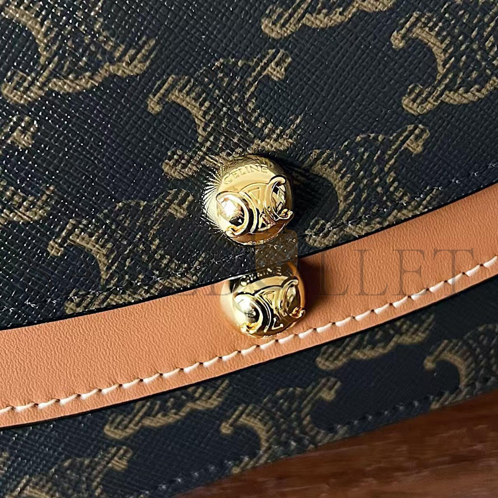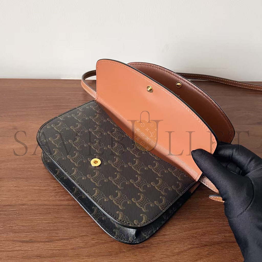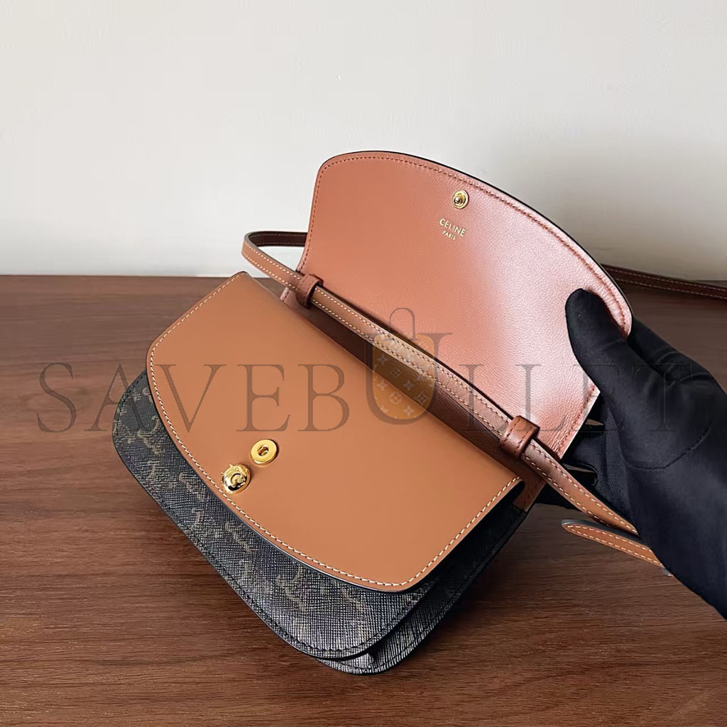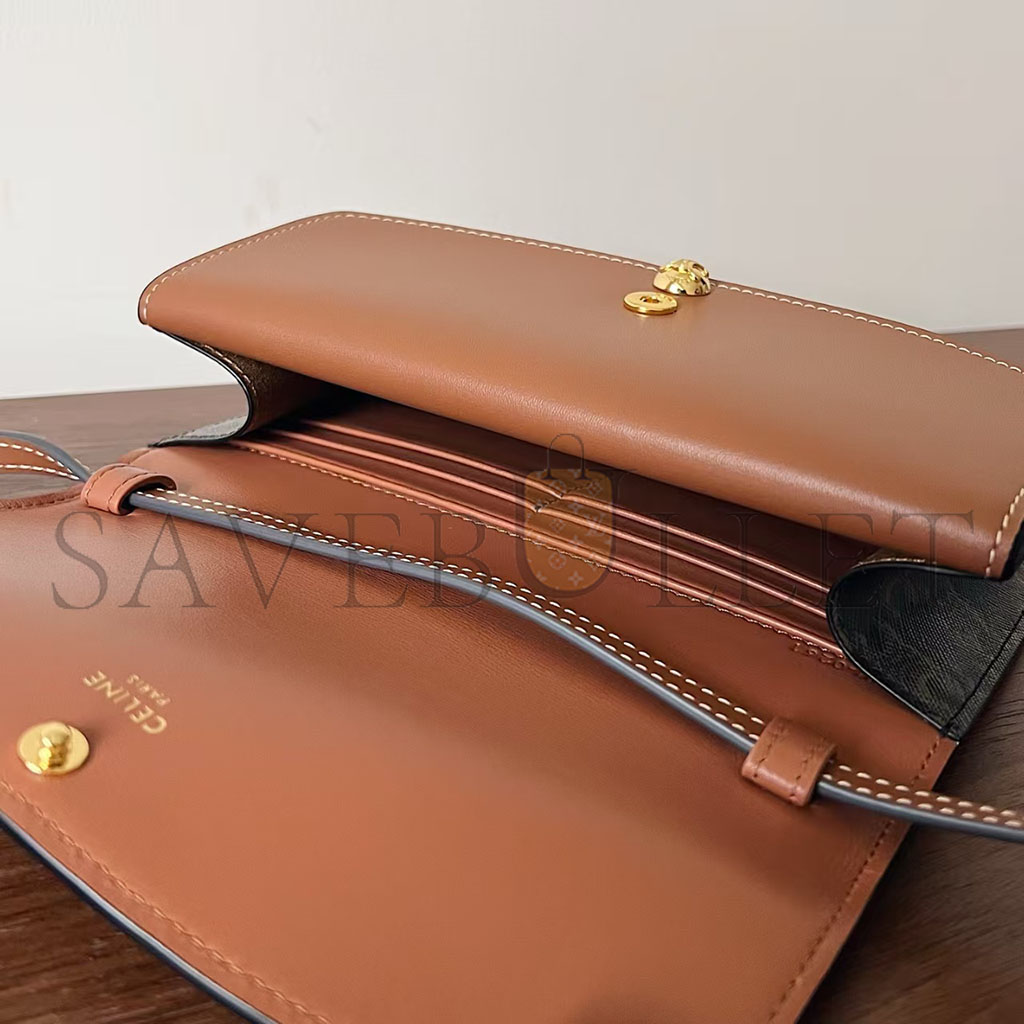 CELINE DUO WALLET ON STRAP IN TRIOMPHE CANVAS AND CALFSKIN 10P672GVL.04LU (20*13*6cm)