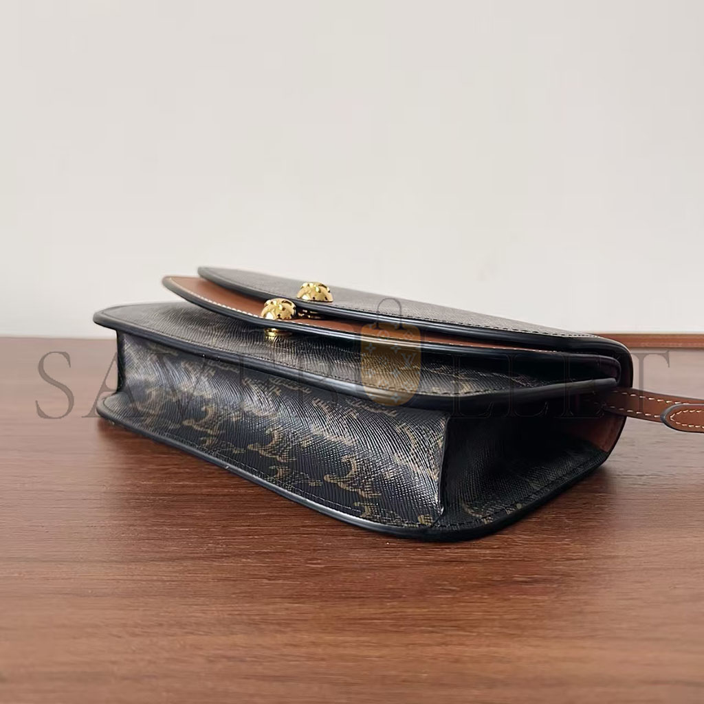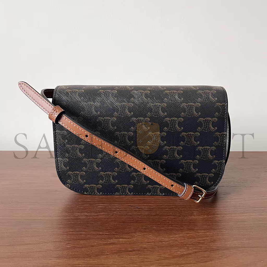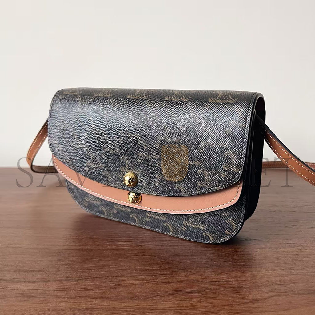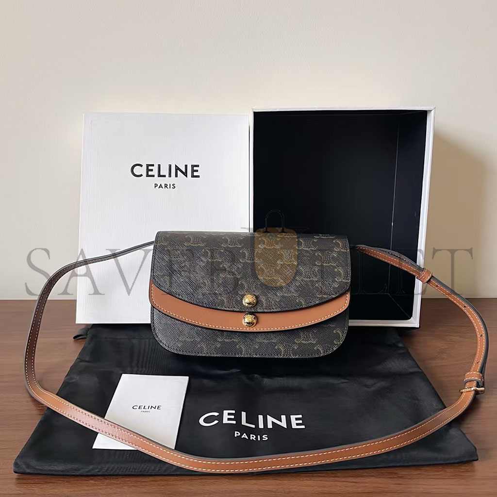CELINE DUO WALLET ON STRAP IN TRIOMPHE CANVAS AND CALFSKIN 10P672GVL.04LU (20*13*6cm)