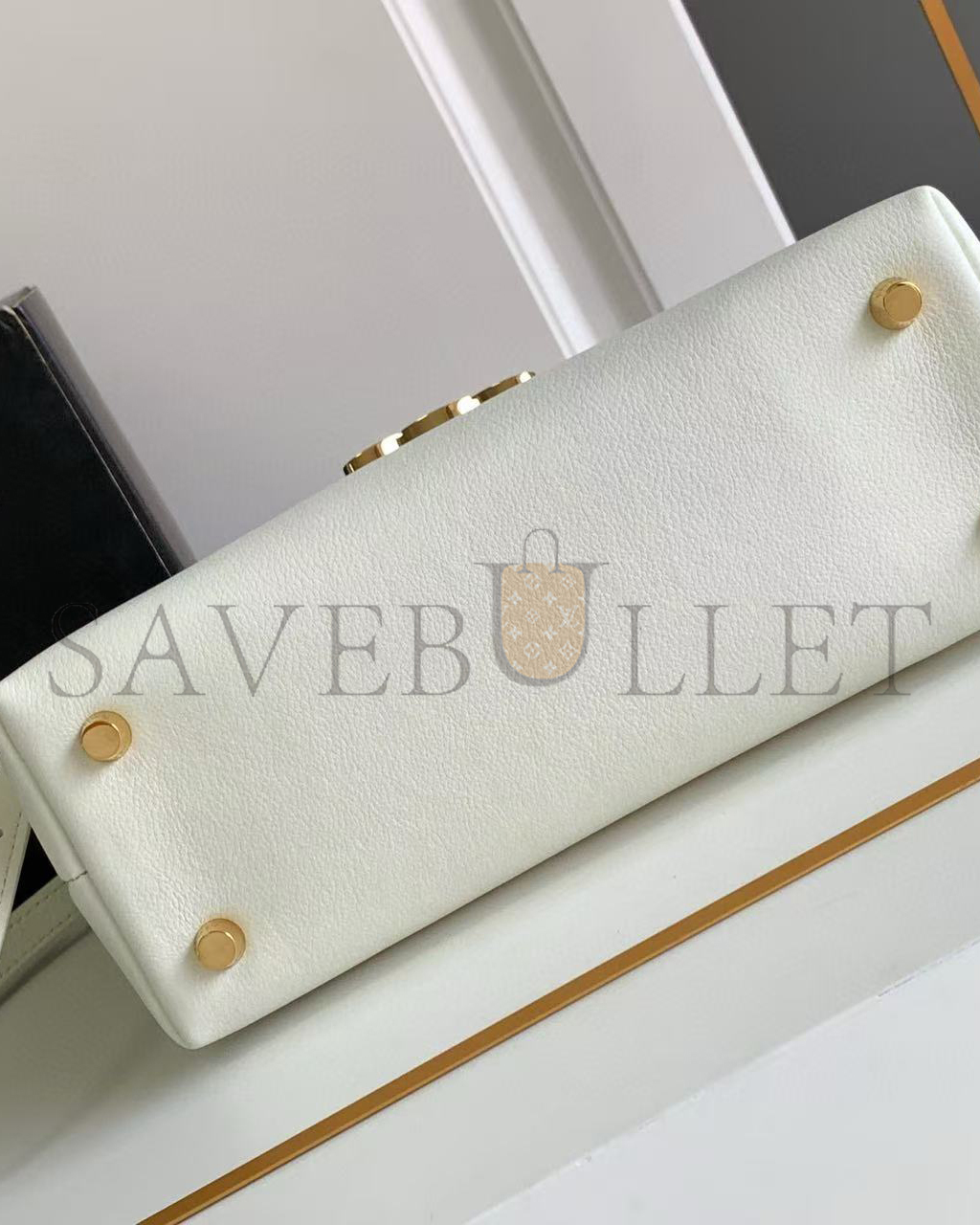 The OnTheGo PM is a tote-style handbag made from pastel-colored Monogram Empreinte leather, with its distinctive Monogram embossing. The four riveted ..