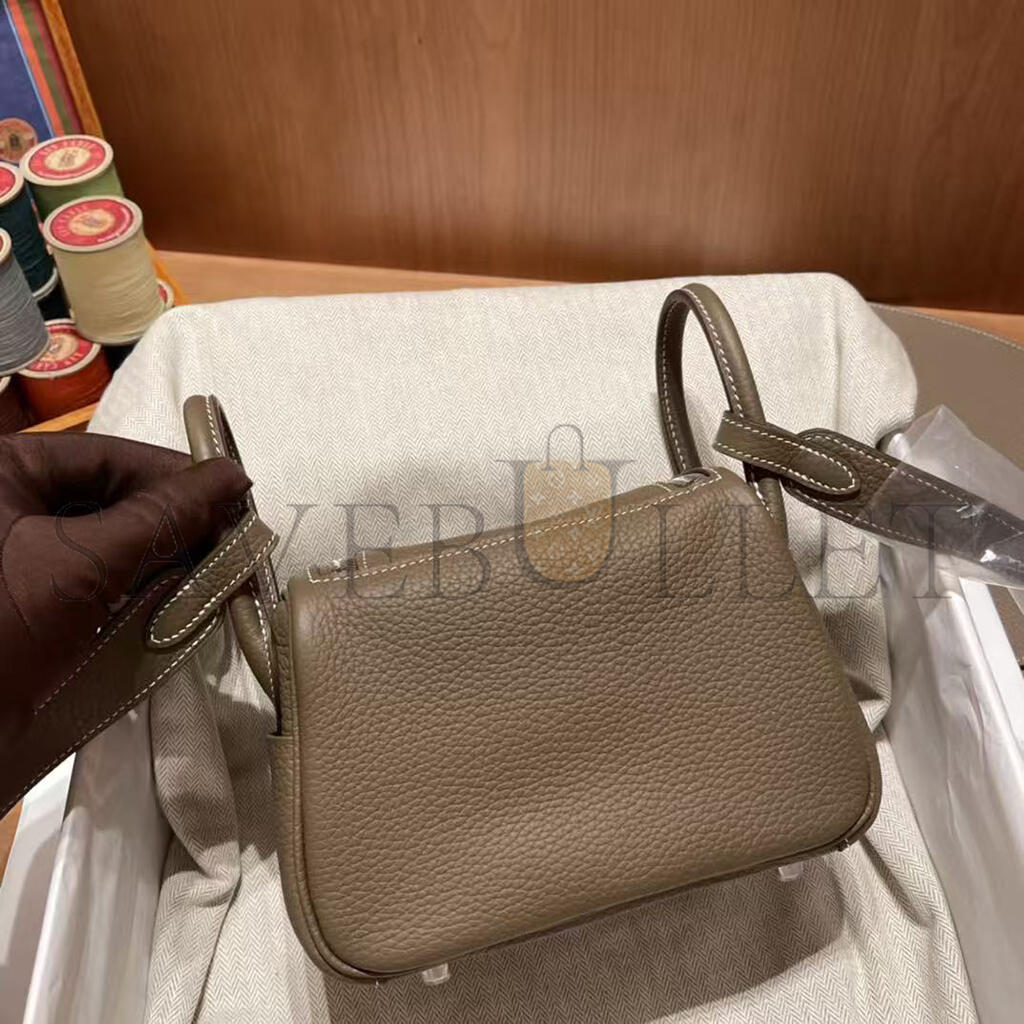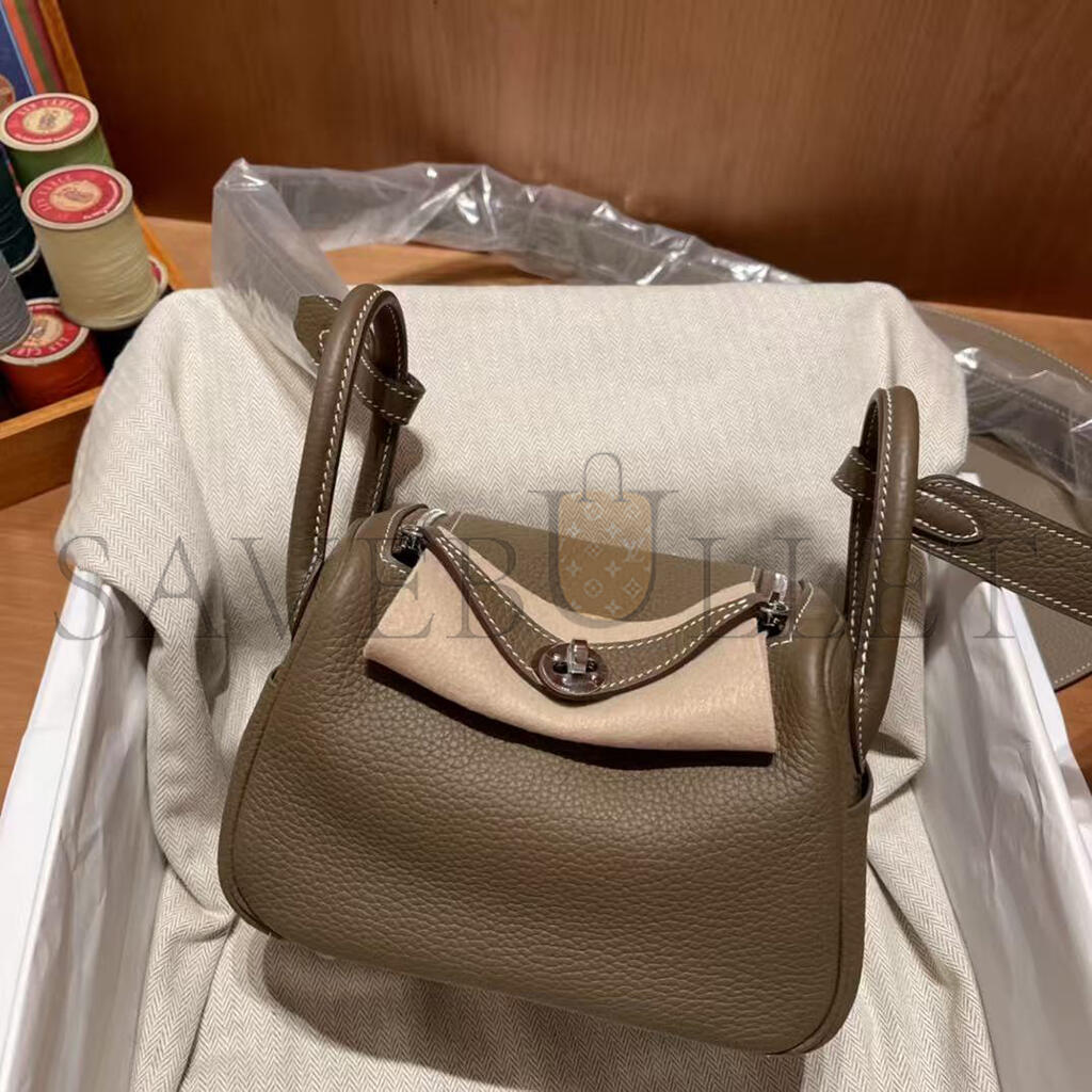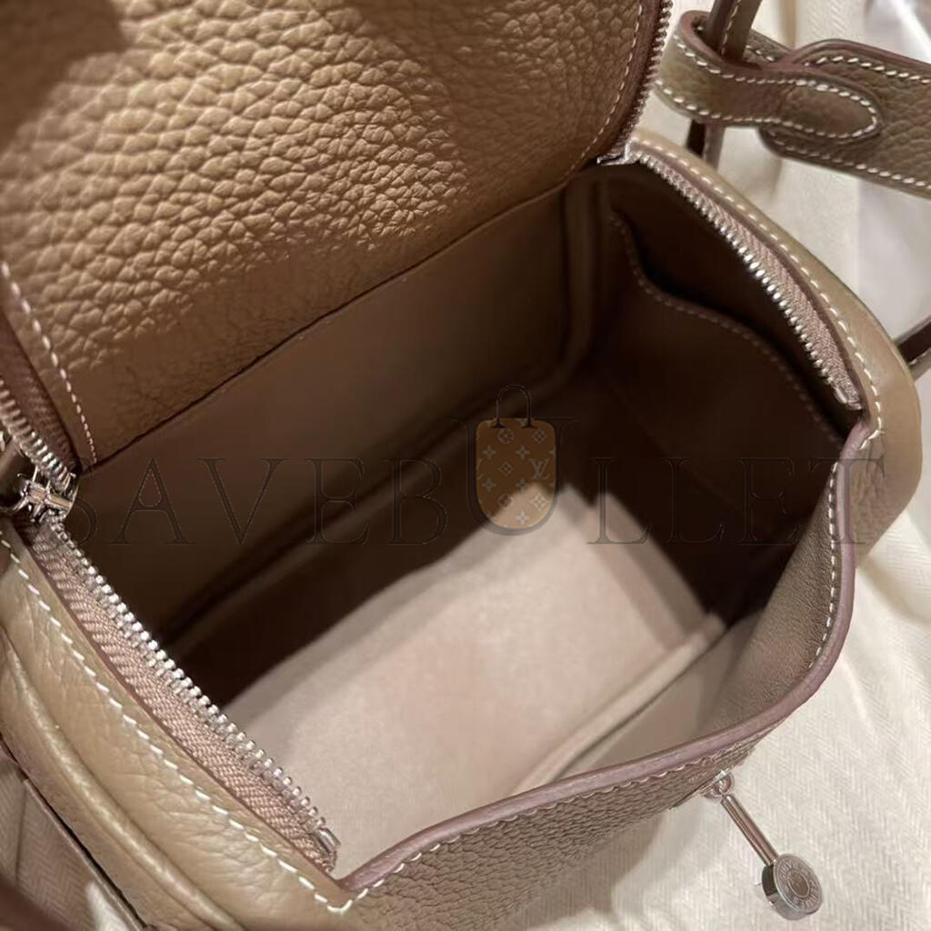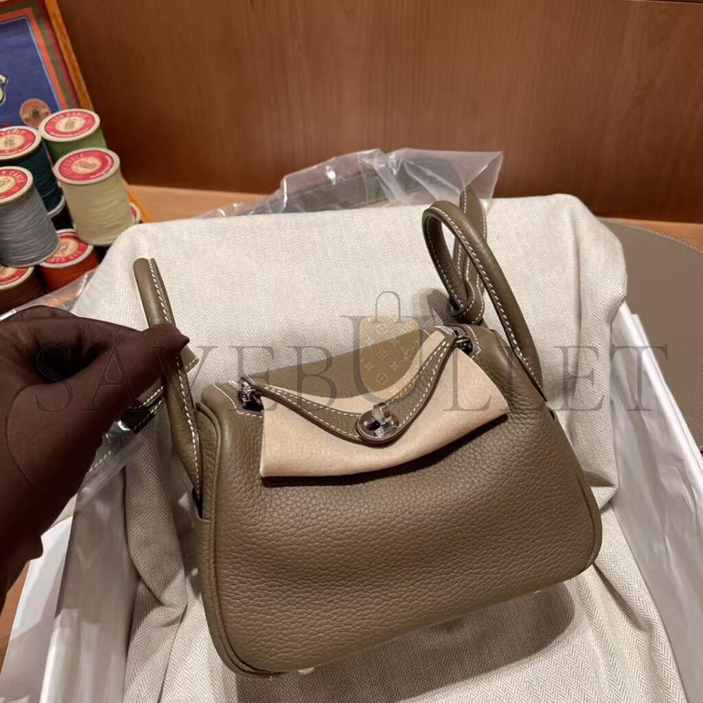 HERMÈS MASTER MINI LINDY IITAURILLON CLEMENCE ETOUPE SILVER METAL FITTINGS (19*13*9.5cm)