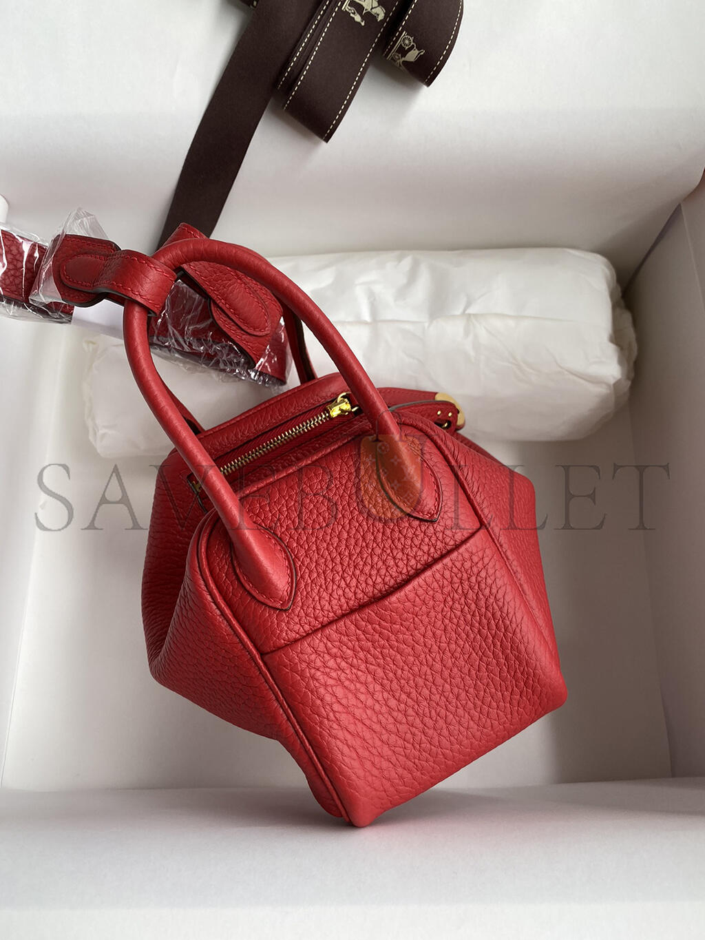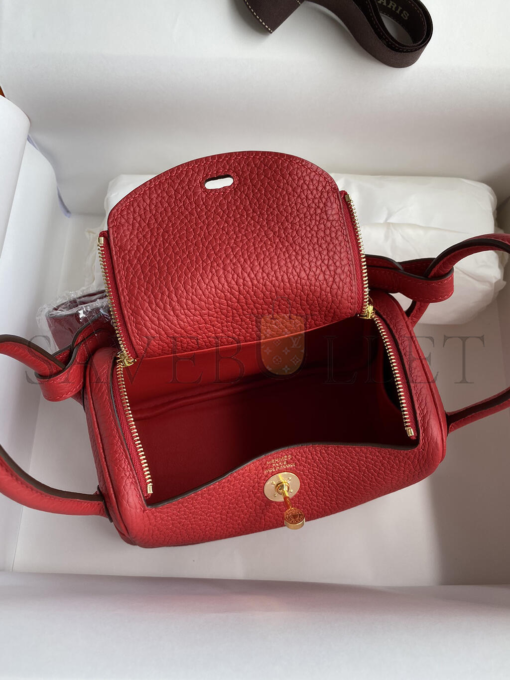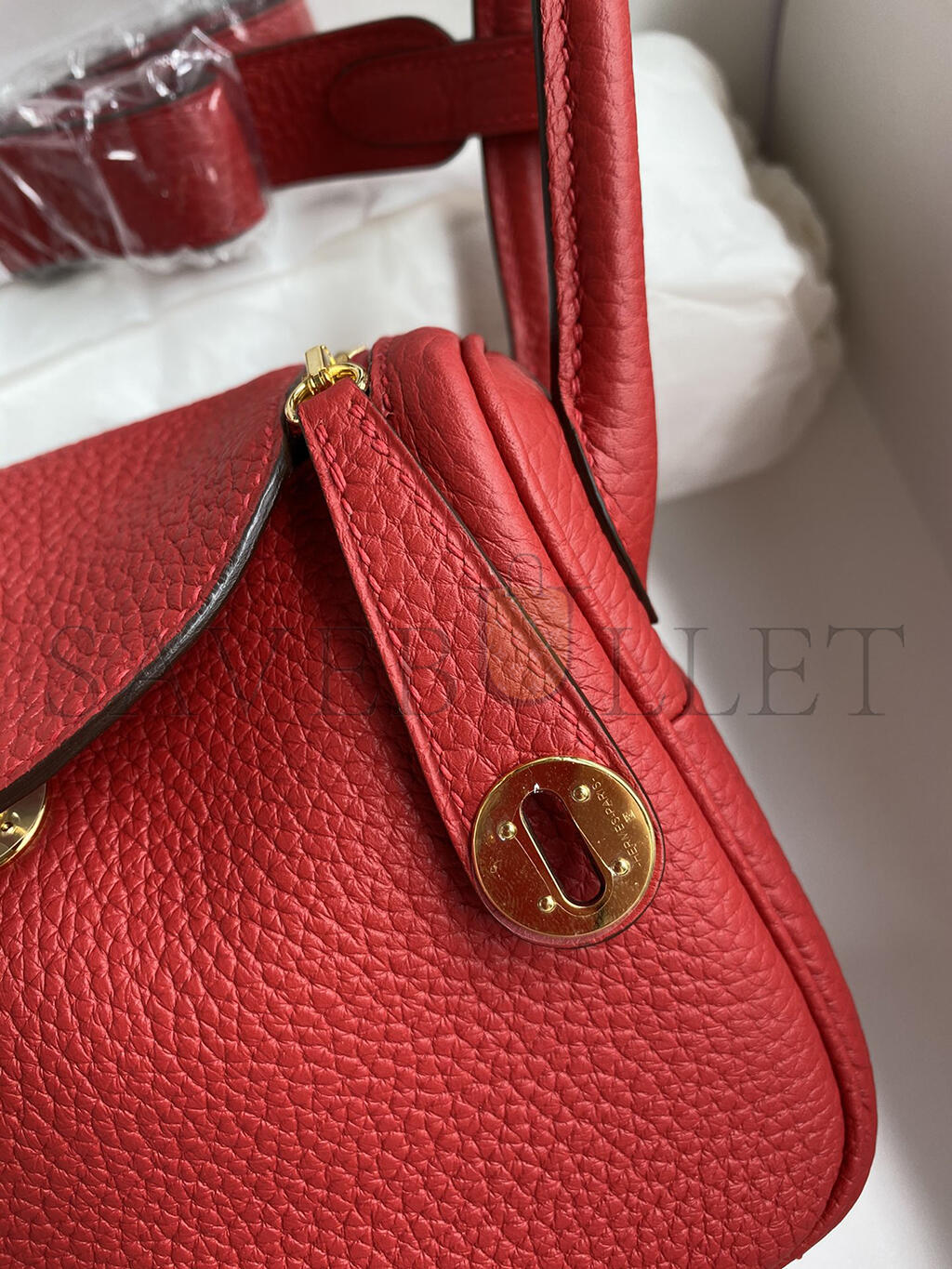 HERMES LINDY MINI 19 BAG CLEMENCE GOLD HARDWARE (19*12*9.5cm)