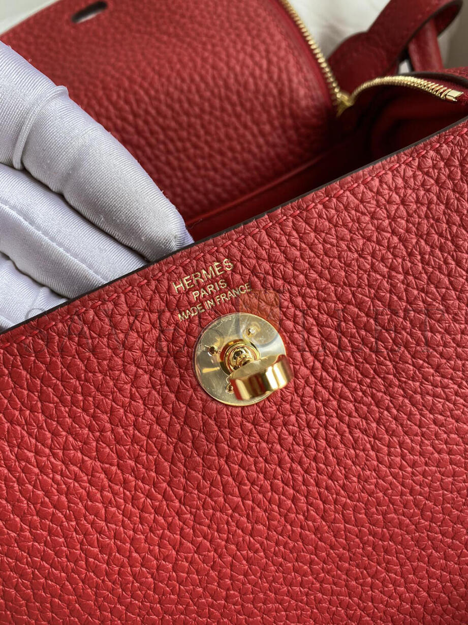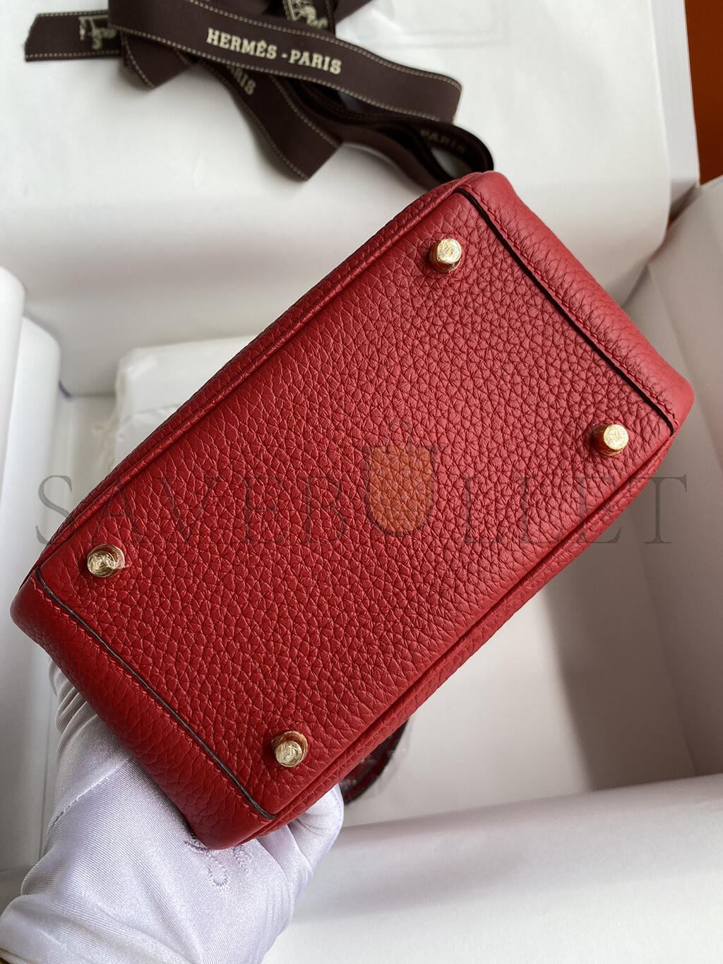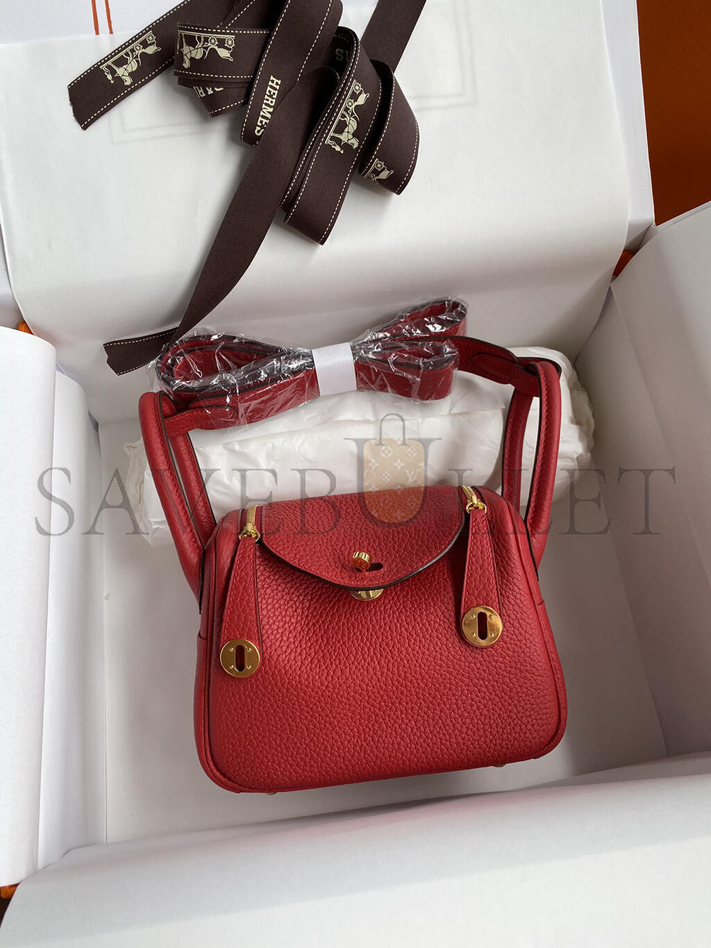 HERMES LINDY MINI 19 BAG CLEMENCE GOLD HARDWARE (19*12*9.5cm)