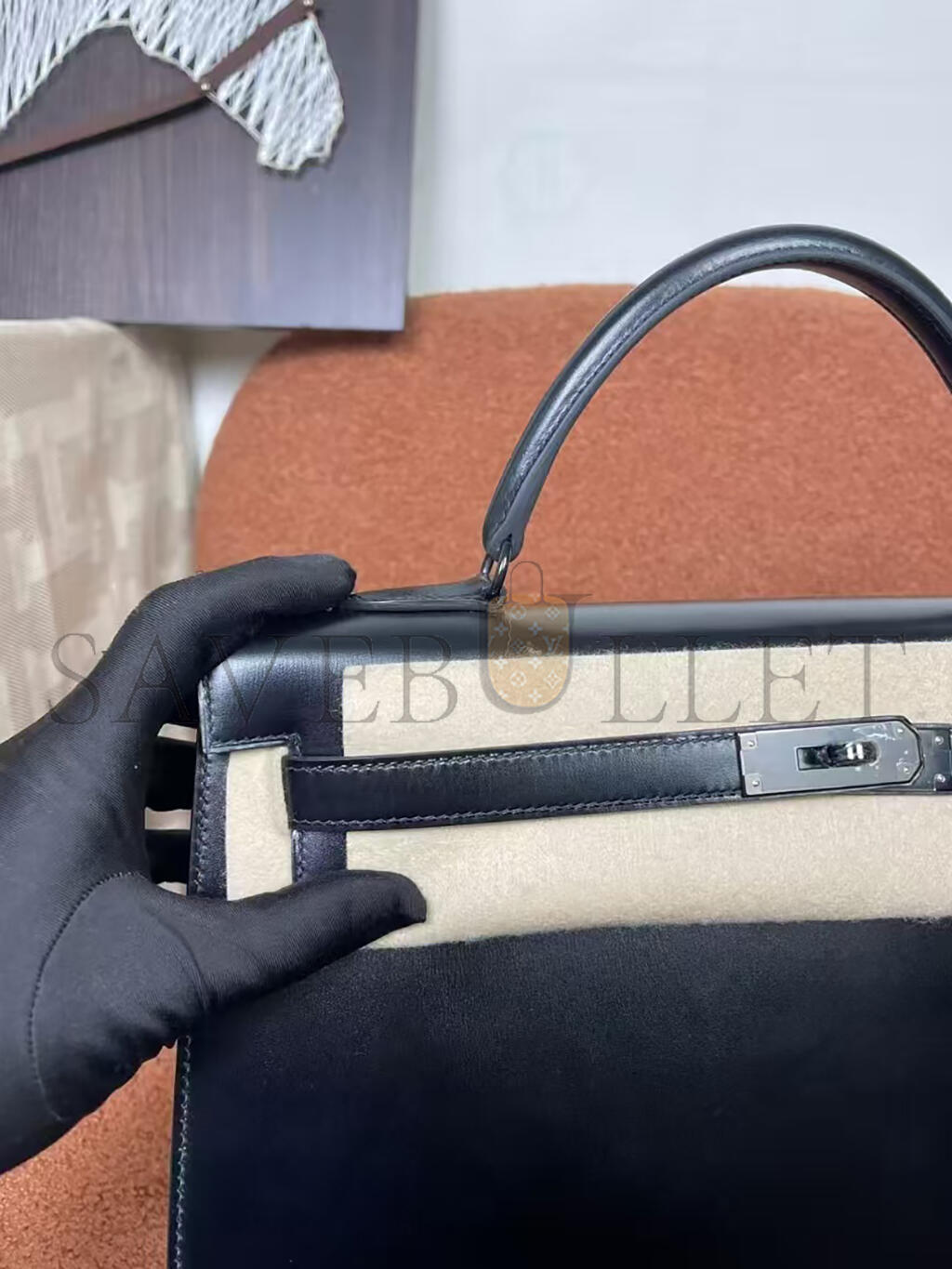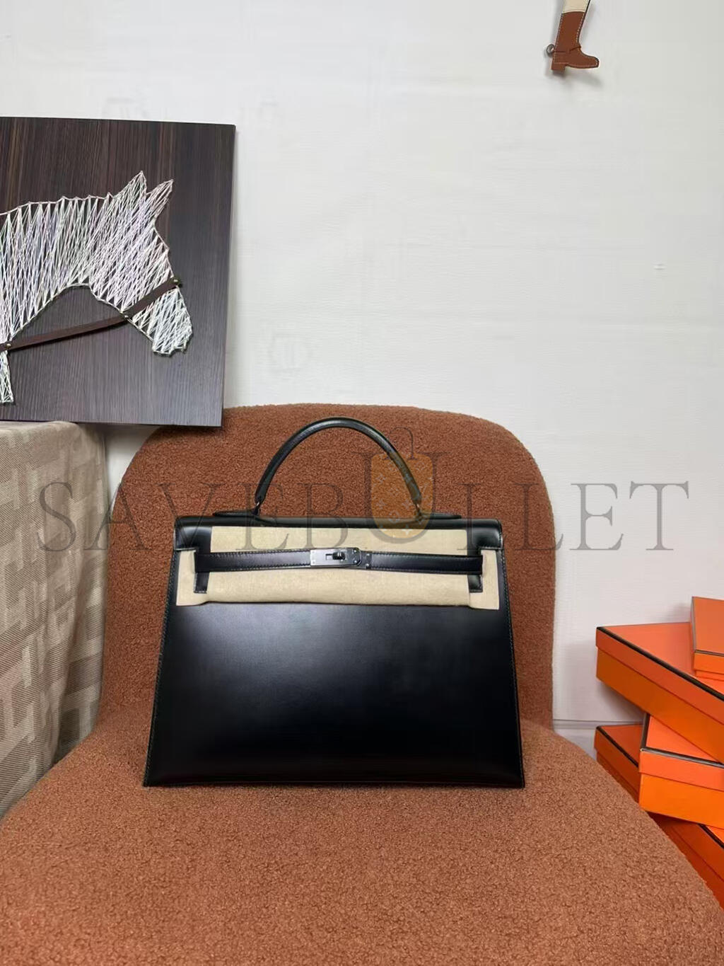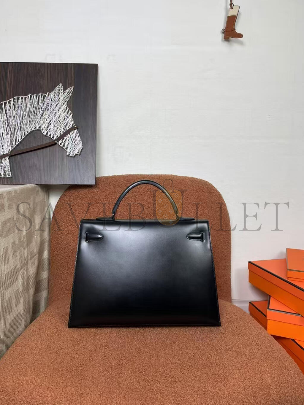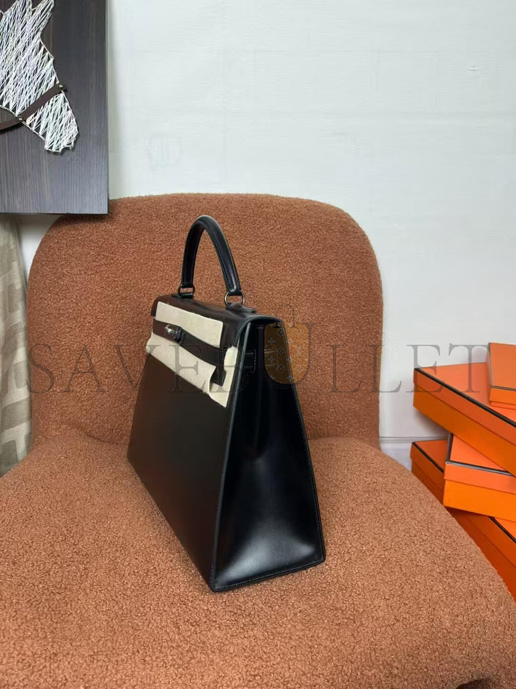 HERMÈS EDITION SO BLACK BOX KELLY 35 HANDBAG BLACK (35*25*12cm)