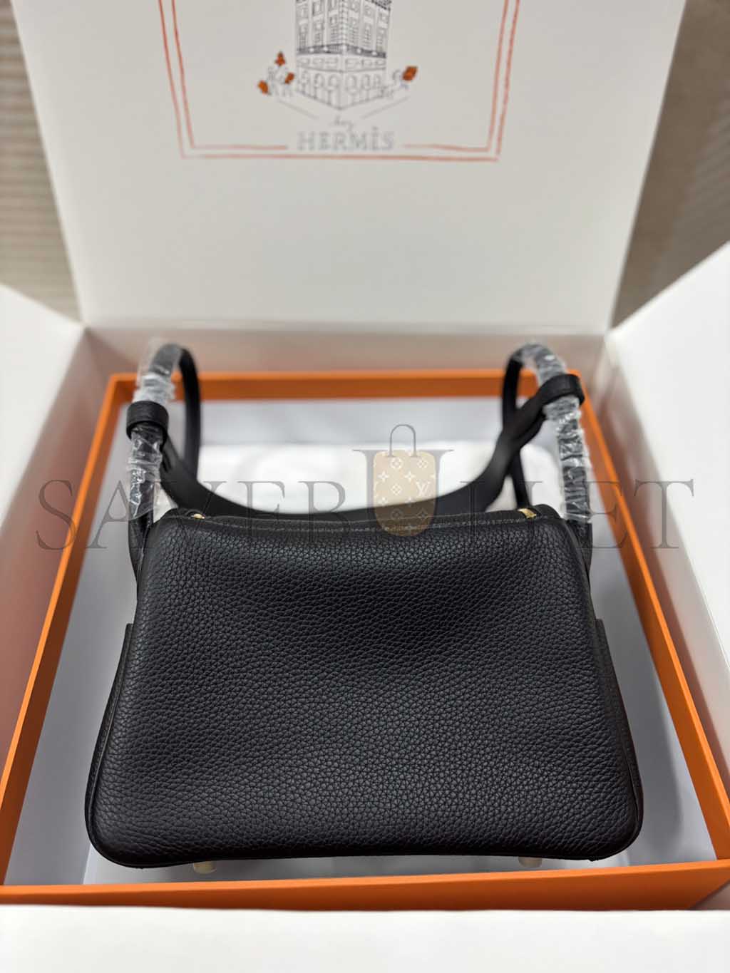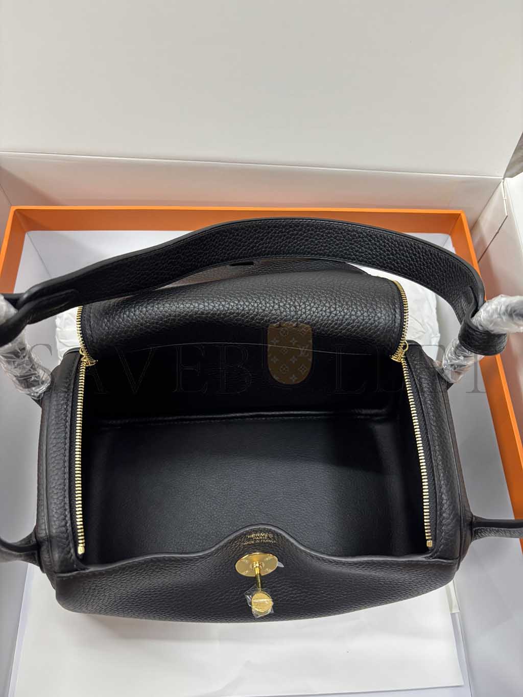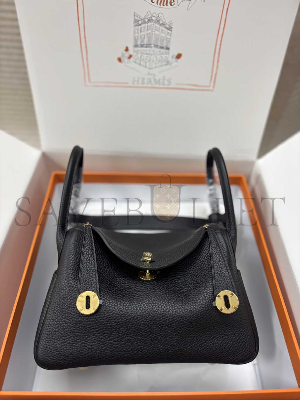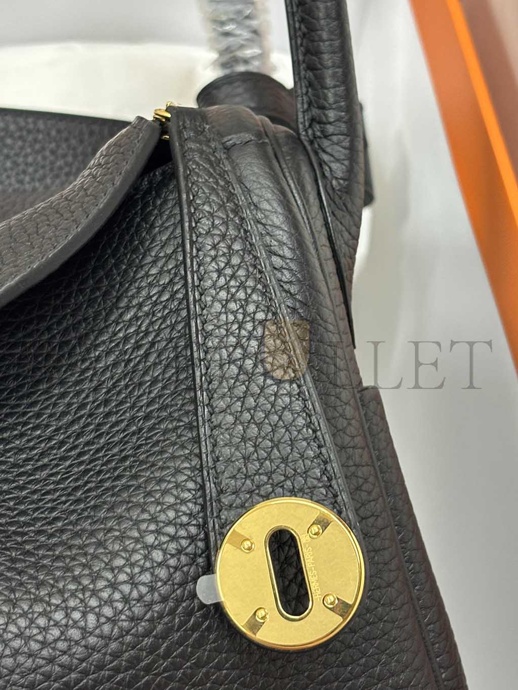 HERMÈS LINDY 26 CLEMENCE LEATHER TOTE WITH GOLD TONE HARDWARE (26*18*12cm)