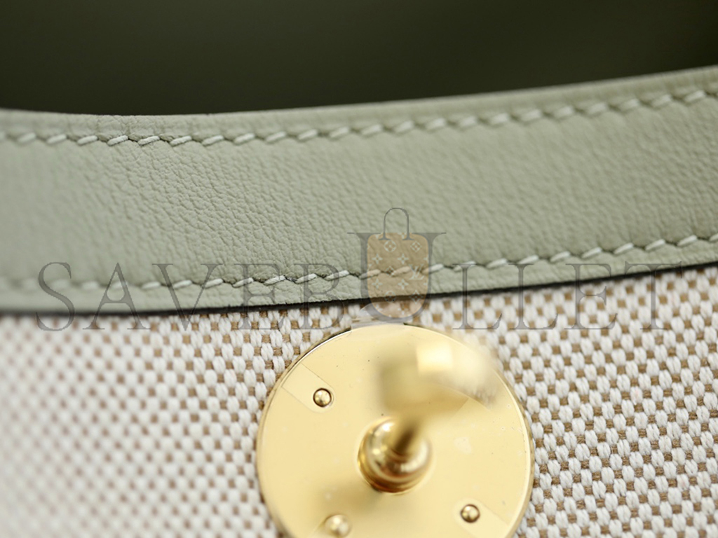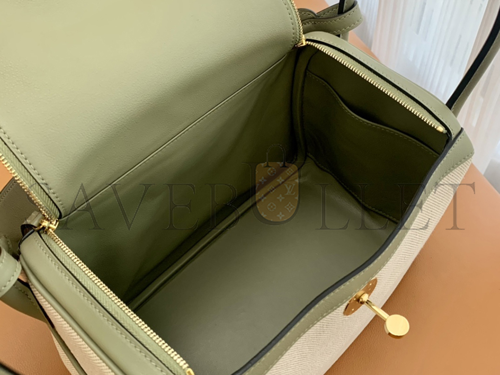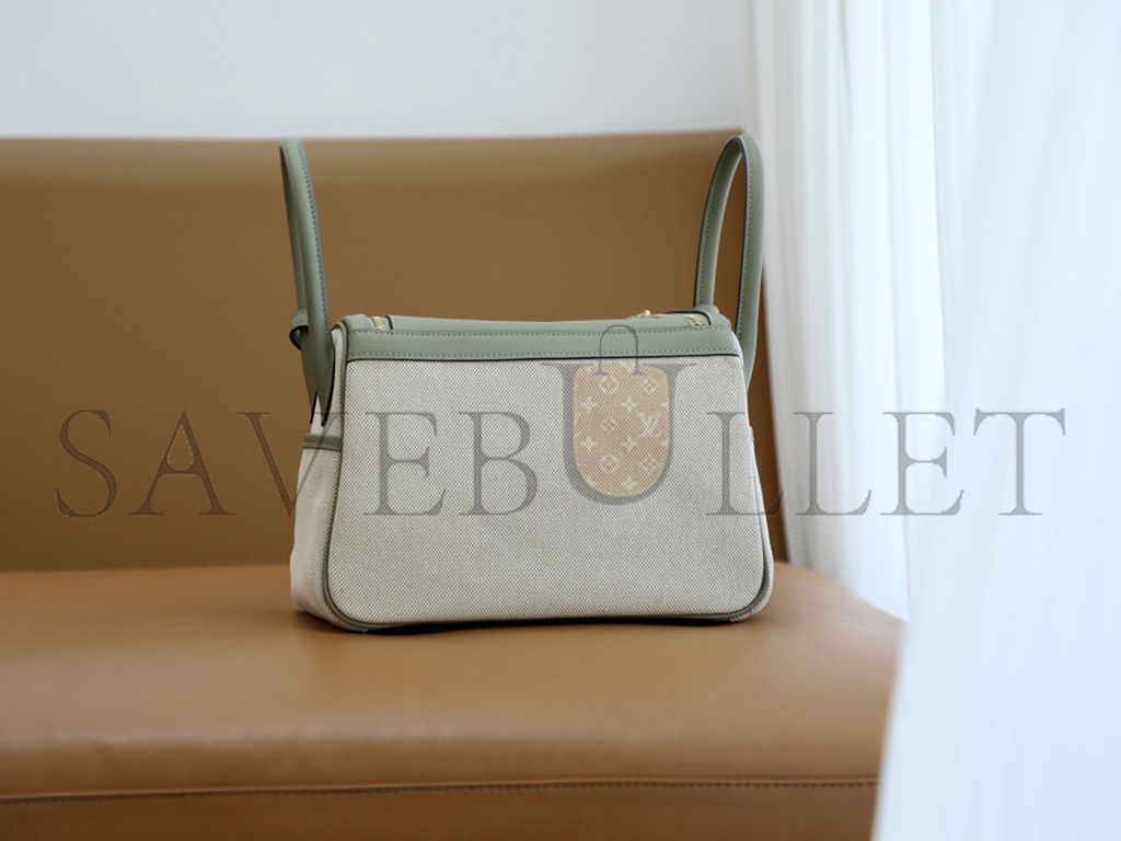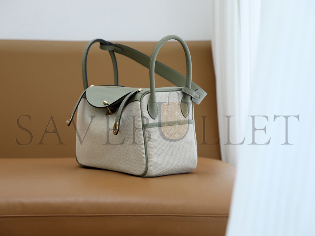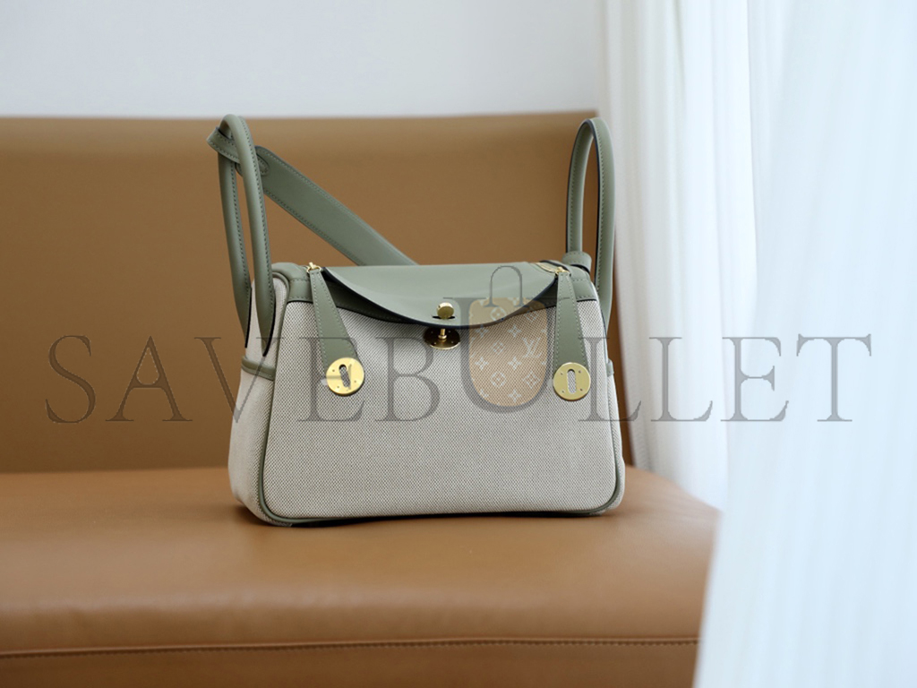 HERMÈS LINDY 26 BAG CANVAS AND LEATHER GOLD HARDWARE (26*18*12cm)