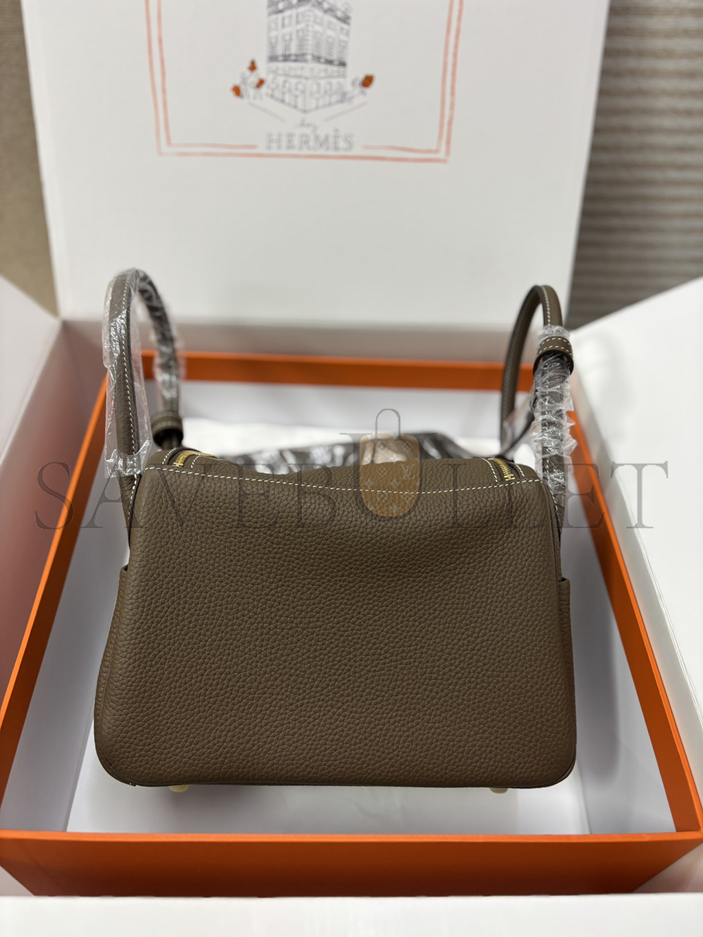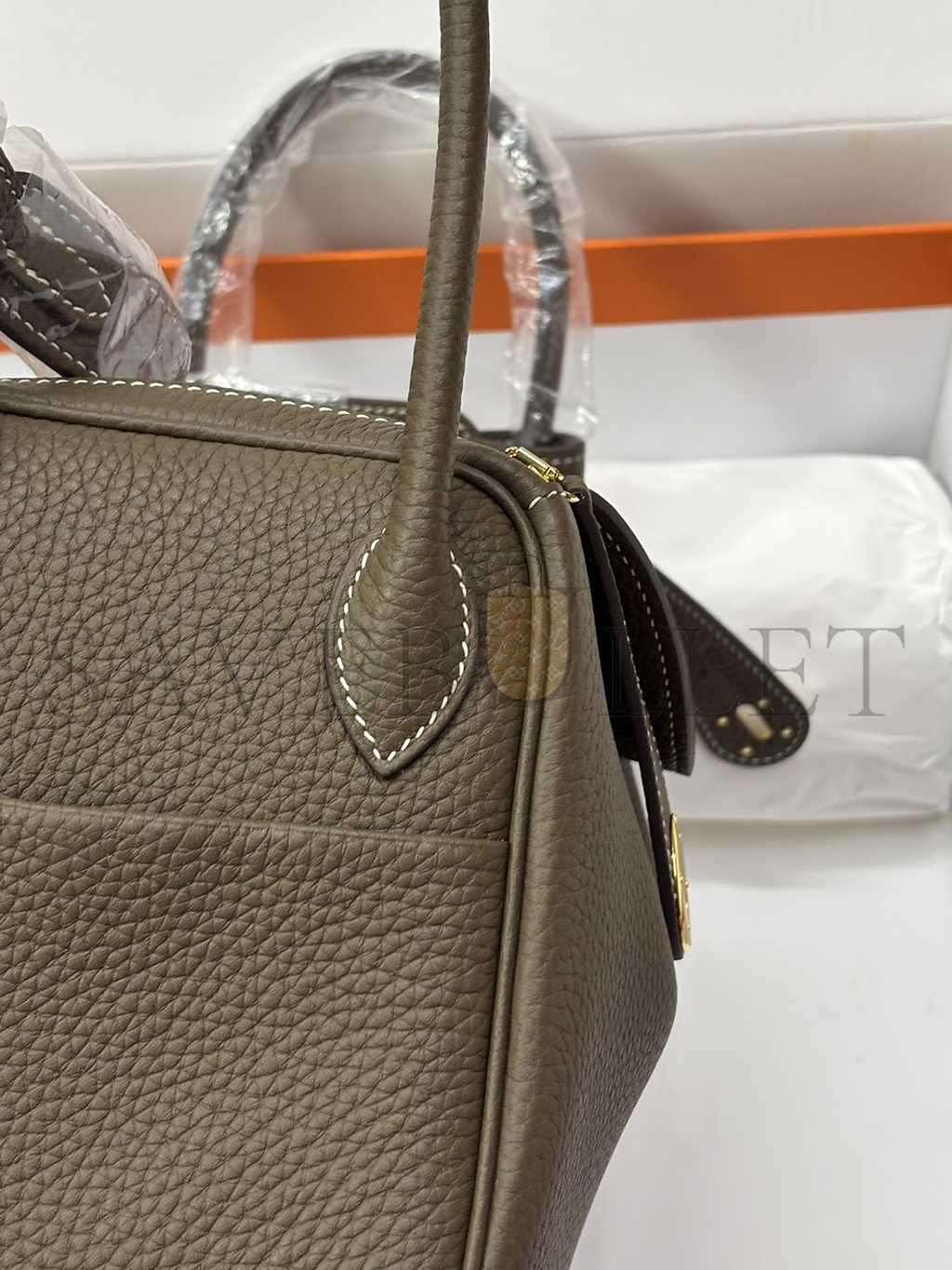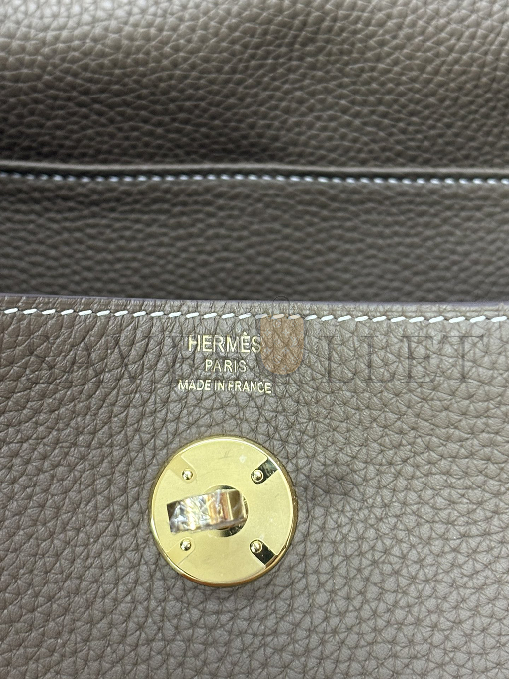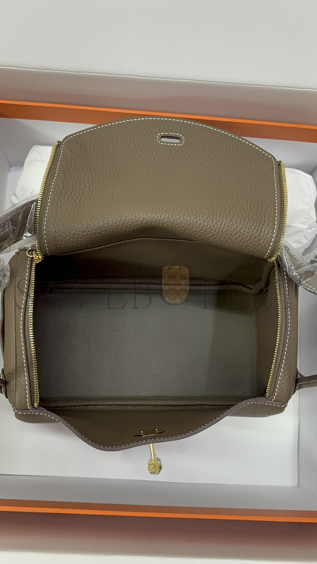 HERMÈS LINDY 26 CLEMENCE ÉTOUPE GOLD HARDWARE (26*18*12cm)