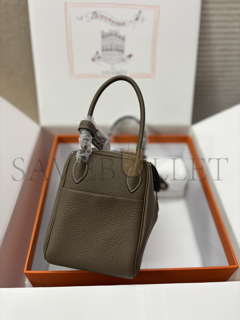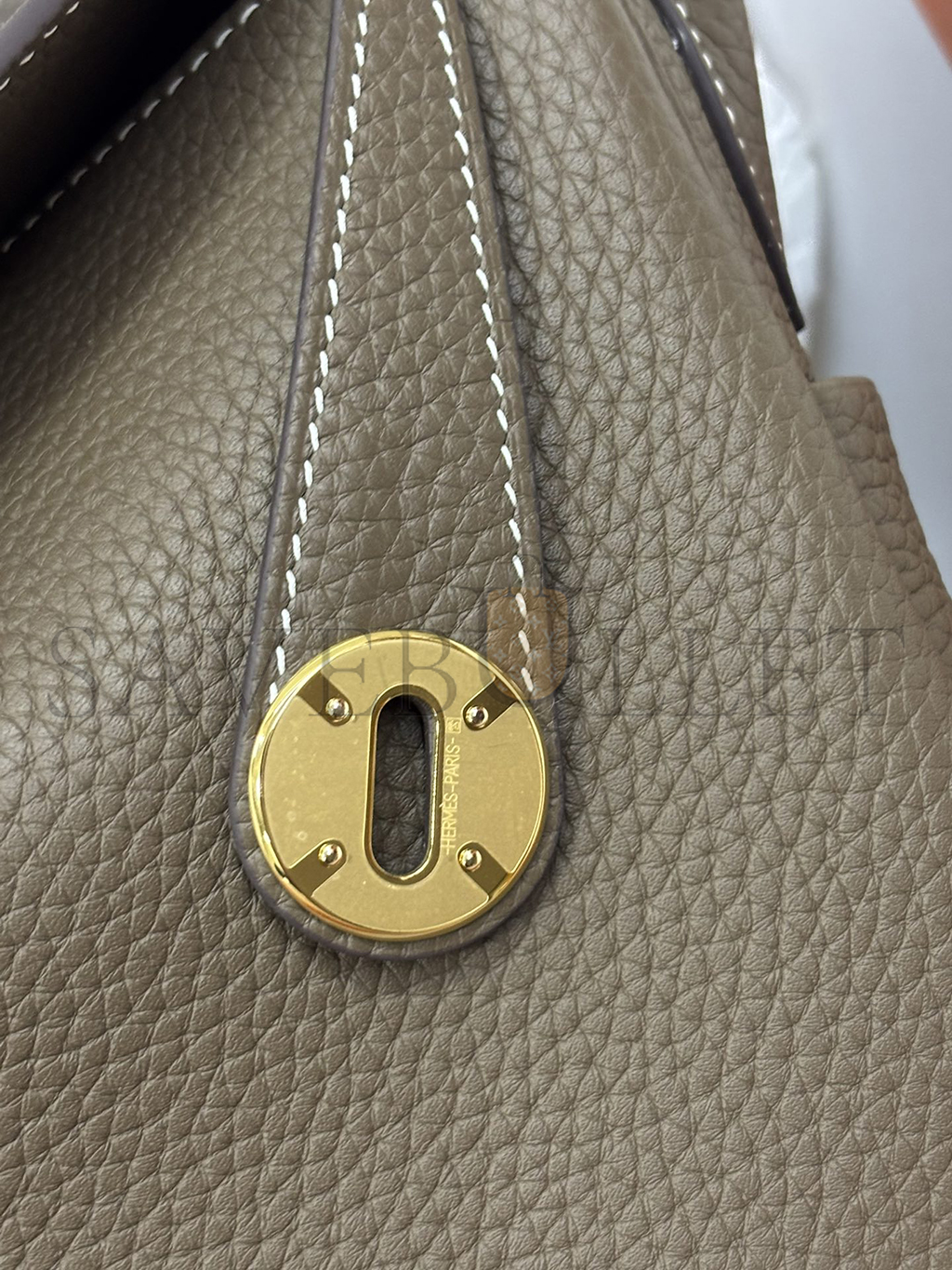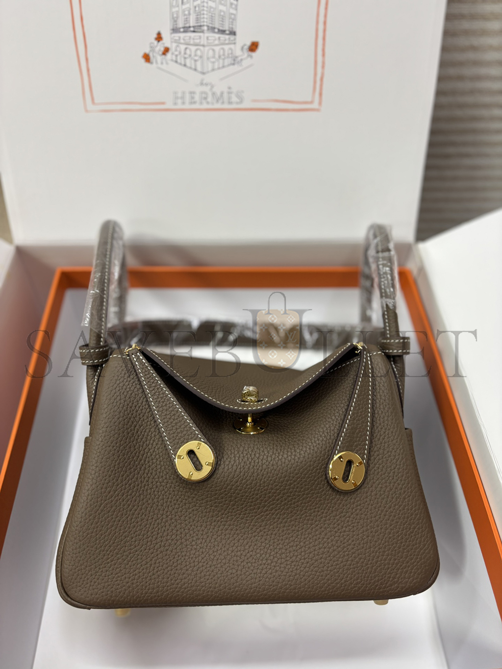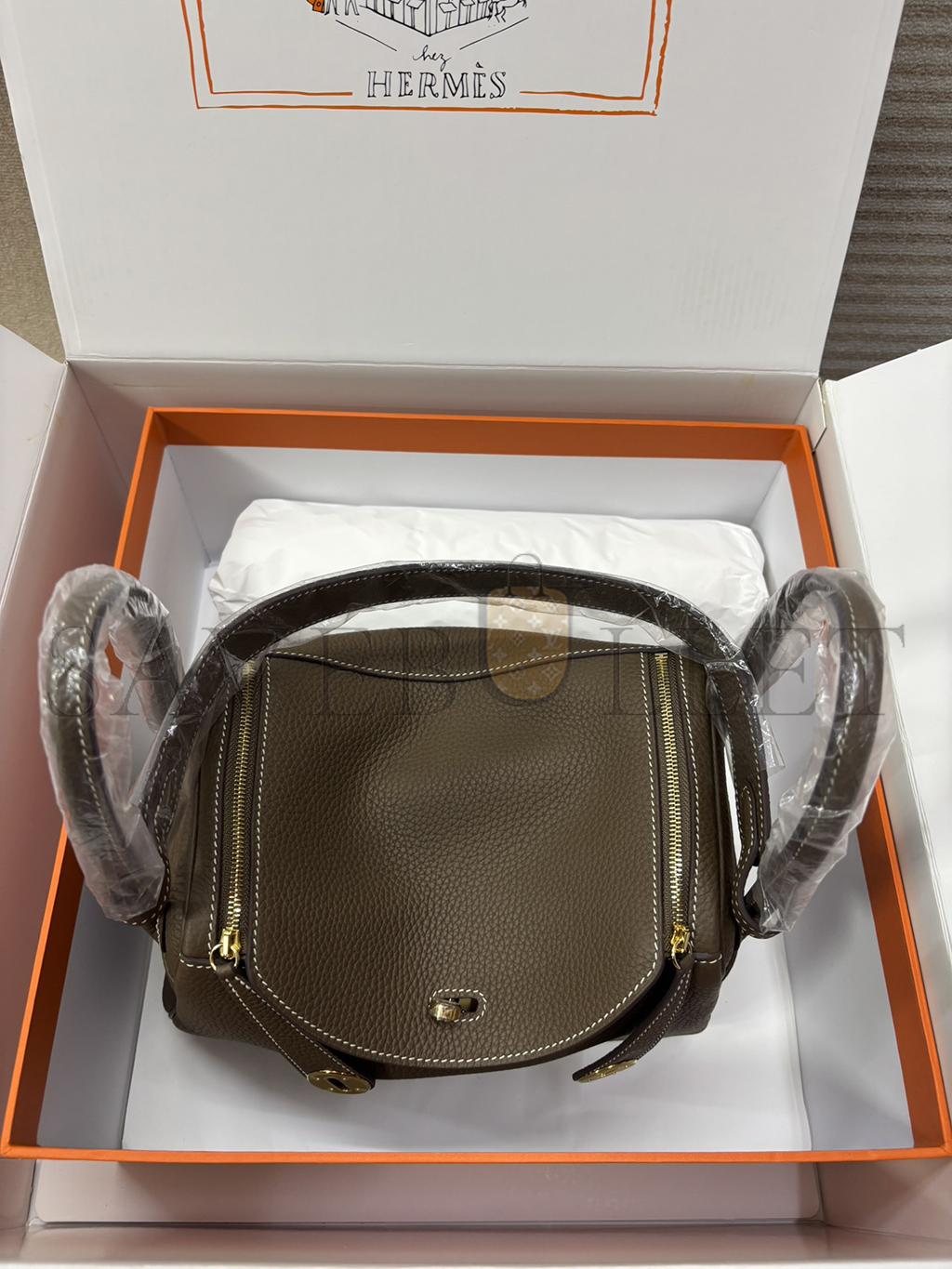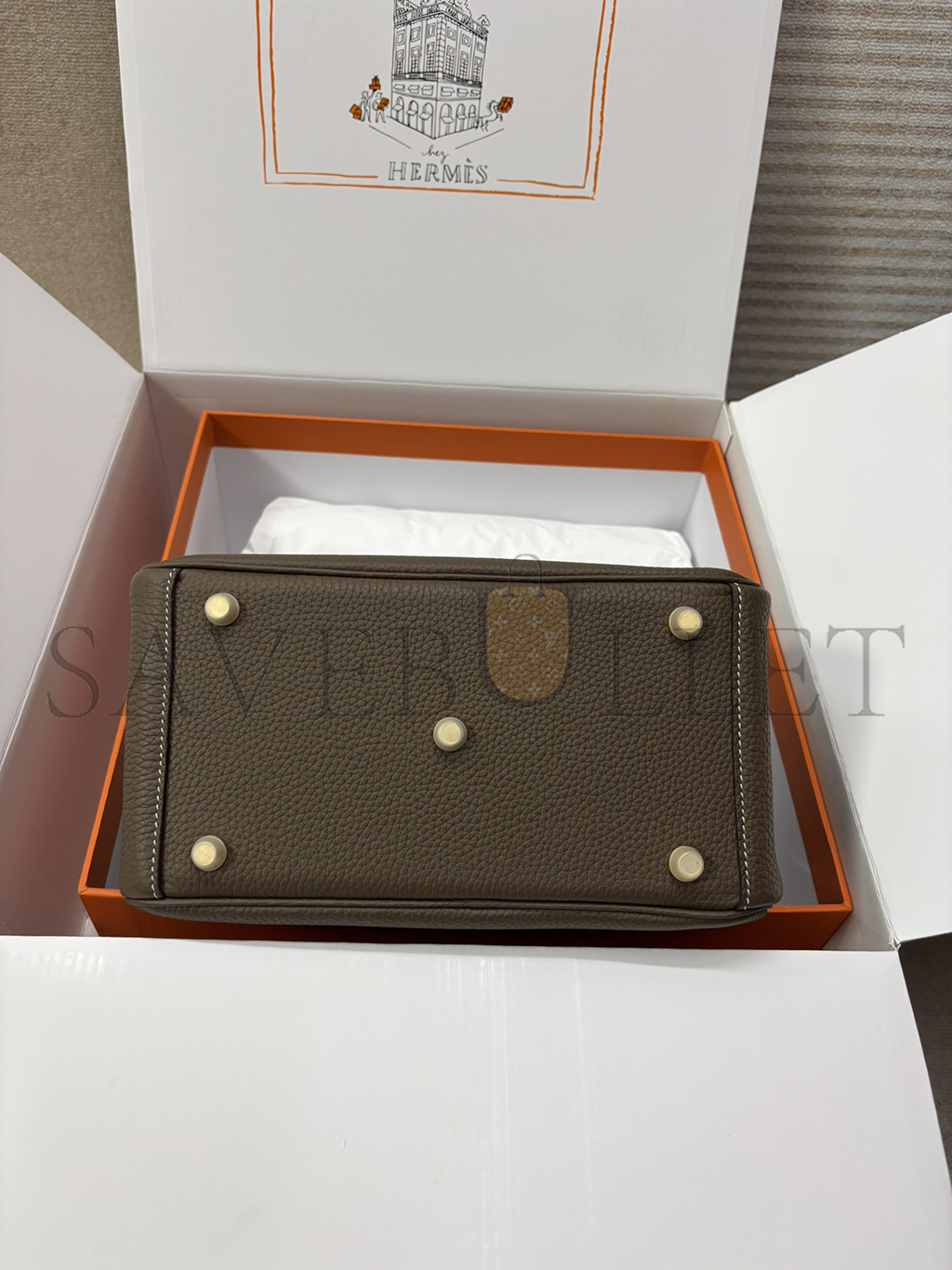 HERMÈS LINDY 26 CLEMENCE ÉTOUPE GOLD HARDWARE (26*18*12cm)