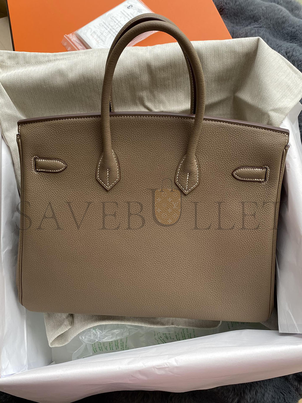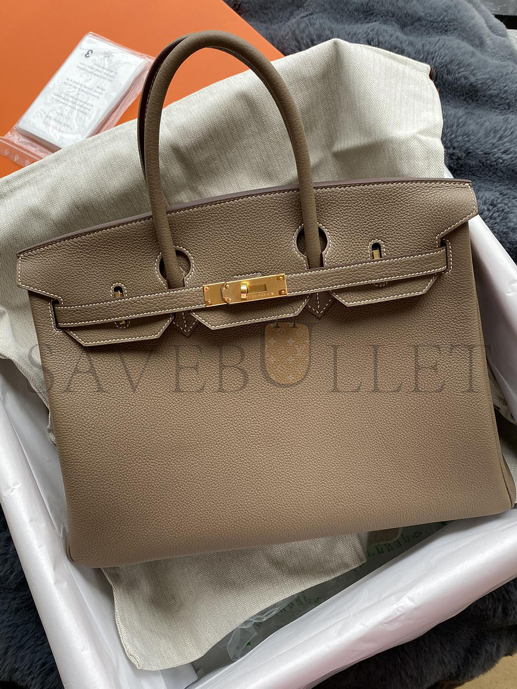 HERMÈS BIRKIN 35 ETOUPE TOGO GOLD HARDWARE (35*28*18cm)