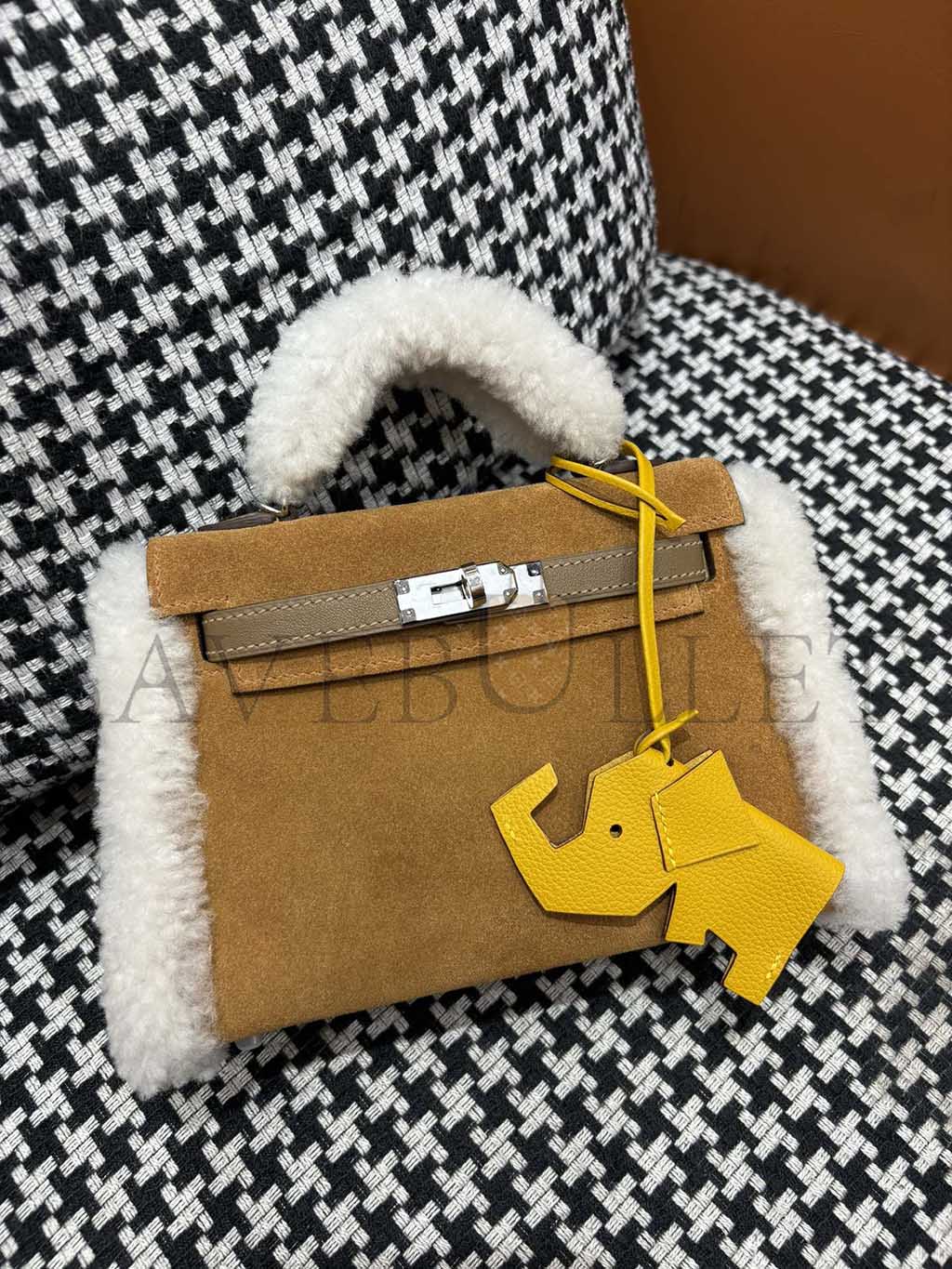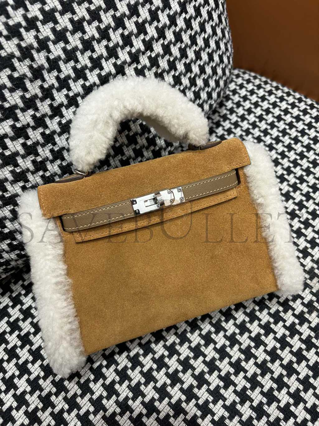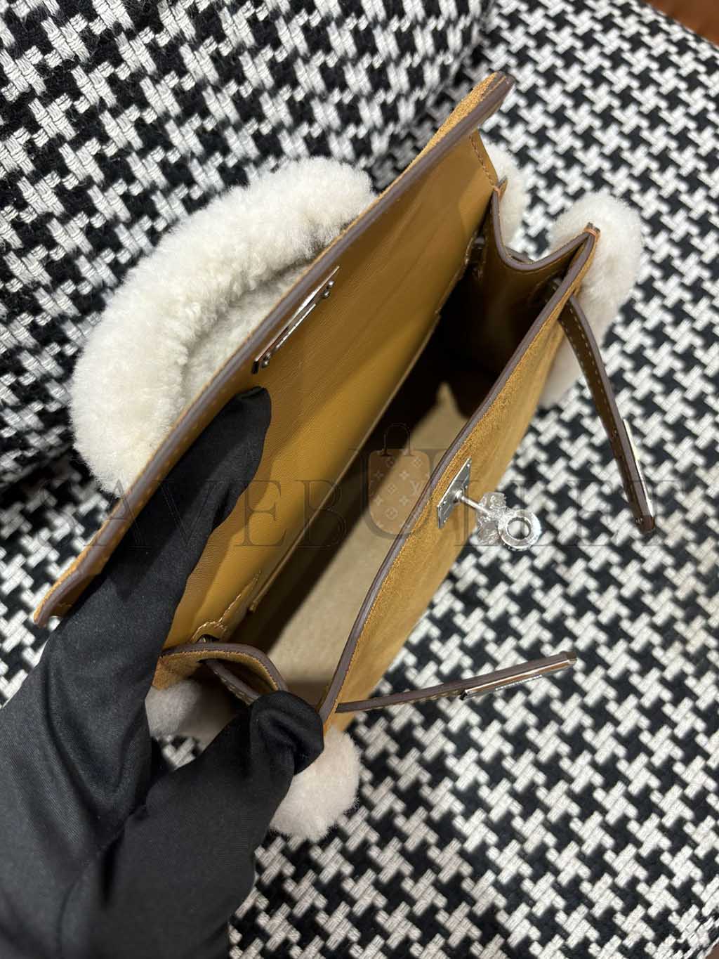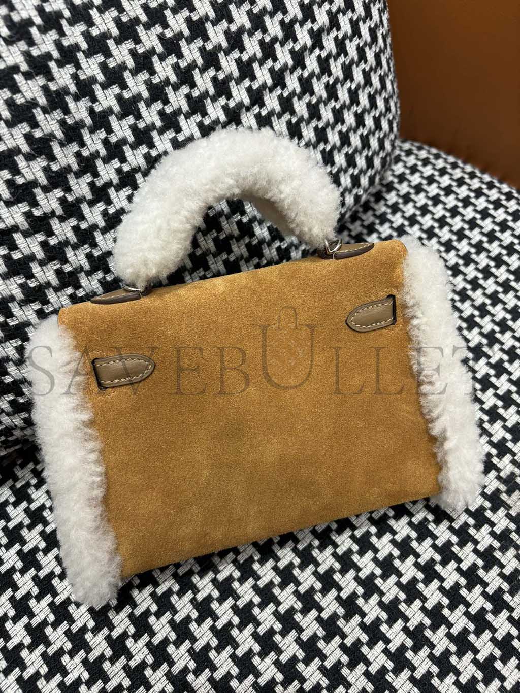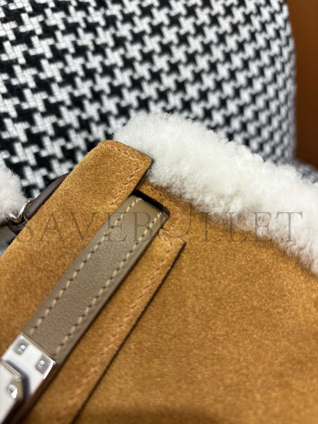 HERMÈS TEDDY KELLY 20 CHAMOIS SHEARLING AND SWIFT PALLADIUM (20*15*8cm)