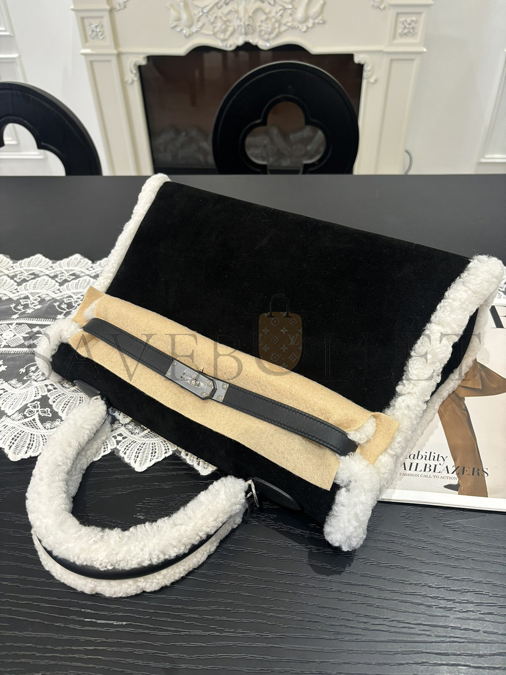HERMES KELLY 35 TEDDY SHEARLING PALLADIUM HARDWARE (35*24*12cm)