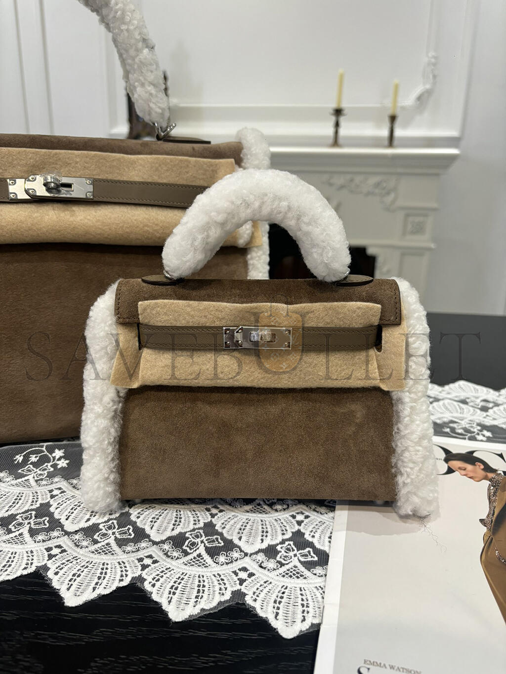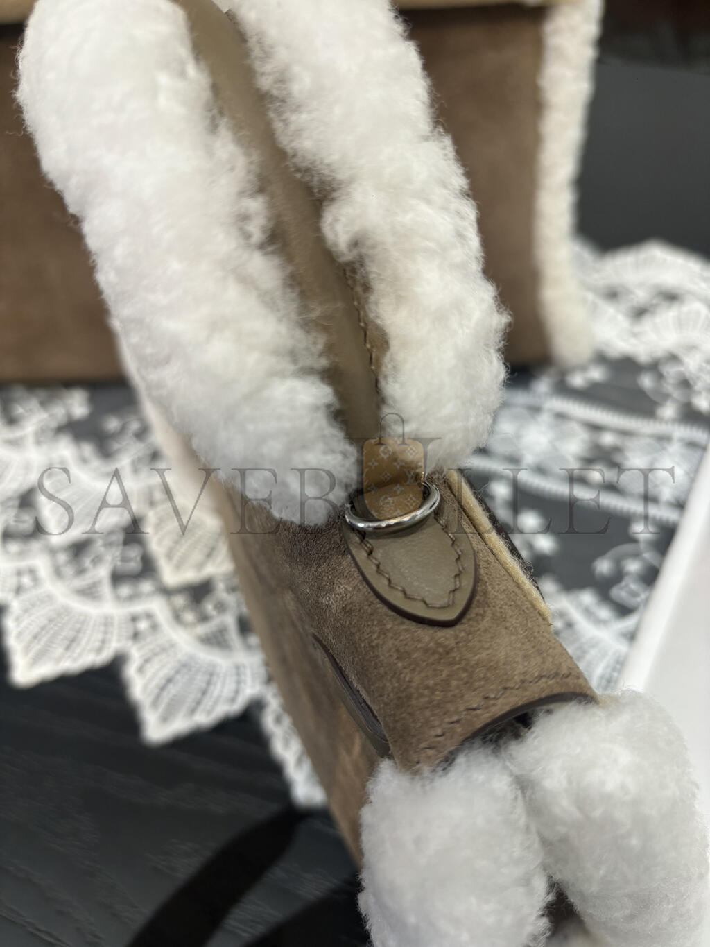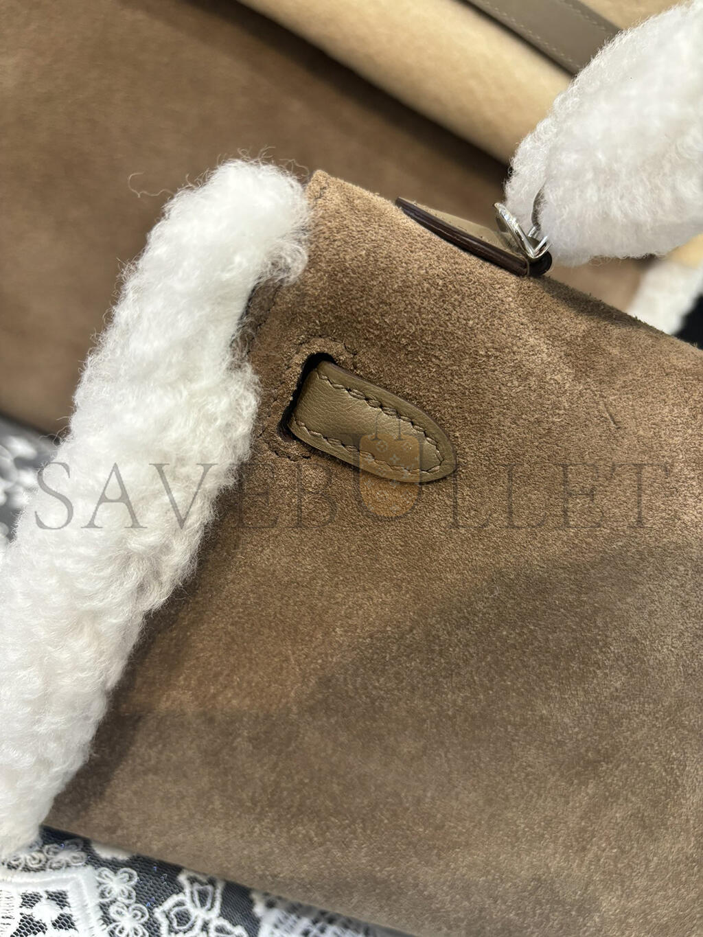 HERMES MINI KELLY TEDDY SHEARLING PALLADIUM HARDWARE (19*12*5.5cm)