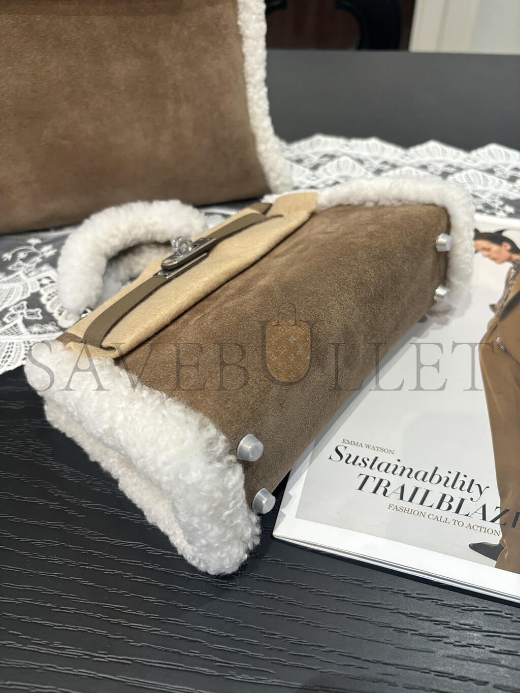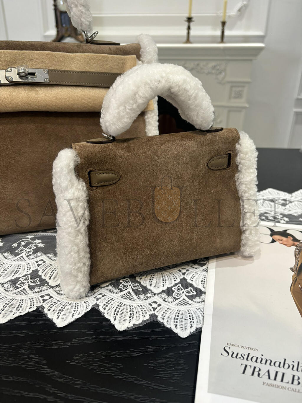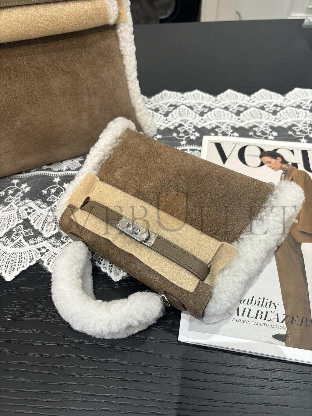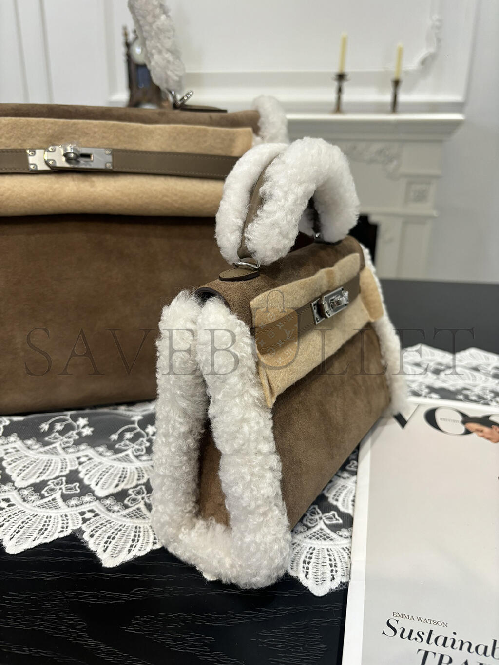 HERMES MINI KELLY TEDDY SHEARLING PALLADIUM HARDWARE (19*12*5.5cm)