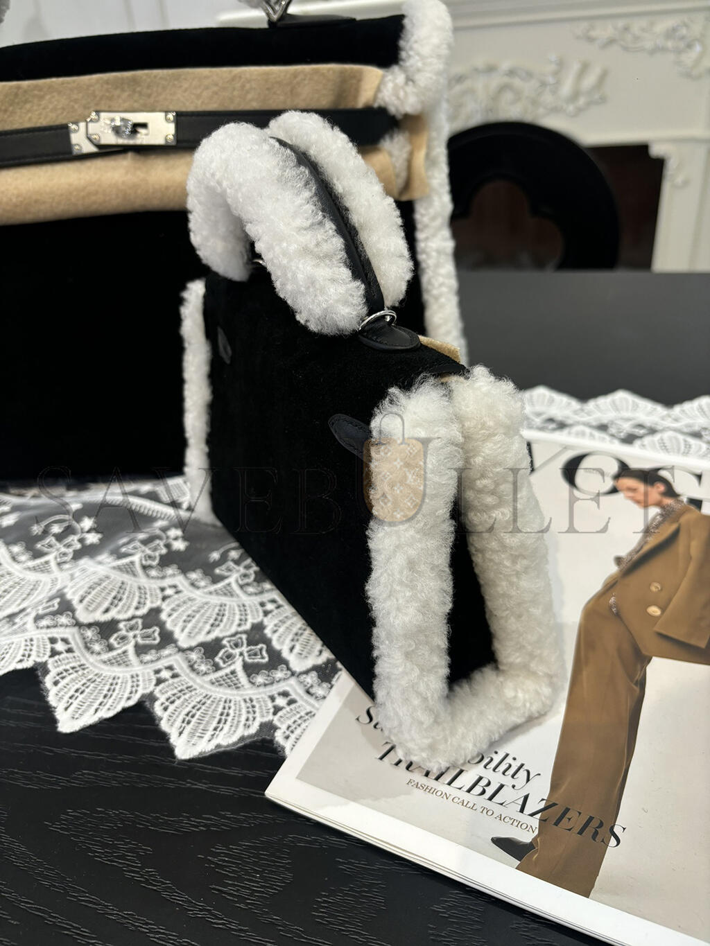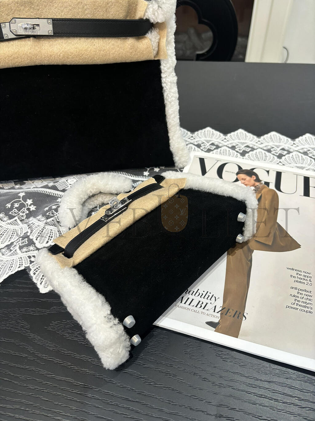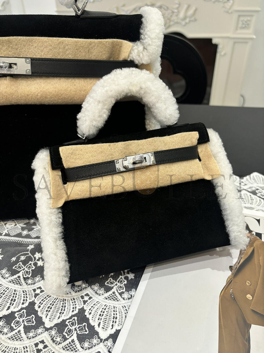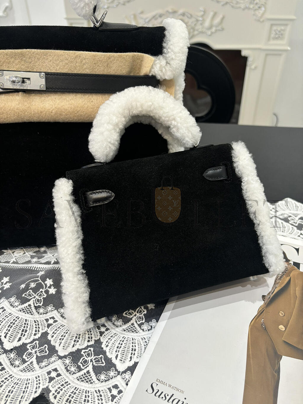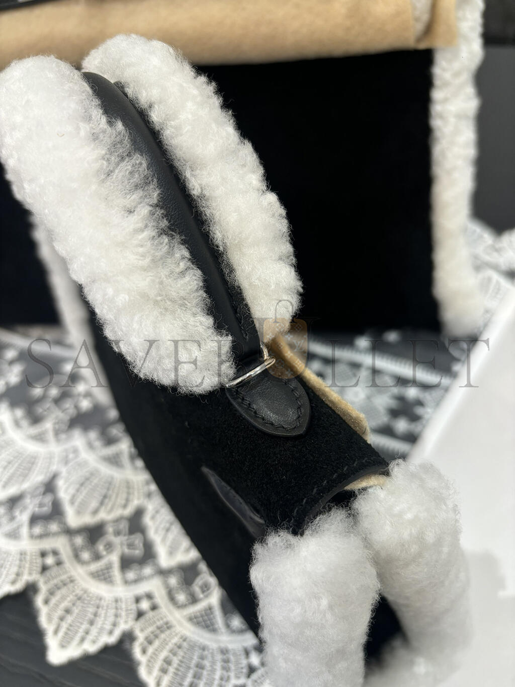 HERMES MINI KELLY TEDDY SHEARLING PALLADIUM HARDWARE  (19*12*5.5cm)