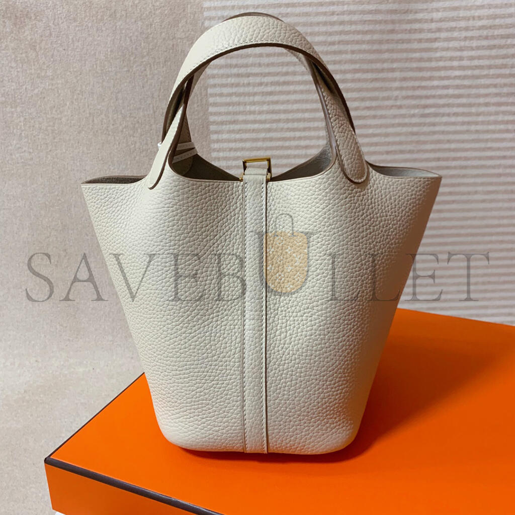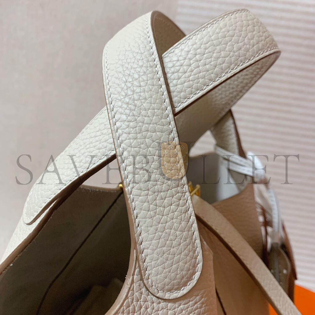 HERMES PICOTIN LOCK 22 BETON CLEMENCE GOLD HARDWARE (22*21*17cm)