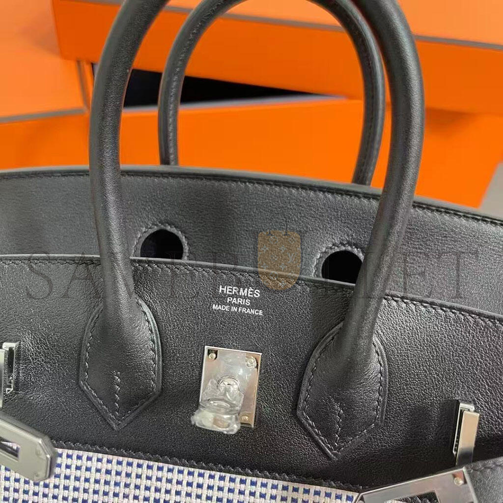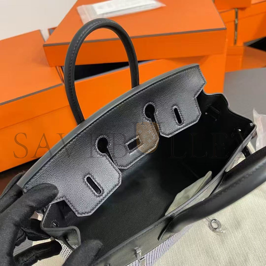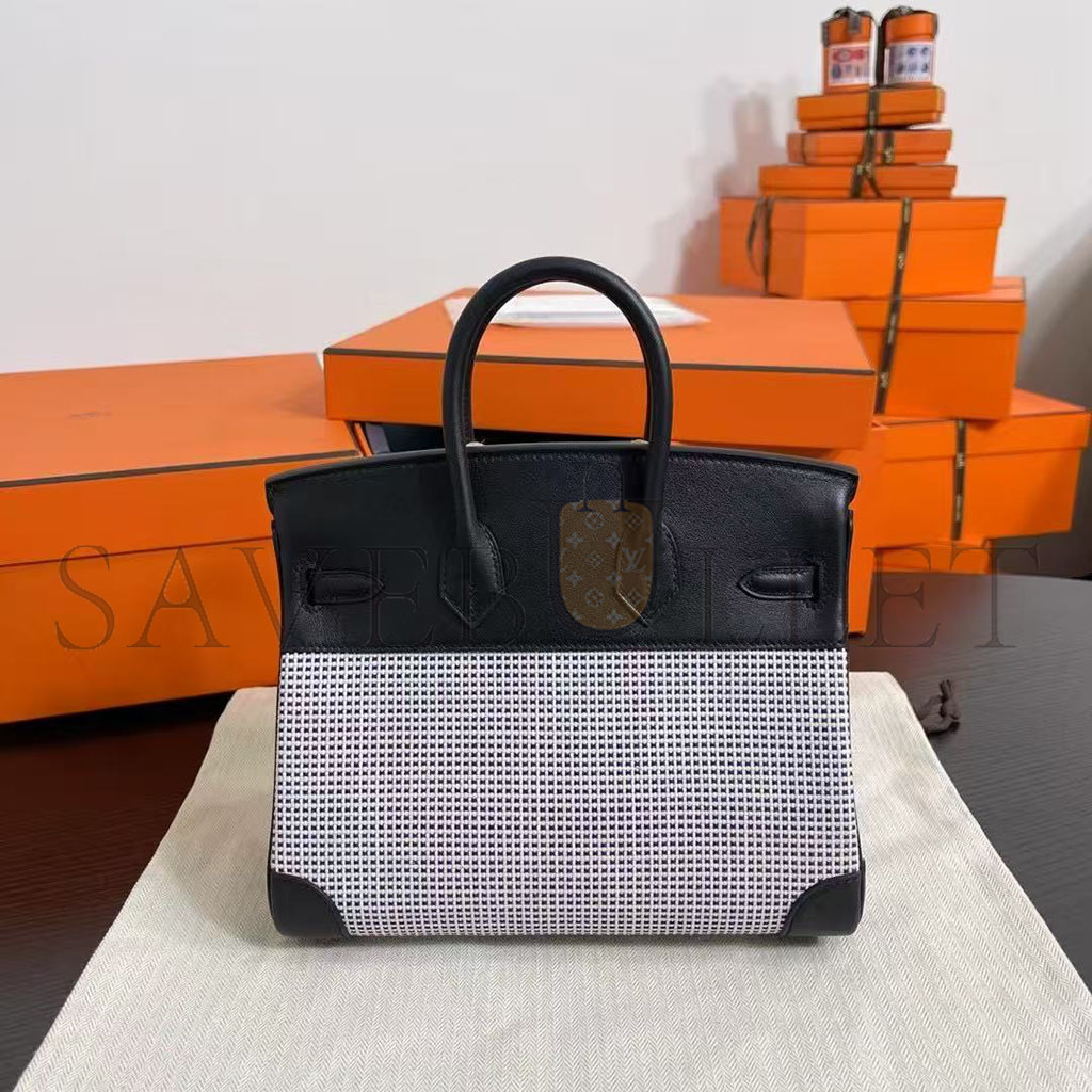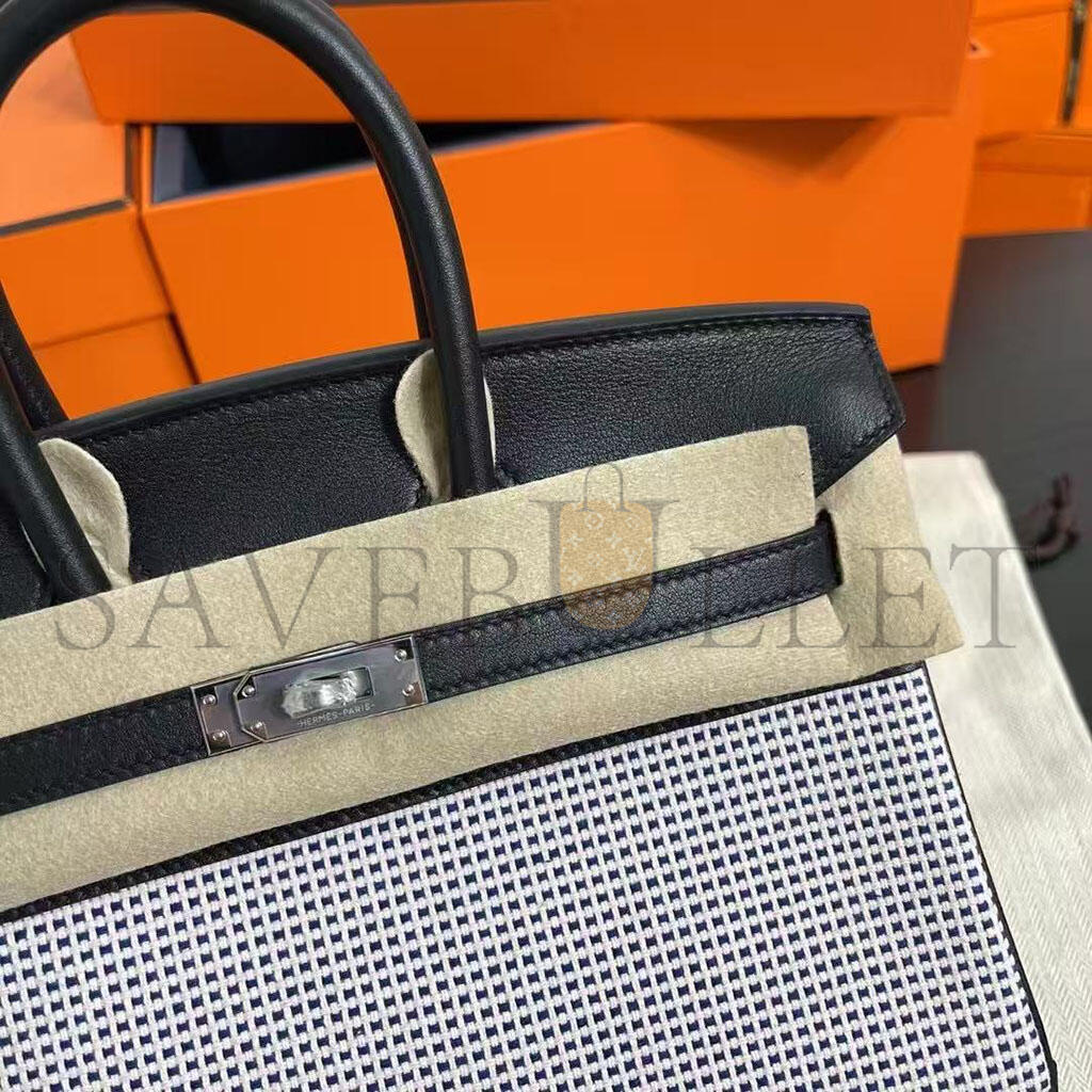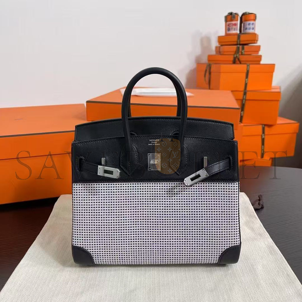 HERMÈS MASTER QUADRILLE BIRKIN 25 BLACK SWIFT AND ECRU TOILE PALLADIUM HARDWARE (25*20*13cm)