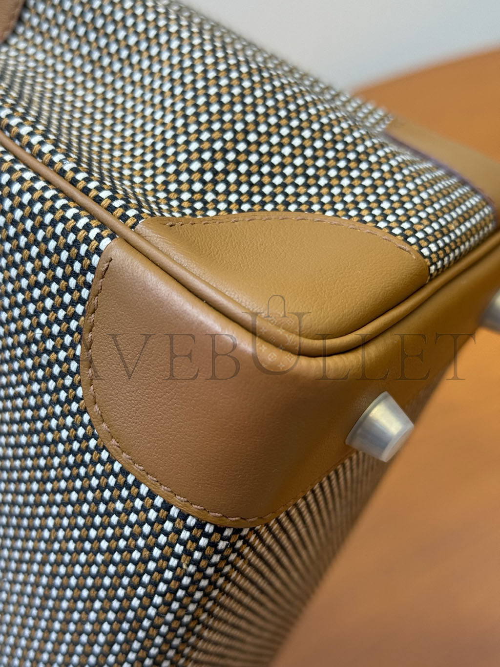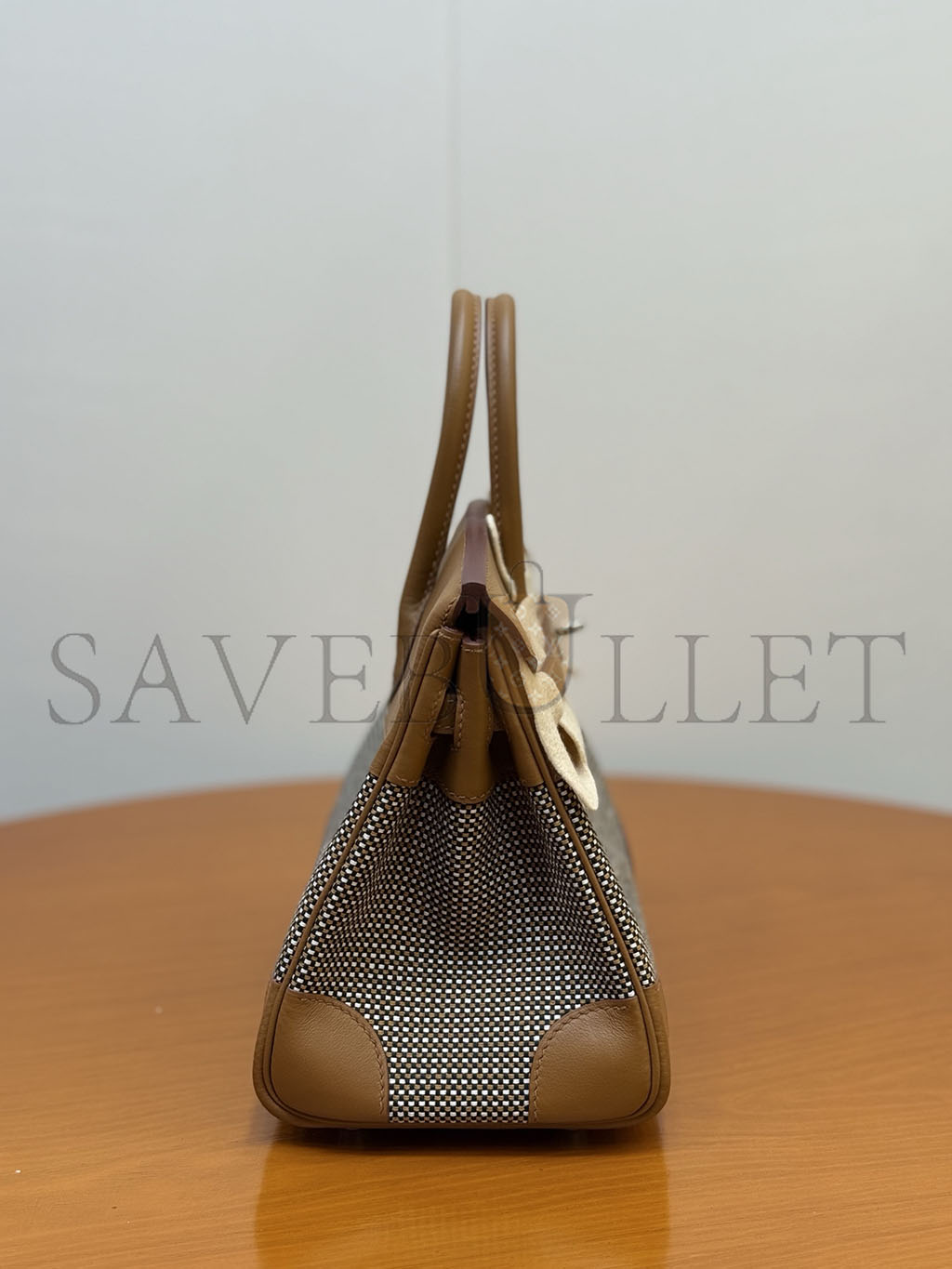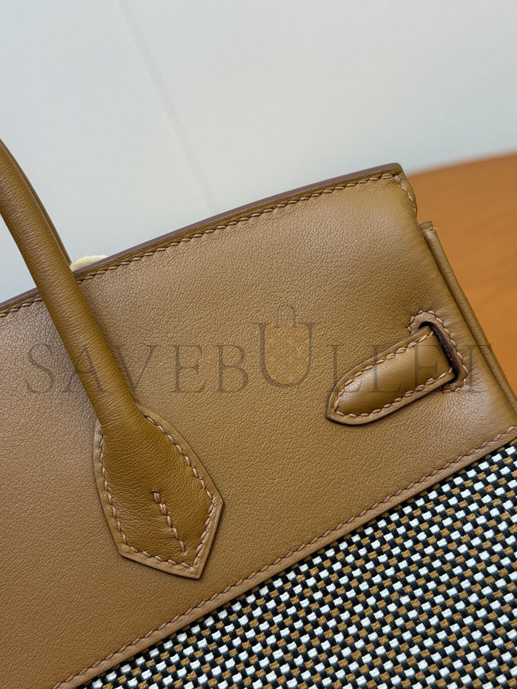 HERMÈS MASTER BIRKIN 25 BAG TOILE QUADRILLE AND SWIFT GOLD (25*20*13cm)