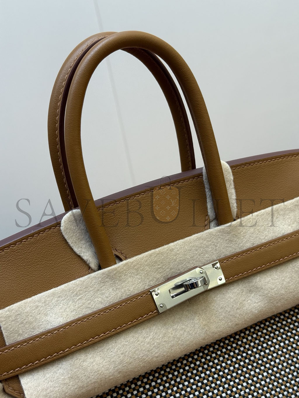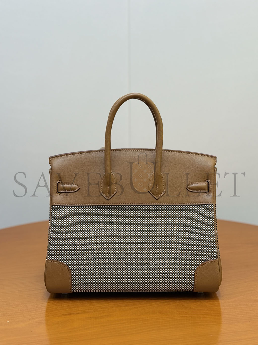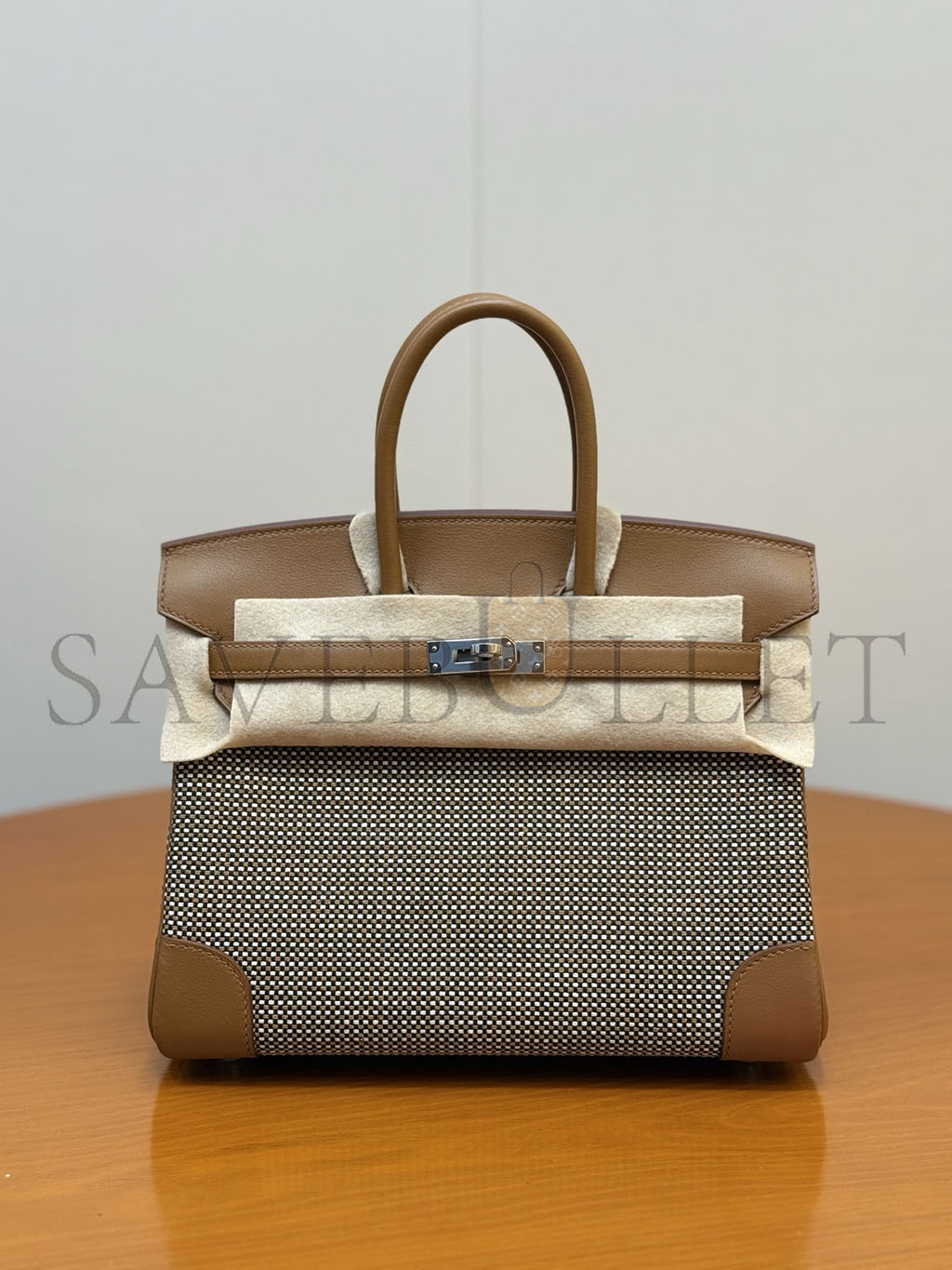 HERMÈS MASTER BIRKIN 25 BAG TOILE QUADRILLE AND SWIFT GOLD (25*20*13cm)