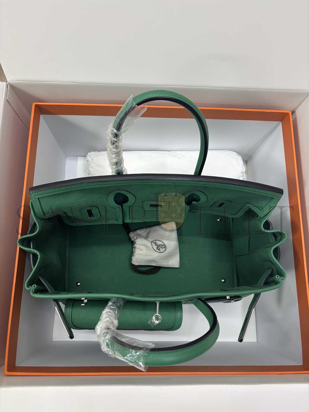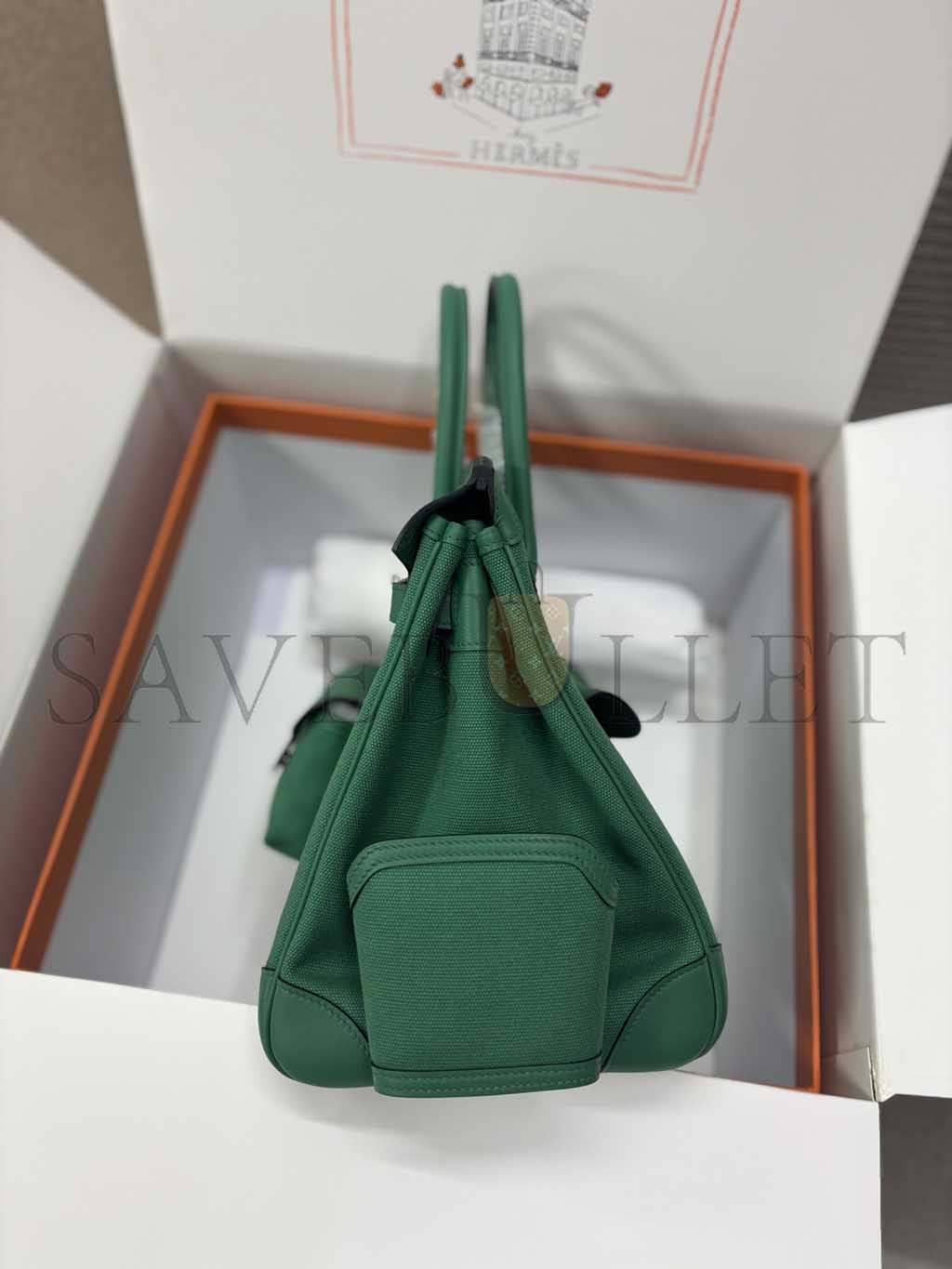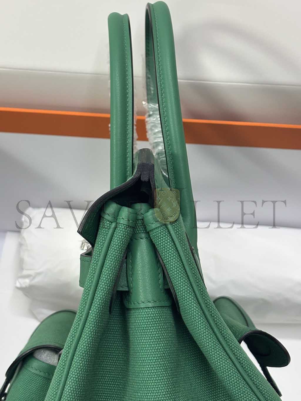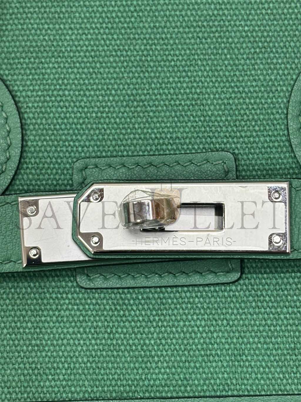 HERMÈS MASTER VERT VERTIGO SWIFT LEATHER AND CANVAS CARGO BIRKIN 25 (25*20*13cm)
