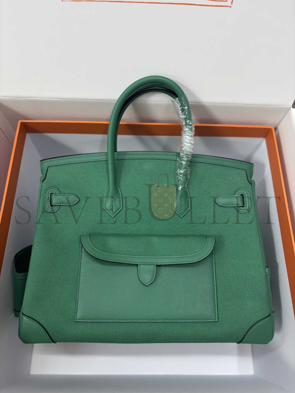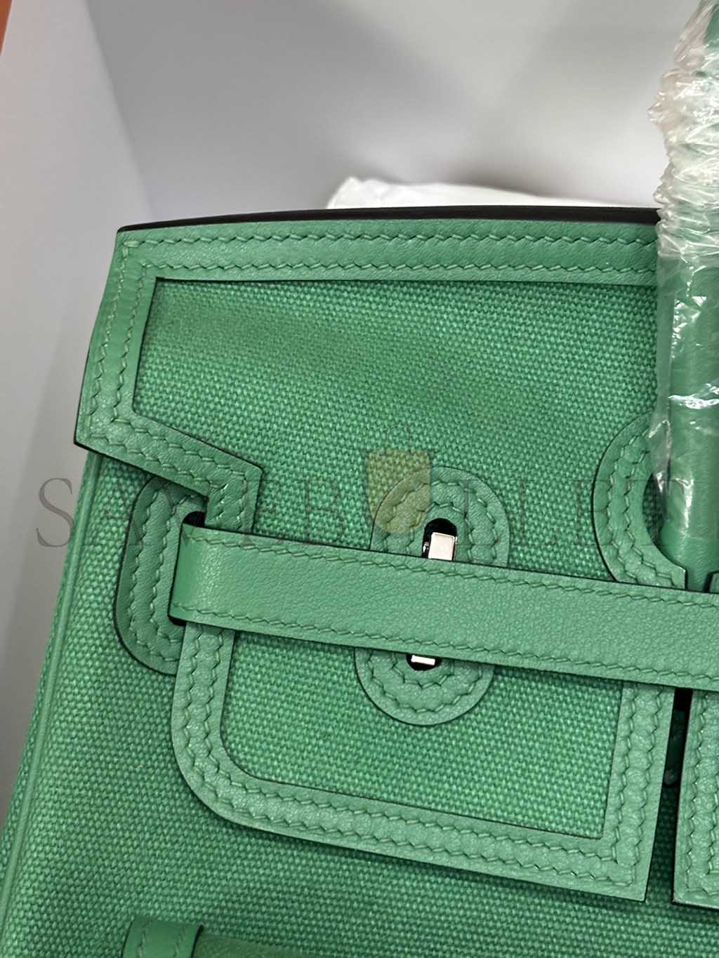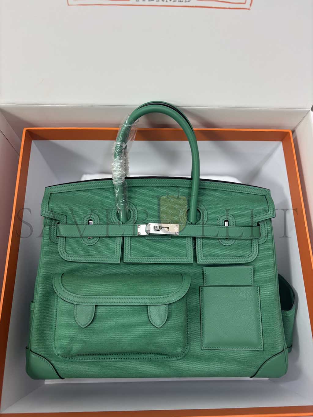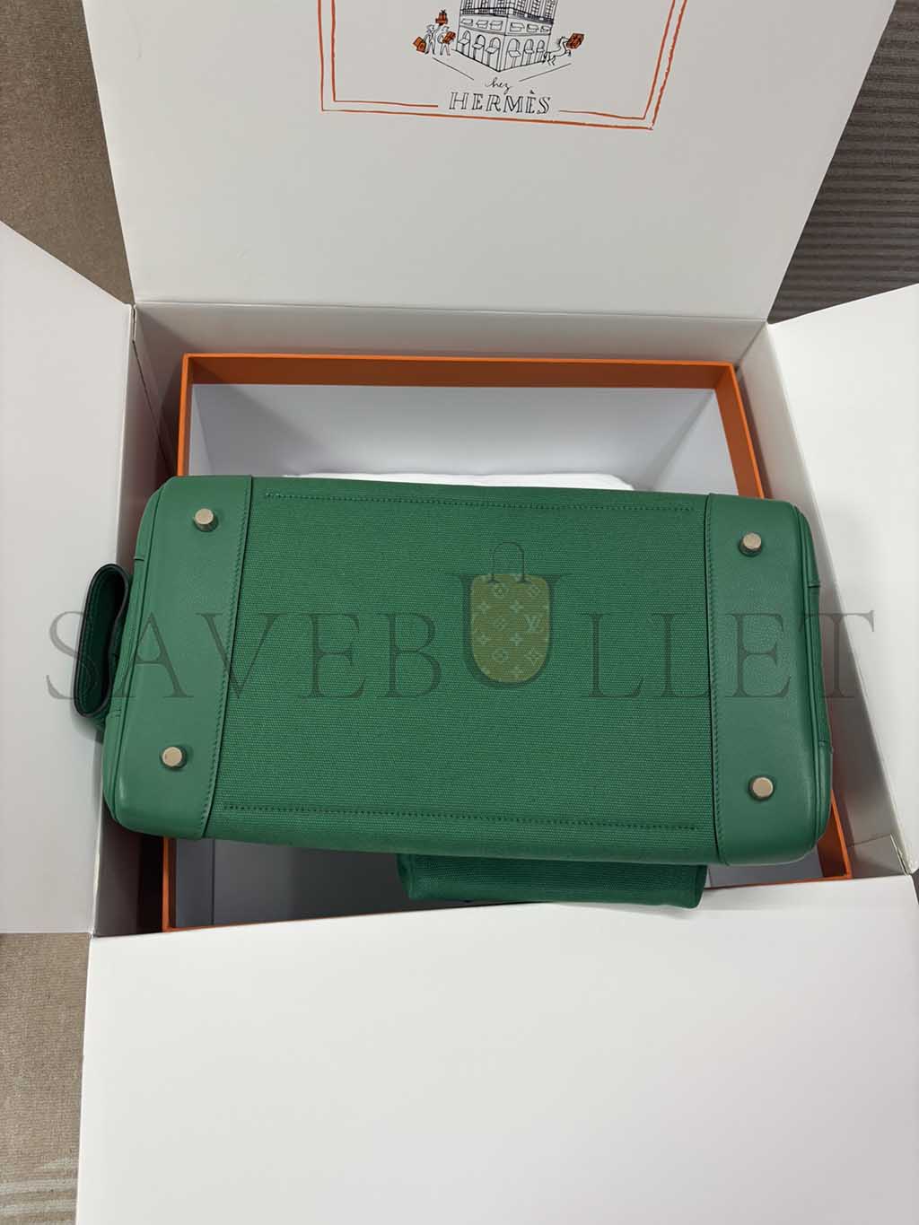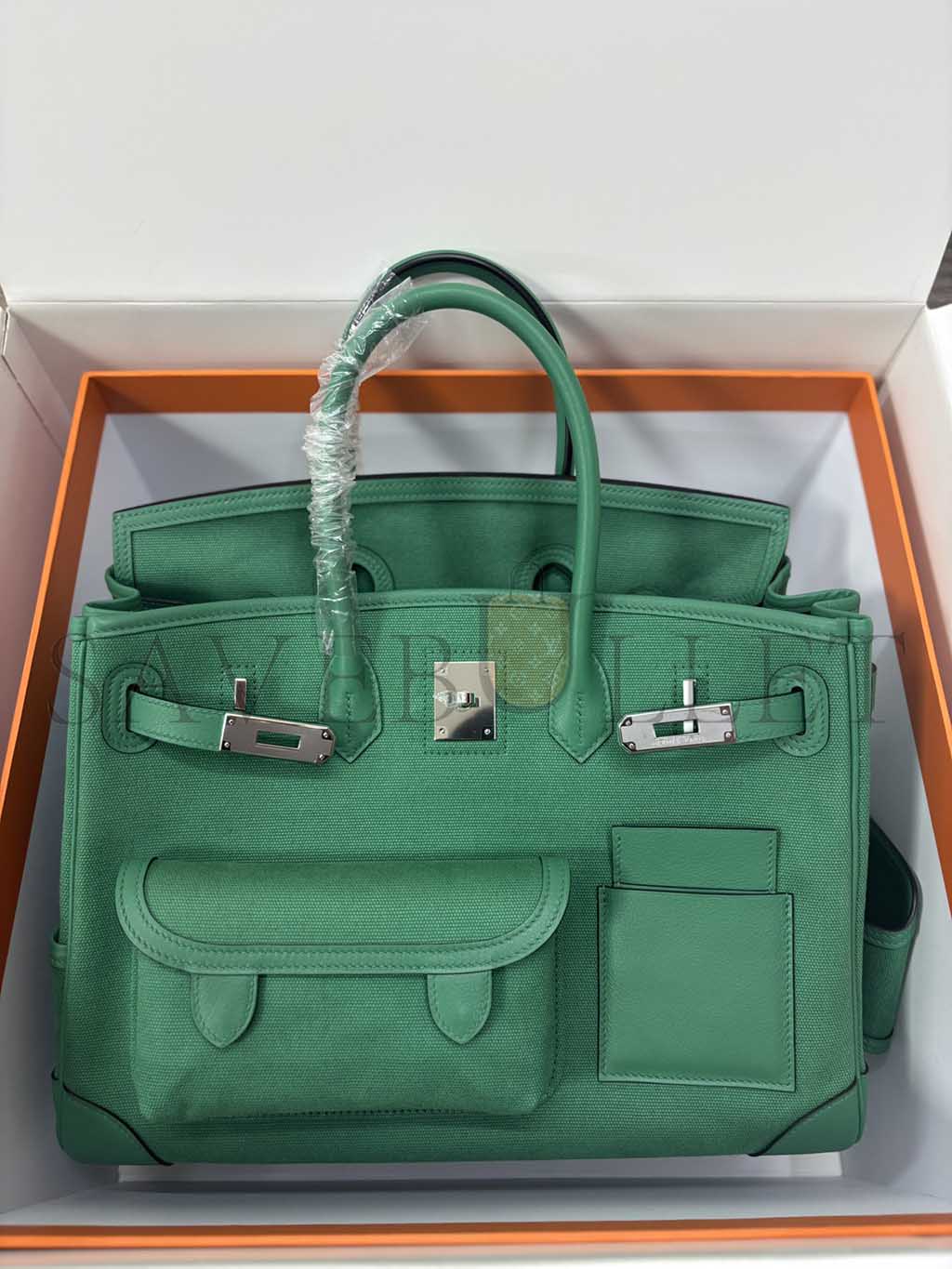 HERMÈS MASTER VERT VERTIGO SWIFT LEATHER AND CANVAS CARGO BIRKIN 25 (25*20*13cm)