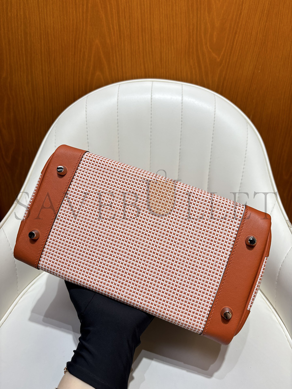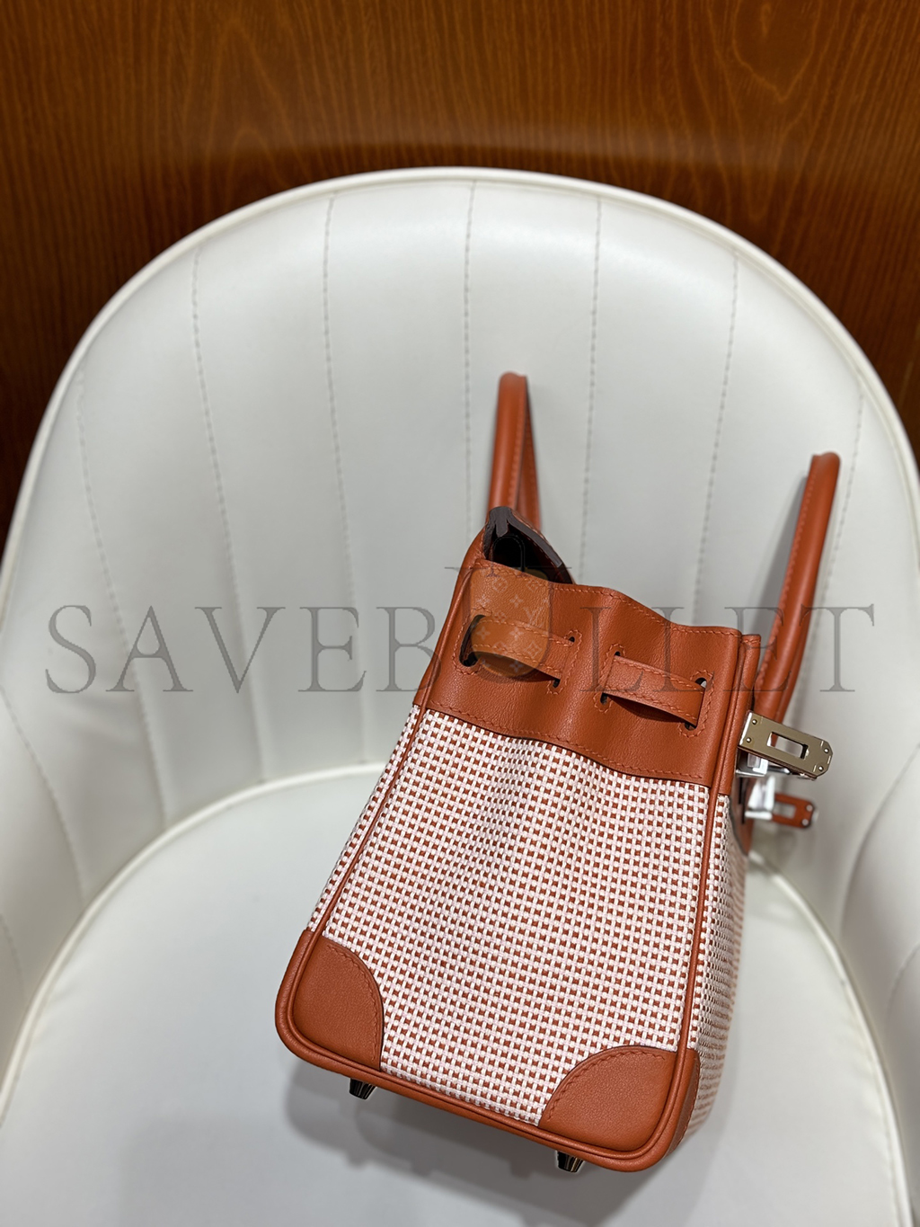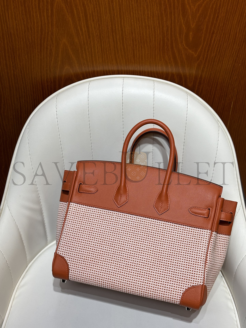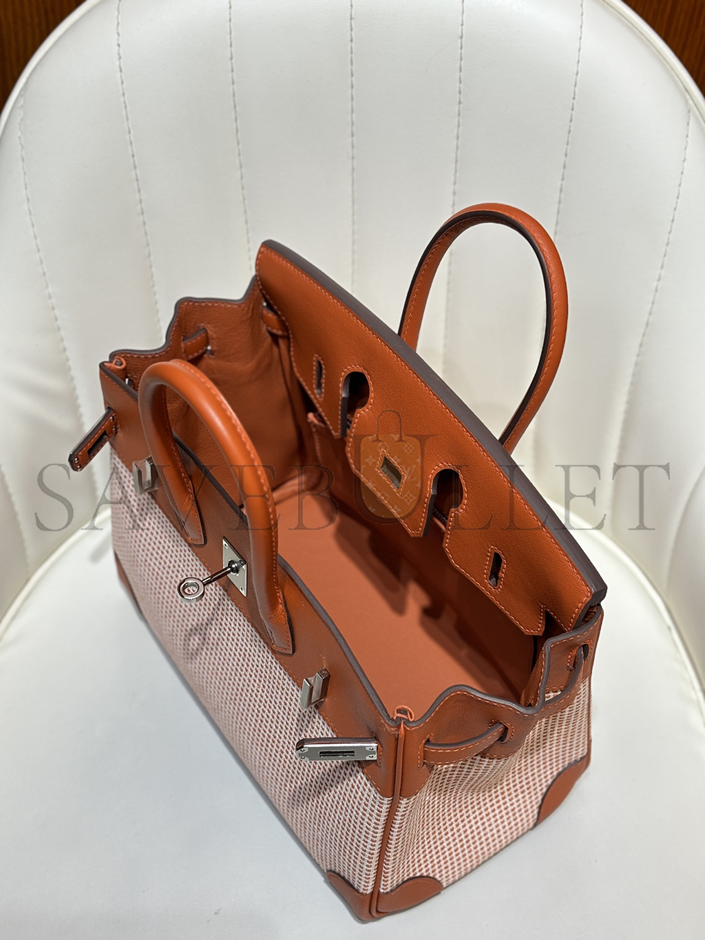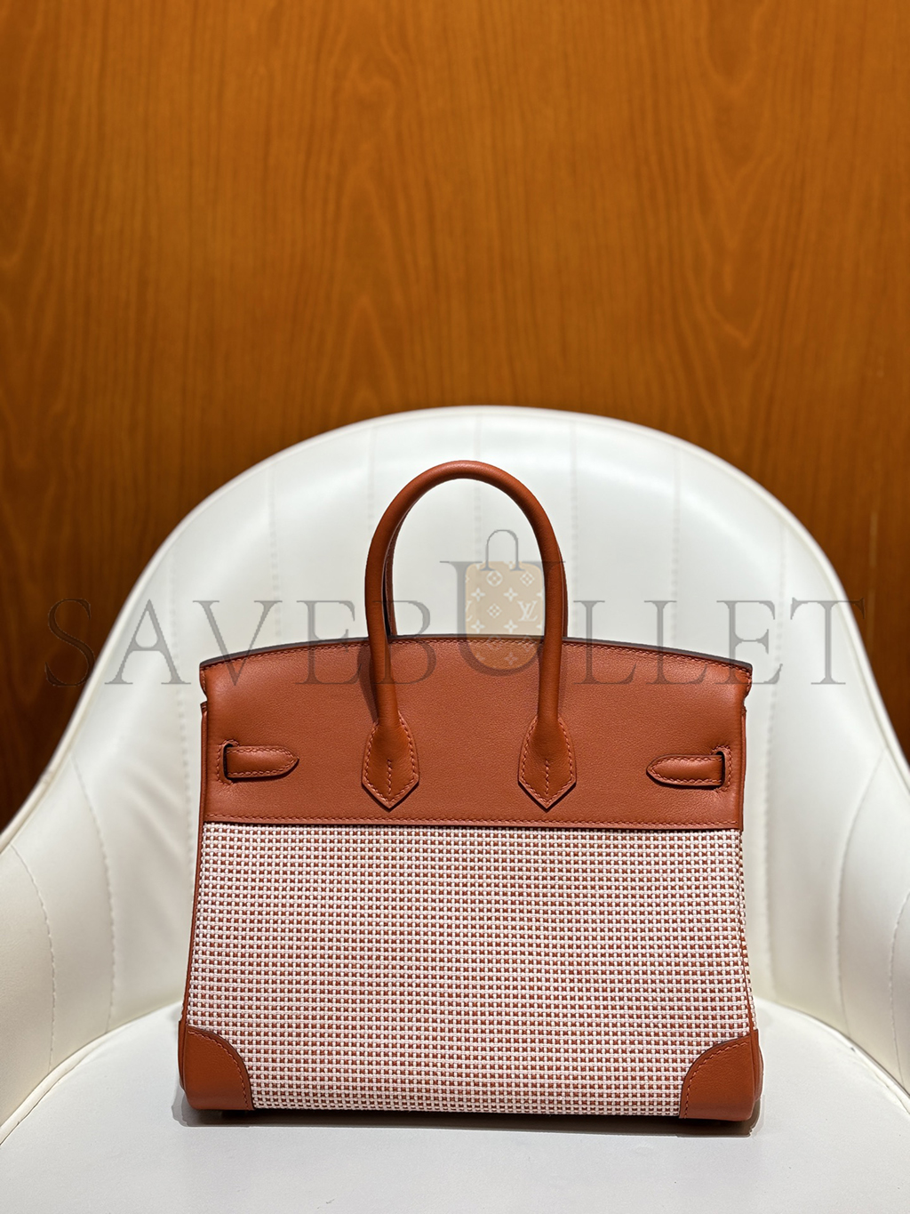 HERMES MASTER BIRKIN 25 SWIFT AND CANVAS BRIQUE PALLADIUM HARDWARE (25*18*13cm)