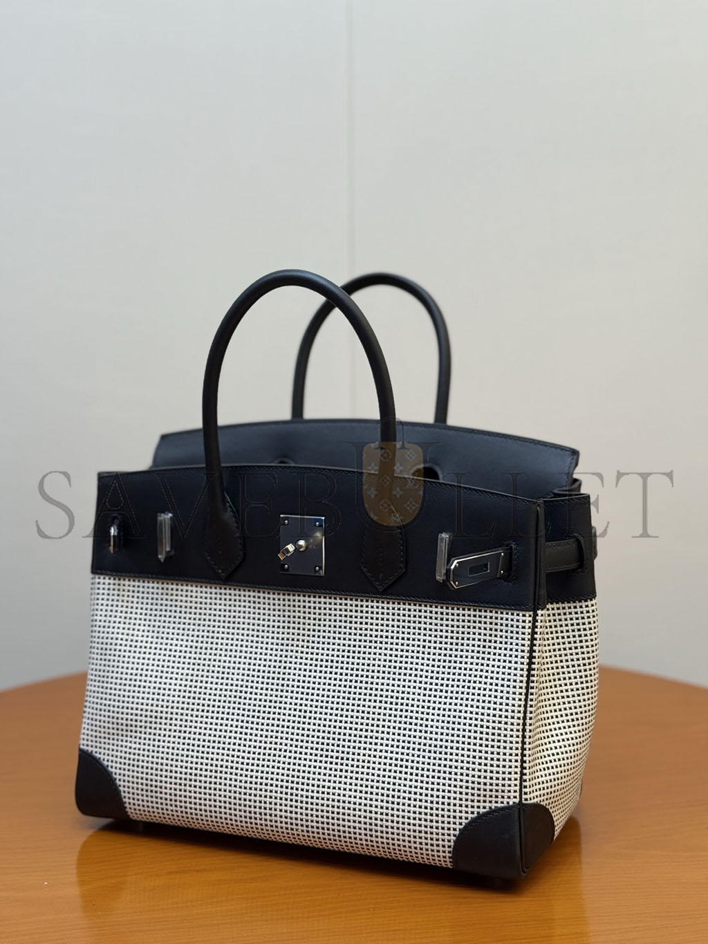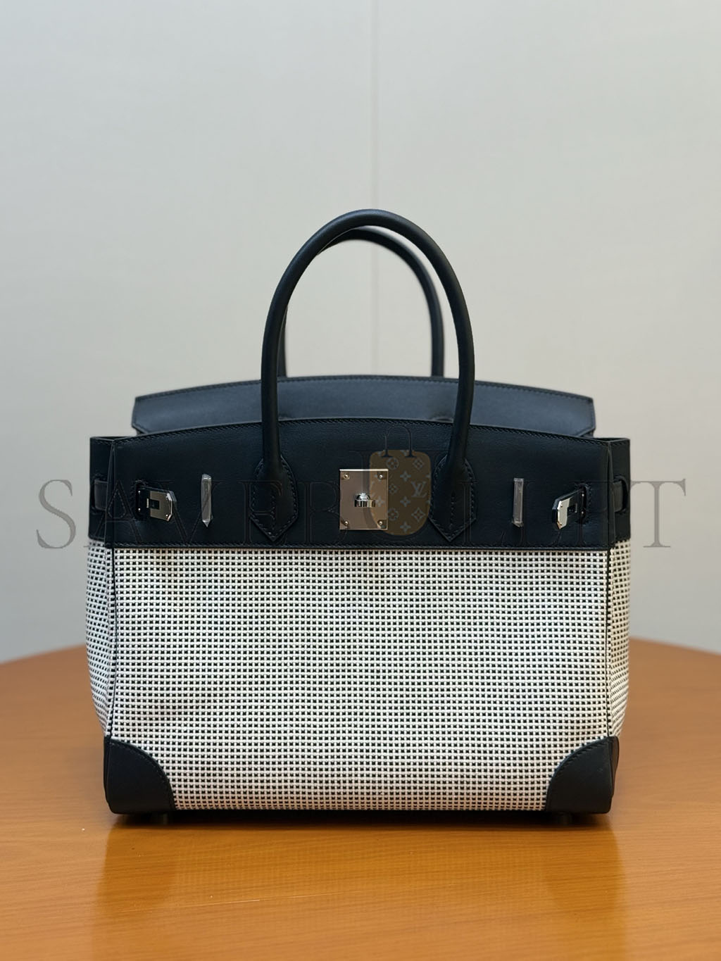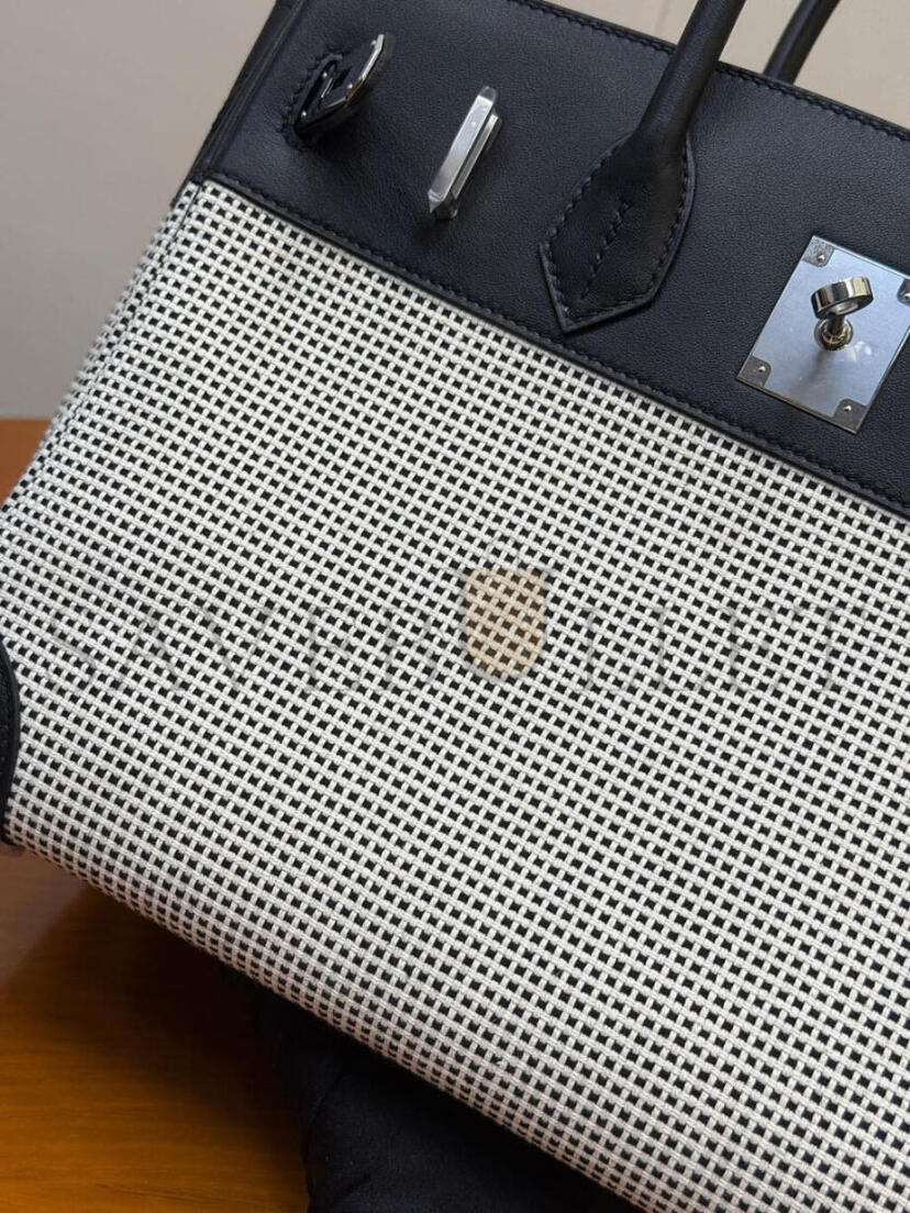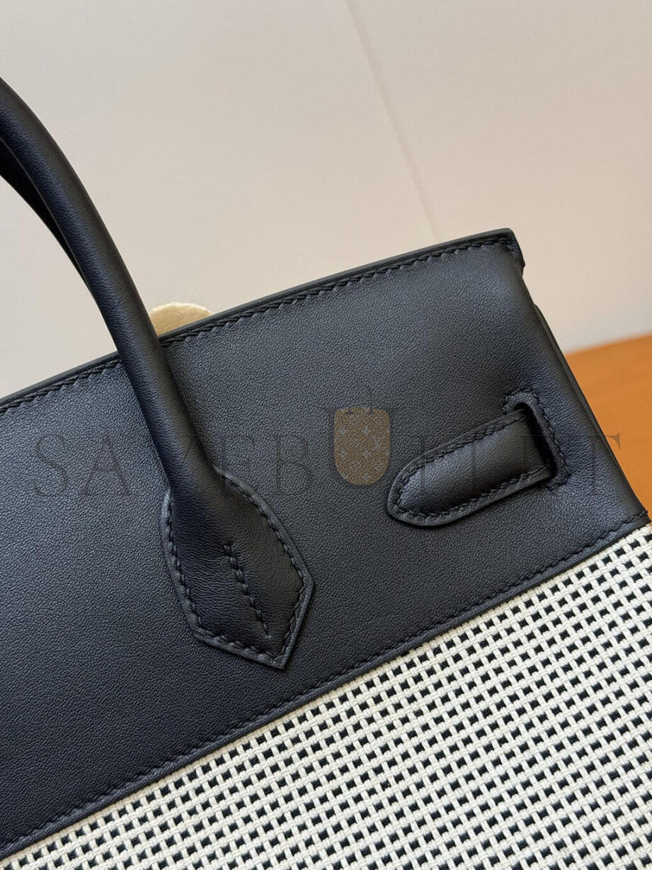 HERMÈS MASTER QUADRILLE BIRKIN 30 BLACK SWIFT AND ECRU TOILE PALLADIUM HARDWARE (30*23*15cm)