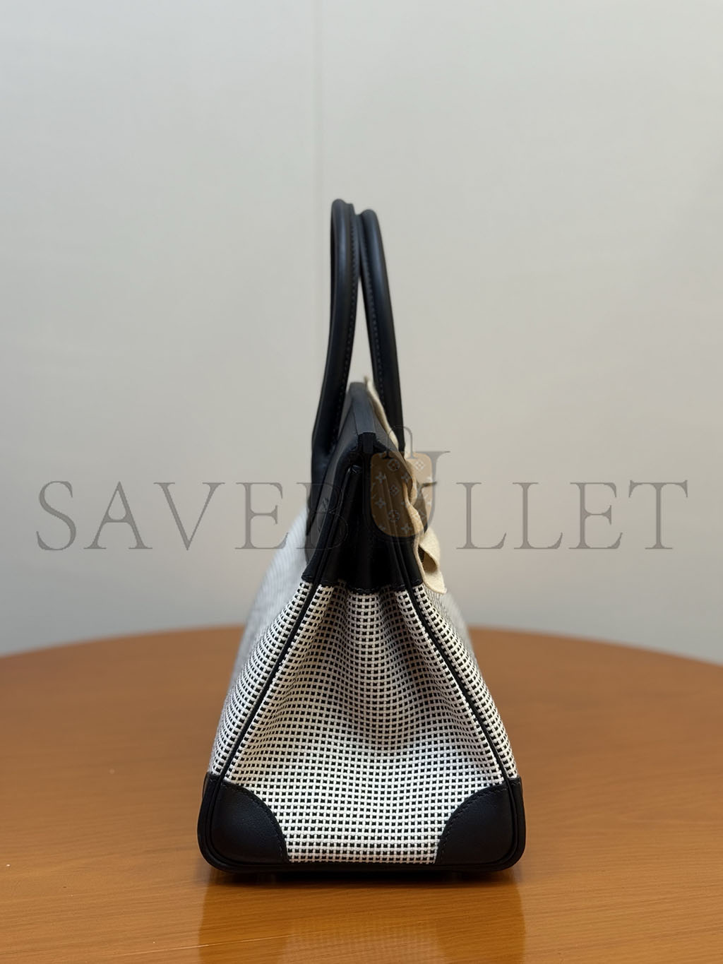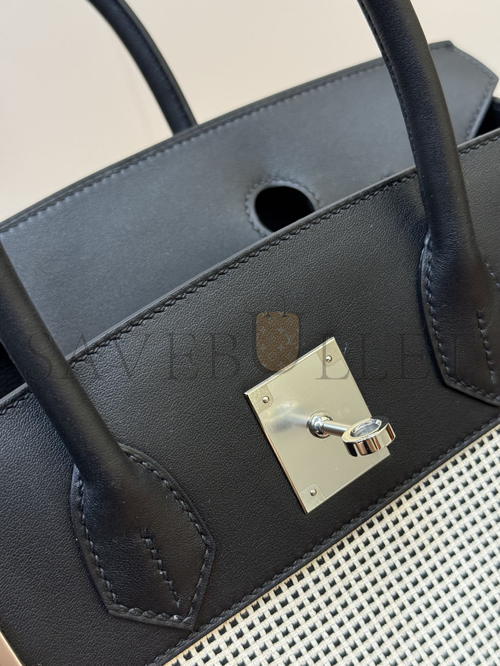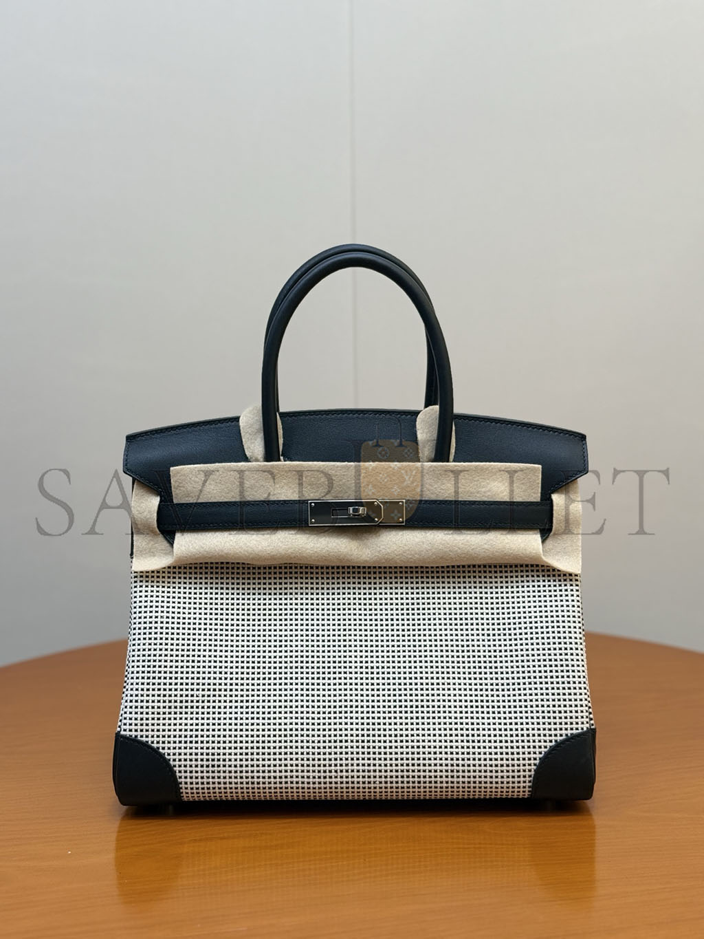 HERMÈS MASTER QUADRILLE BIRKIN 30 BLACK SWIFT AND ECRU TOILE PALLADIUM HARDWARE (30*23*15cm)