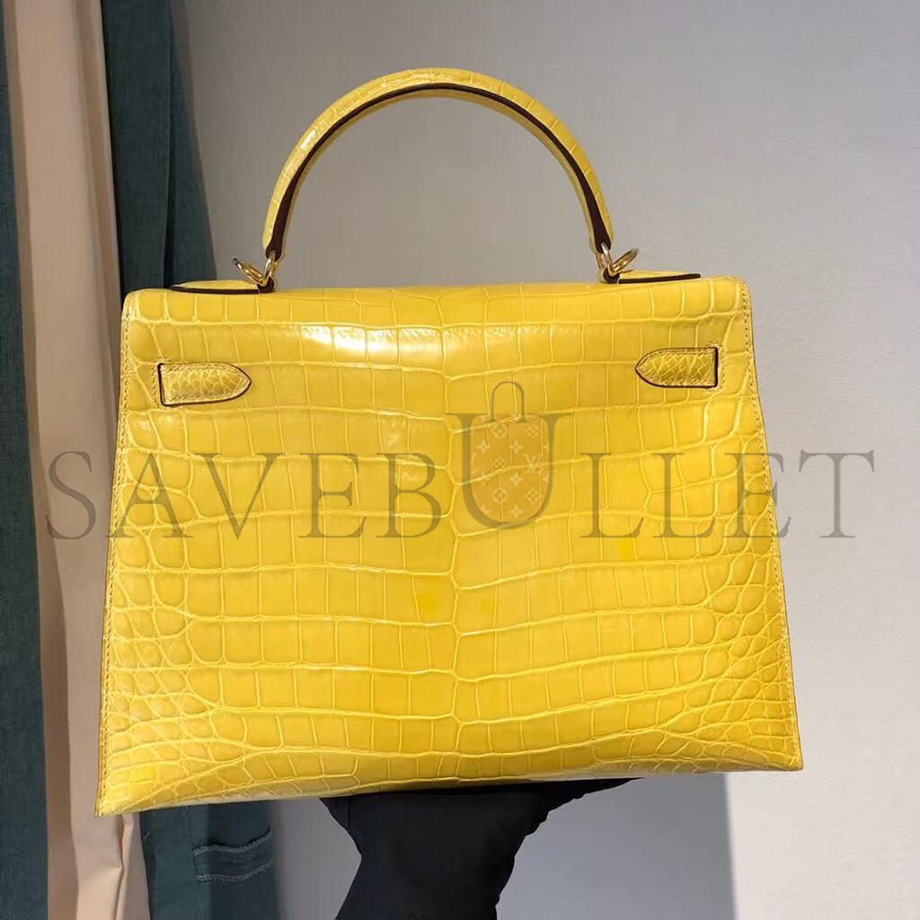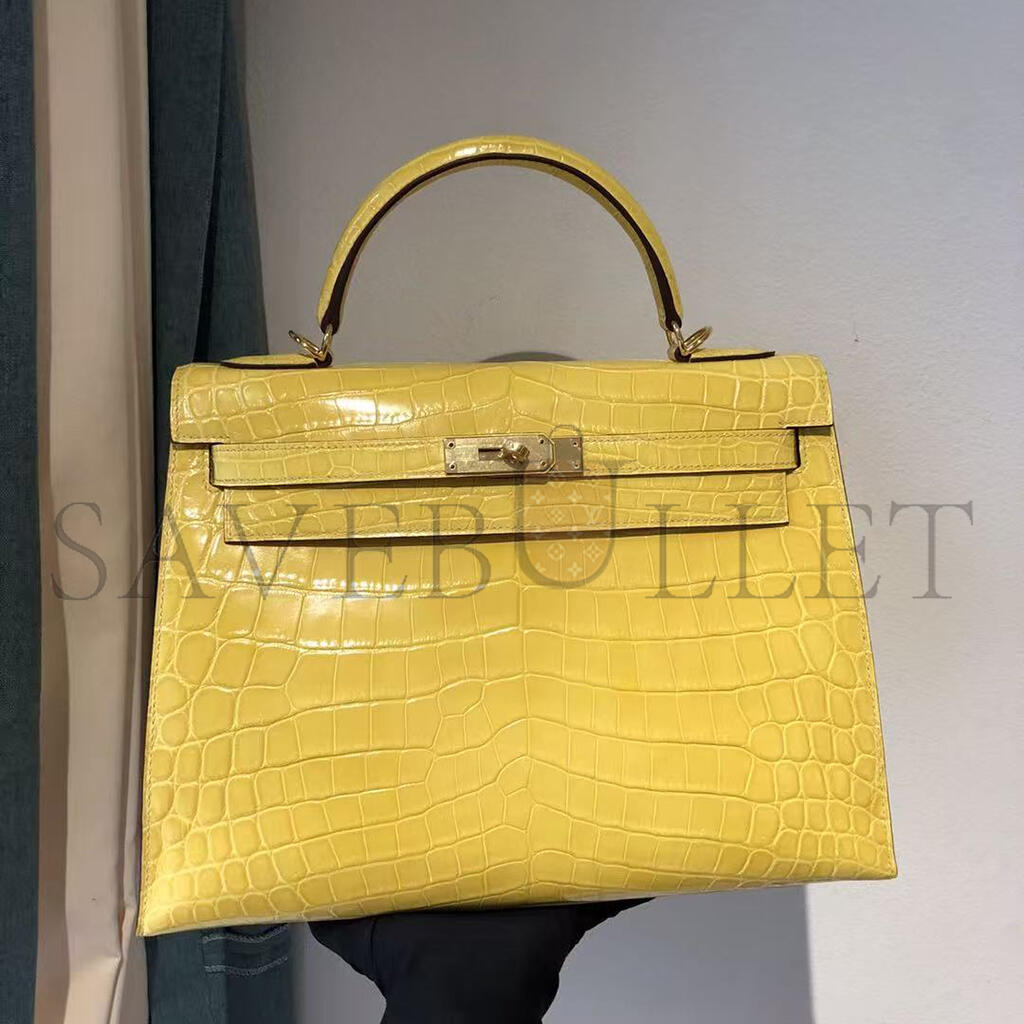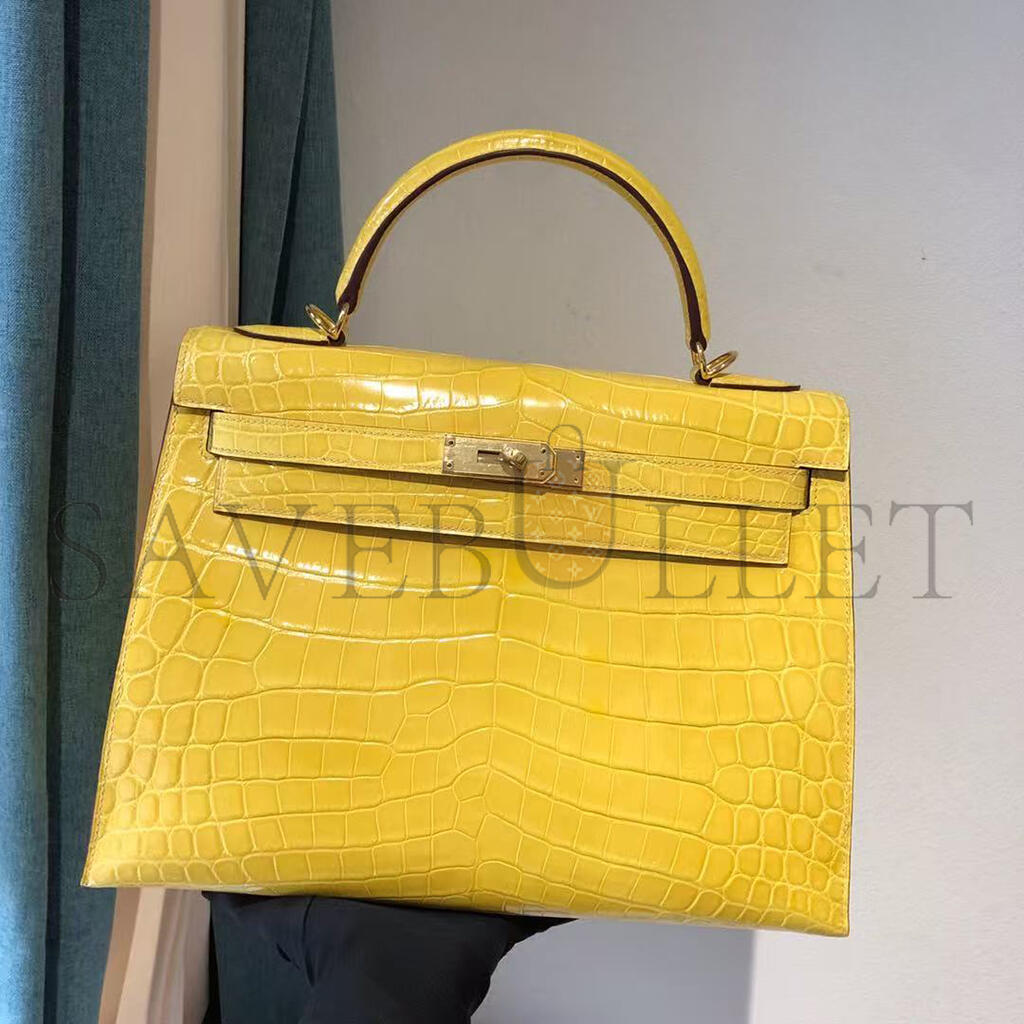 MASTER HERMES KELLY 32 MATTE ALLIGATOR GOLD HARDWARE (32*23*10.5cm)