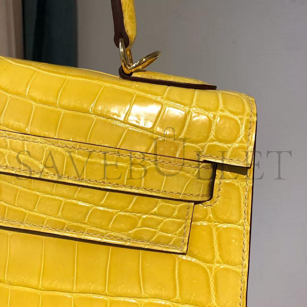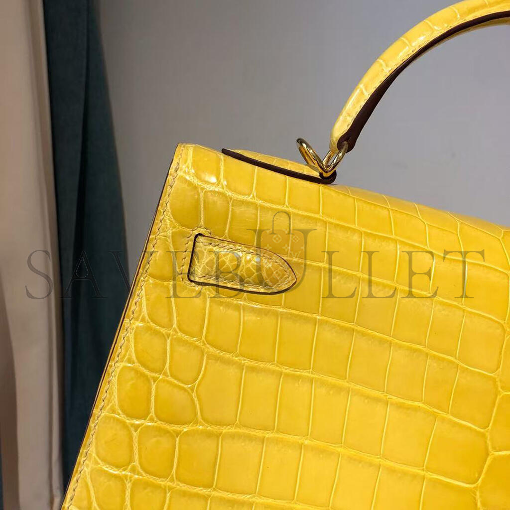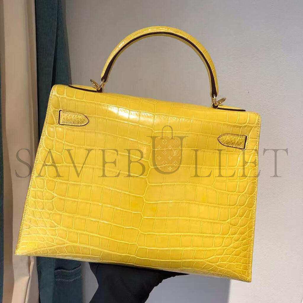 MASTER HERMES KELLY 32 MATTE ALLIGATOR GOLD HARDWARE (32*23*10.5cm)