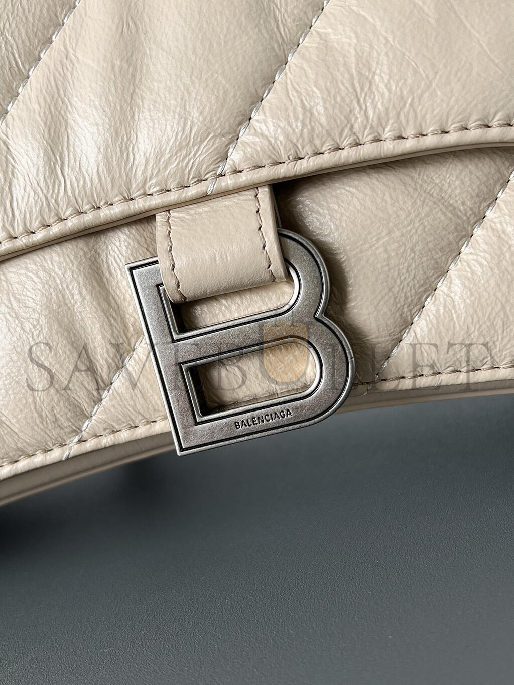 BALENCIAGA GREY HOURGLASS S CROCODILE-EFFECT LEATHER BAG MATCHESFASHION US (22.5*14*10cm)