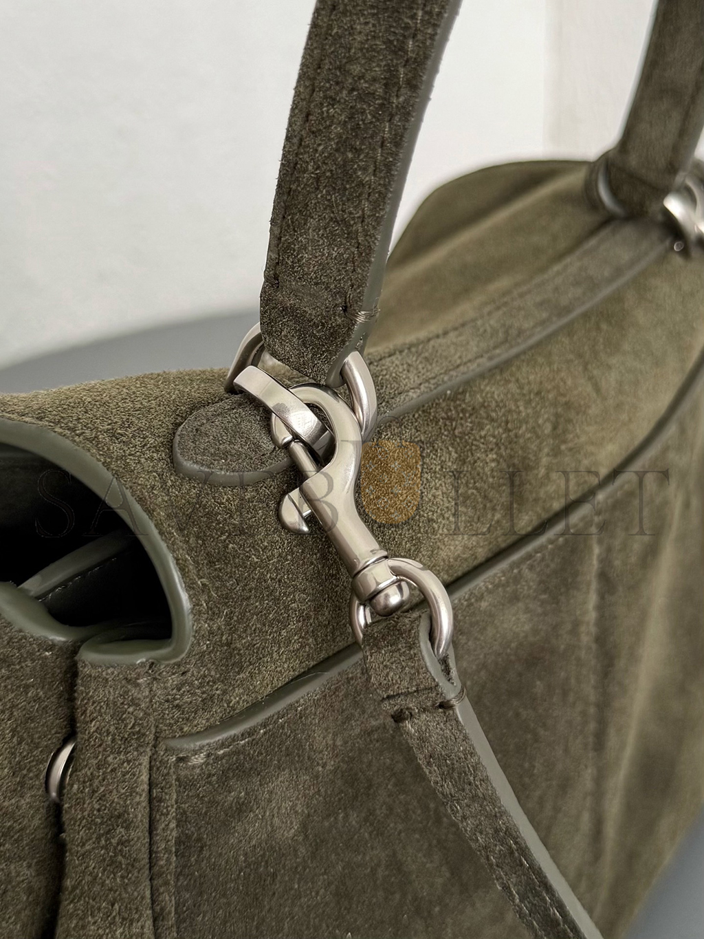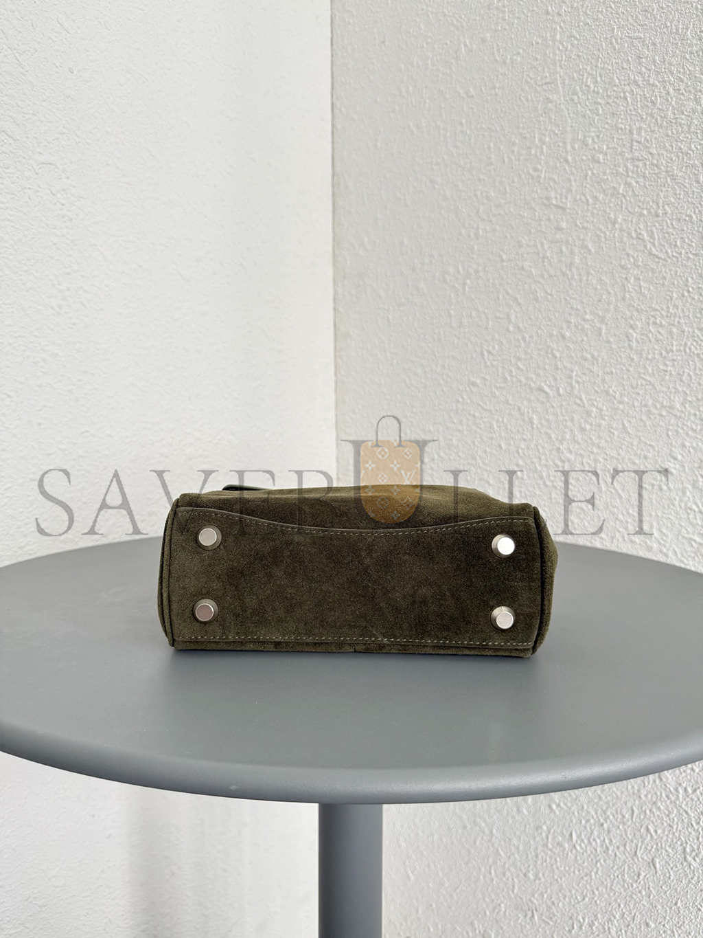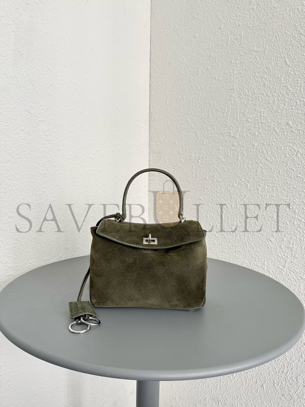 BALENCIAGA WOMEN'S RODEO HANDBAG MINI IN SUEDE KHAKI 7954562AA3V1000 (22.8*9.9*8.3cm)